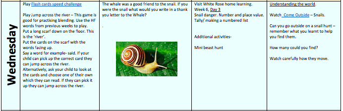The whale was a good friend to the snail so your writing task is to write a thank you letter from the snail to the whale. Your active task is using balloons to keep active.