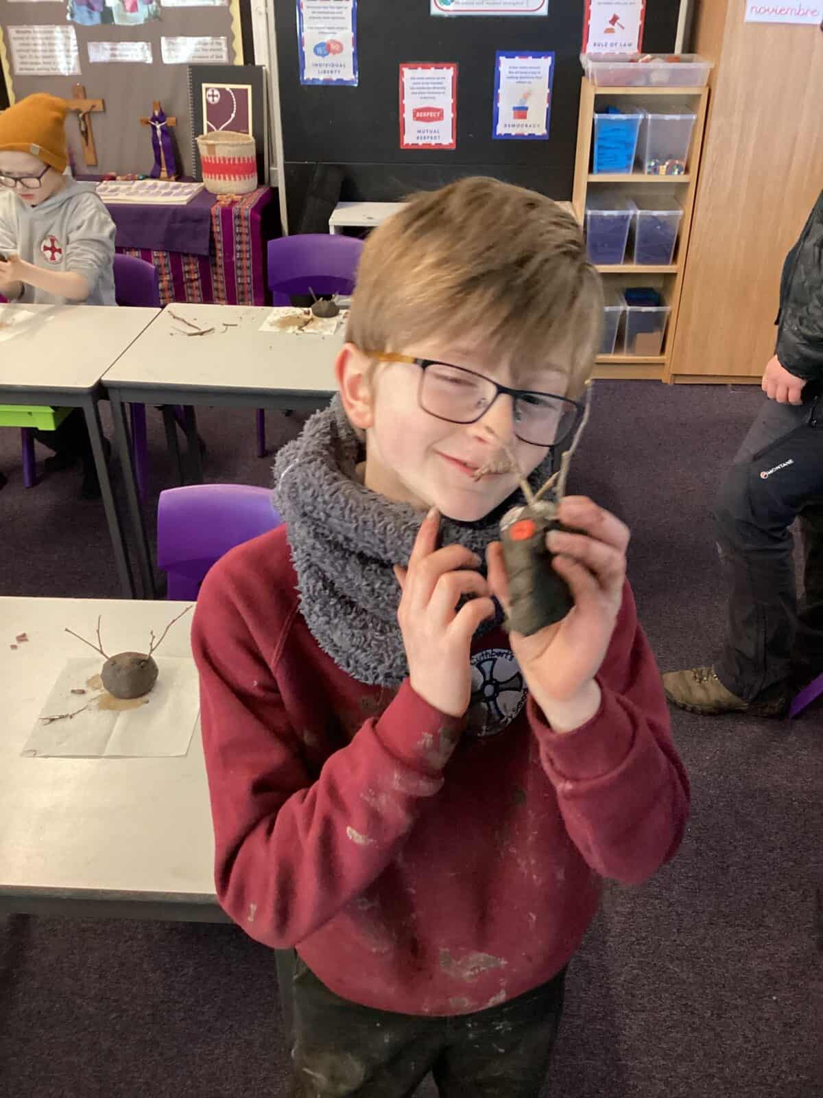 Next up were the mud reindeers, which quickly became a highlight of the day! Armed with mud, sticks, and buttons, the children worked to create their very own muddy Rudolph. It was a fun, messy, and imaginative way to celebrate the Christmas season while embracing the great outdoors.