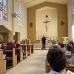 At 11am Year 3, Year 4, Year 5 and Year 6 went over to church to join families and parishioners who came to take part. The campaign was introduced by Father Marc before being led by two of our school governors. They joyful mysteries were recited and the children joined in with 5 decades on rosary beads or rosary cards which they had made.