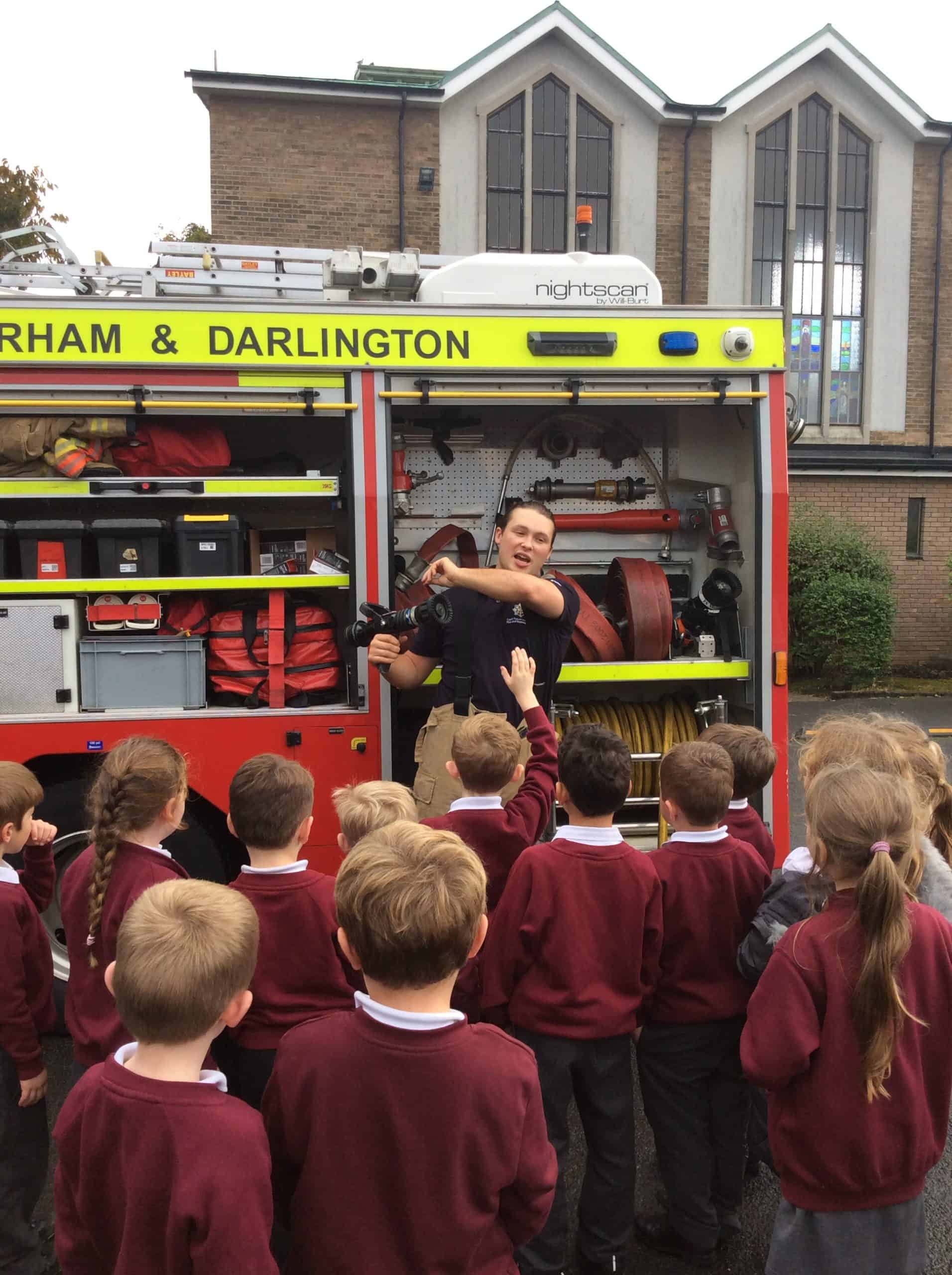 The Year 1 children had a visit from the firefighters on Tuesday to learn about fire safety. The children had a look around their fire engine and all had a turn at using their hose.