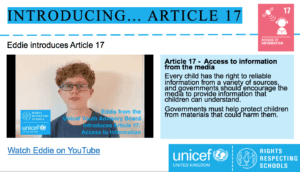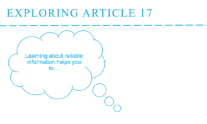 Article 17 is our right to reliable information to help keep us safe. We know from being in school we are regularly educated on the correct ways to access the internet and social media. It also refers to reliable information from the media and in our current global situation with Covid-19, reliable information is extremely important for our safety.