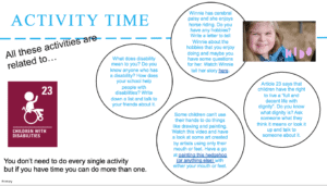 At St.Cuthbert’s we pride ourselves on being an inclusive school. This week’s article – article 23 – ensures children with disabilities or special educational needs has the right to live a full and decent life with dignity, and as far as possible, independence, and to play an active part in their home, school and community.