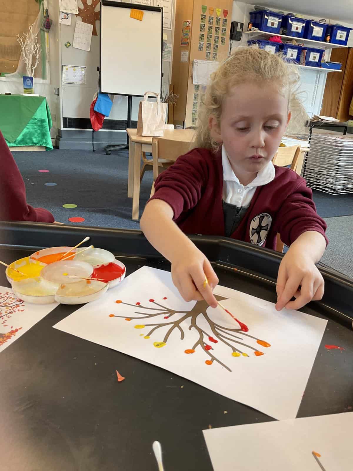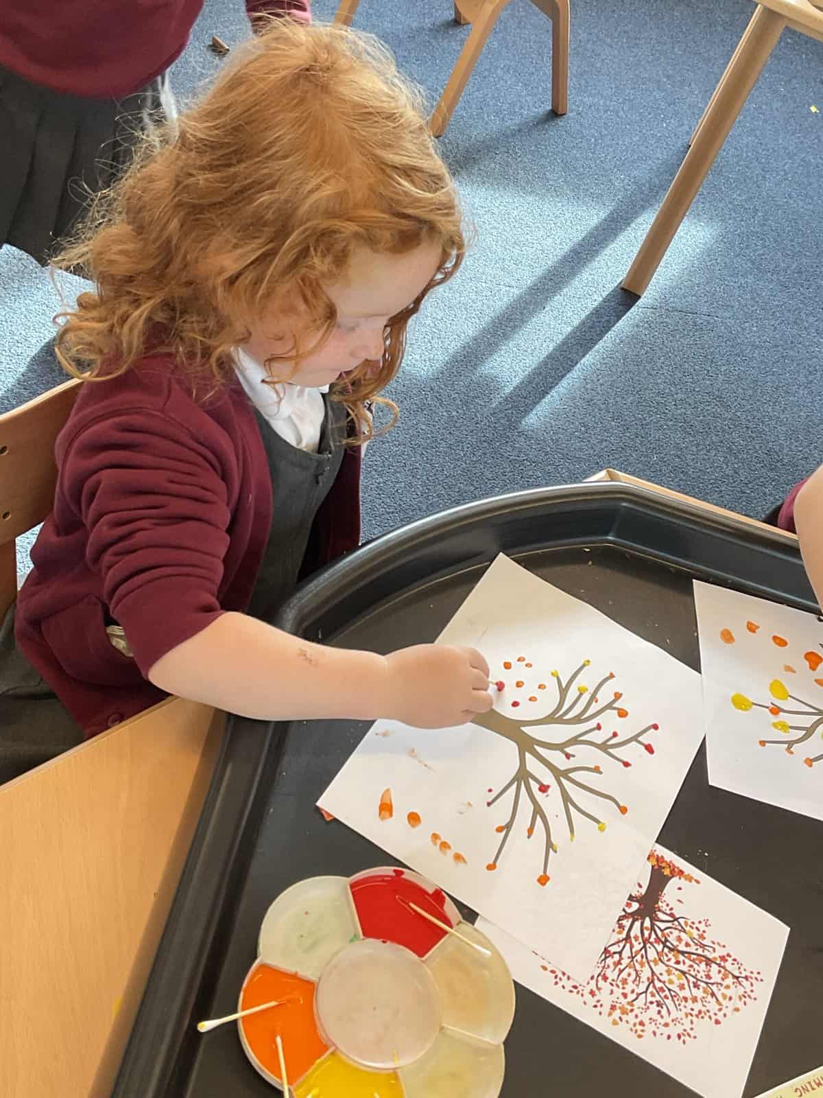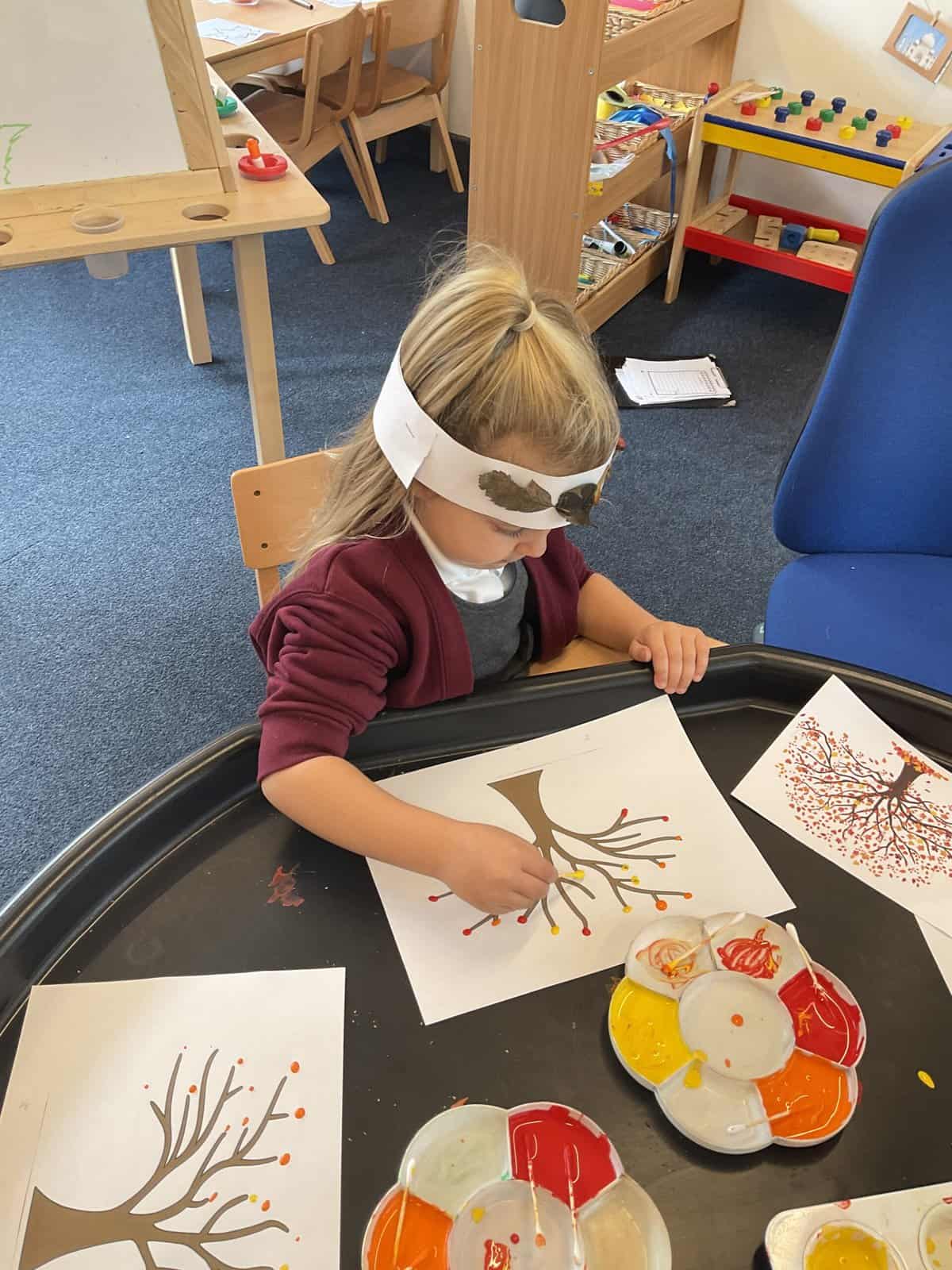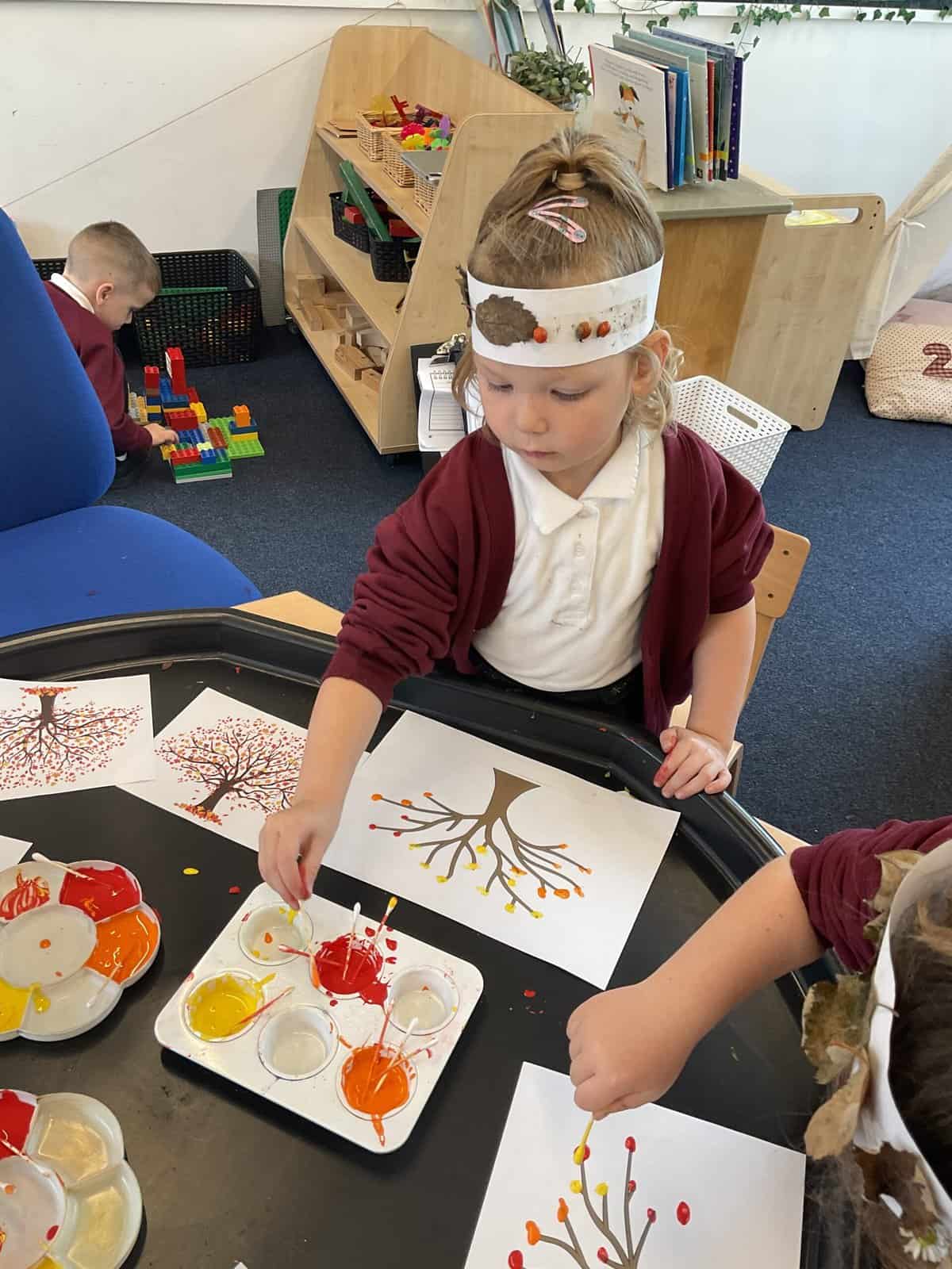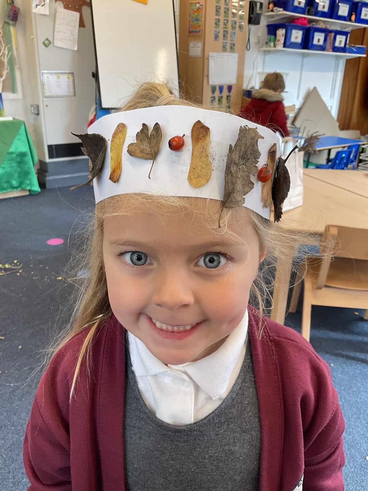 This week, we have explored the autumn treasures we brought from home, we have been on an autumn walk in our school environment and made autumn crowns and we have painted autumn trees. The children have used lots of vocabulary relating to autumn.