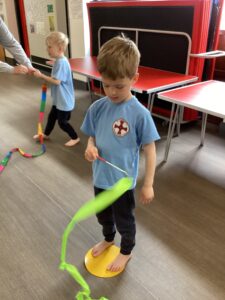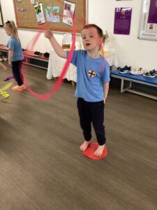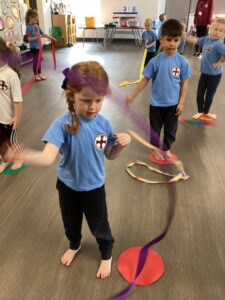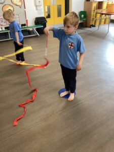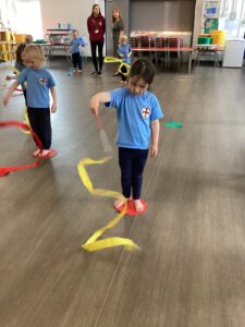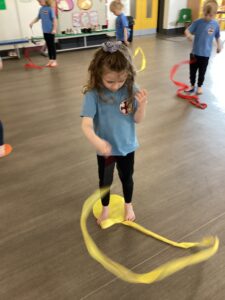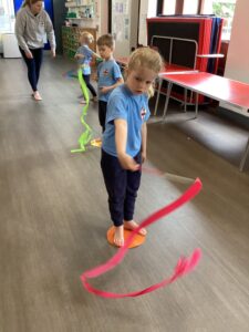 In our last dance session with Sophie we looked at a different style of dancing - ballet. We practised stretching and moving with ribbons. Thank you Sophie for teaching us lots of different ways of dancing we have had lots of fun.