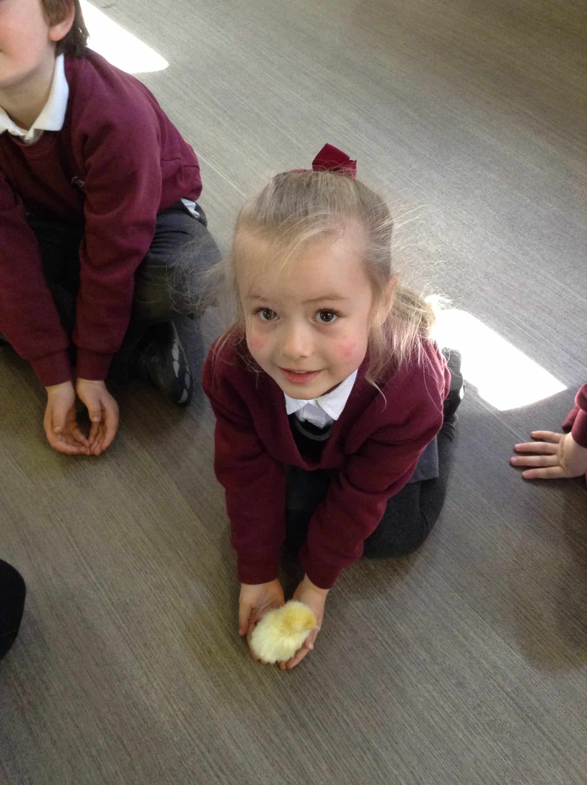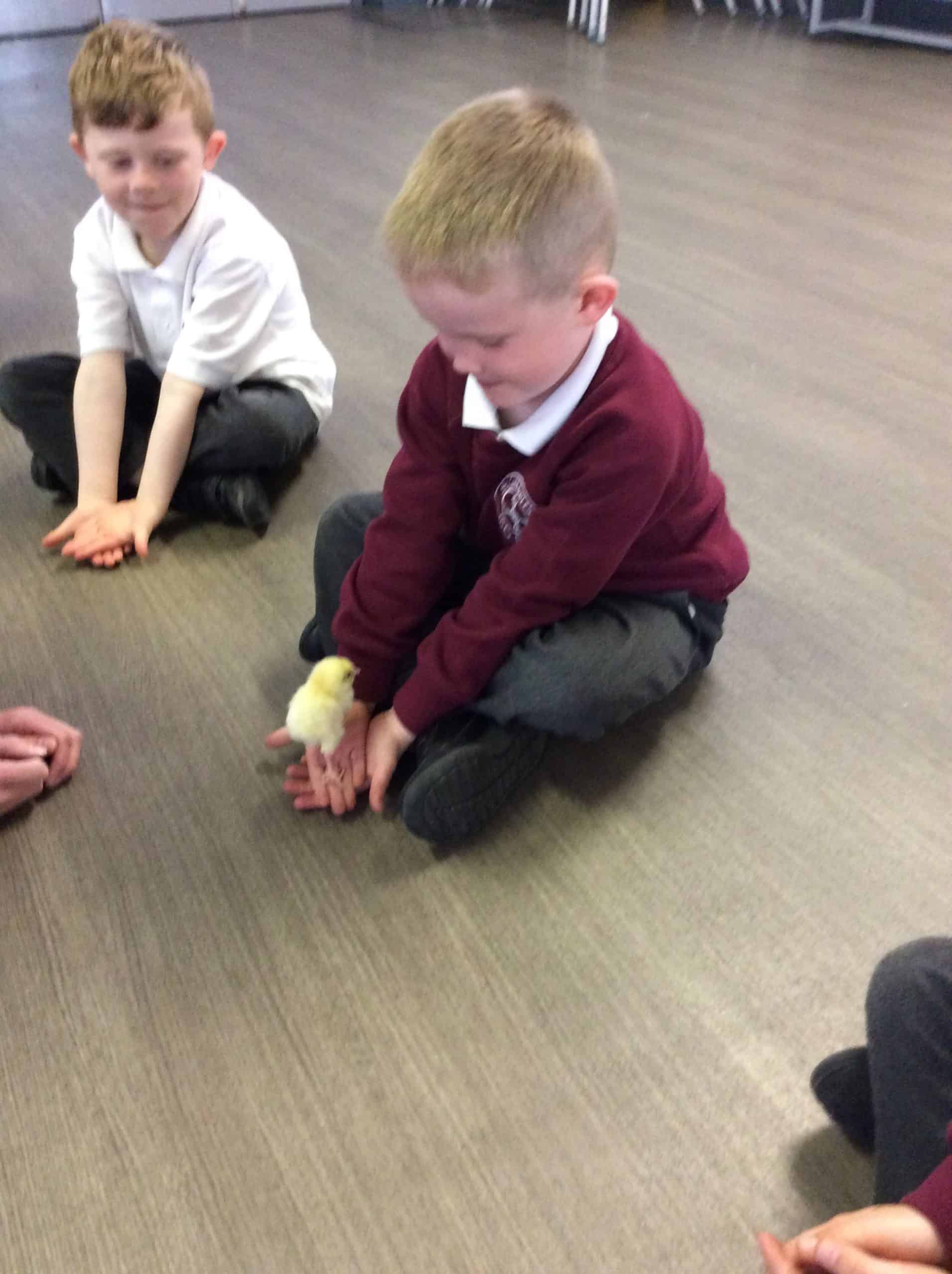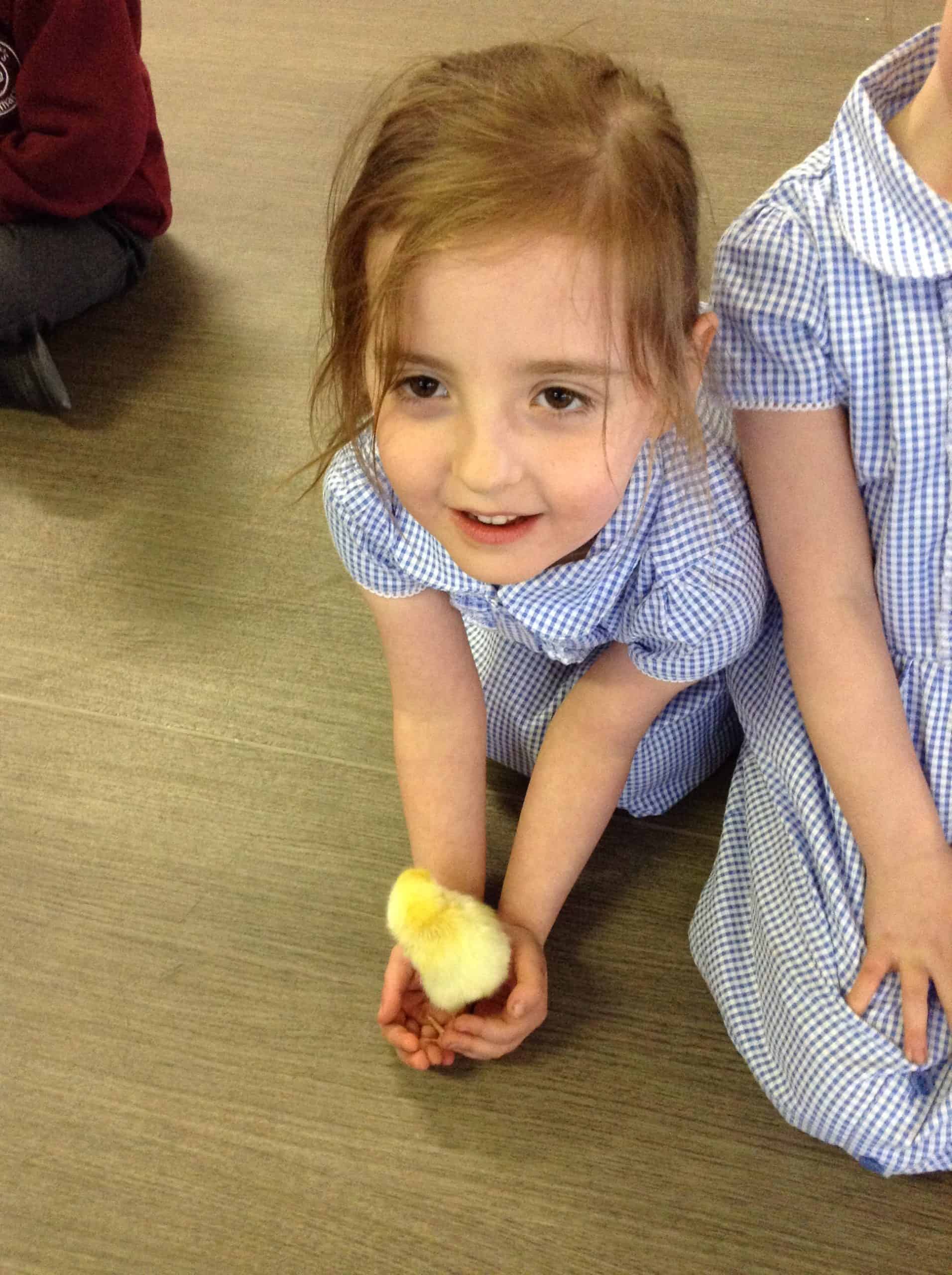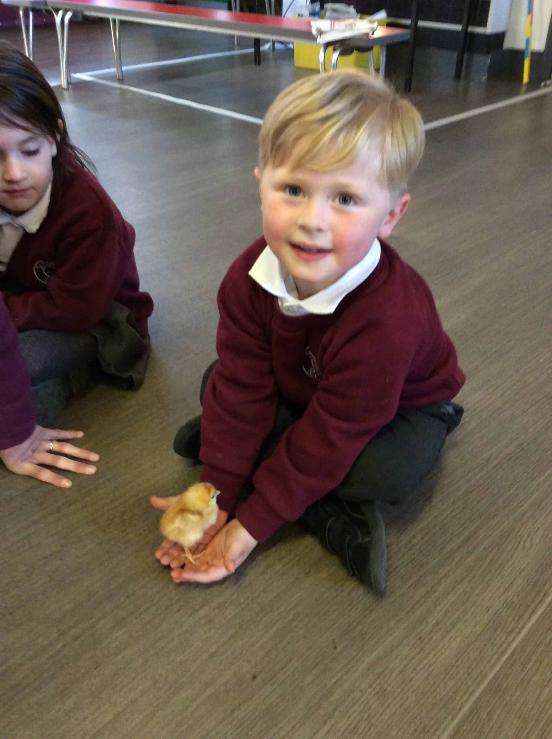 Reception Class were really excited when the eggs arrived in school on Monday. They couldn't wait to finally meet the chicks that hatched out over the week.