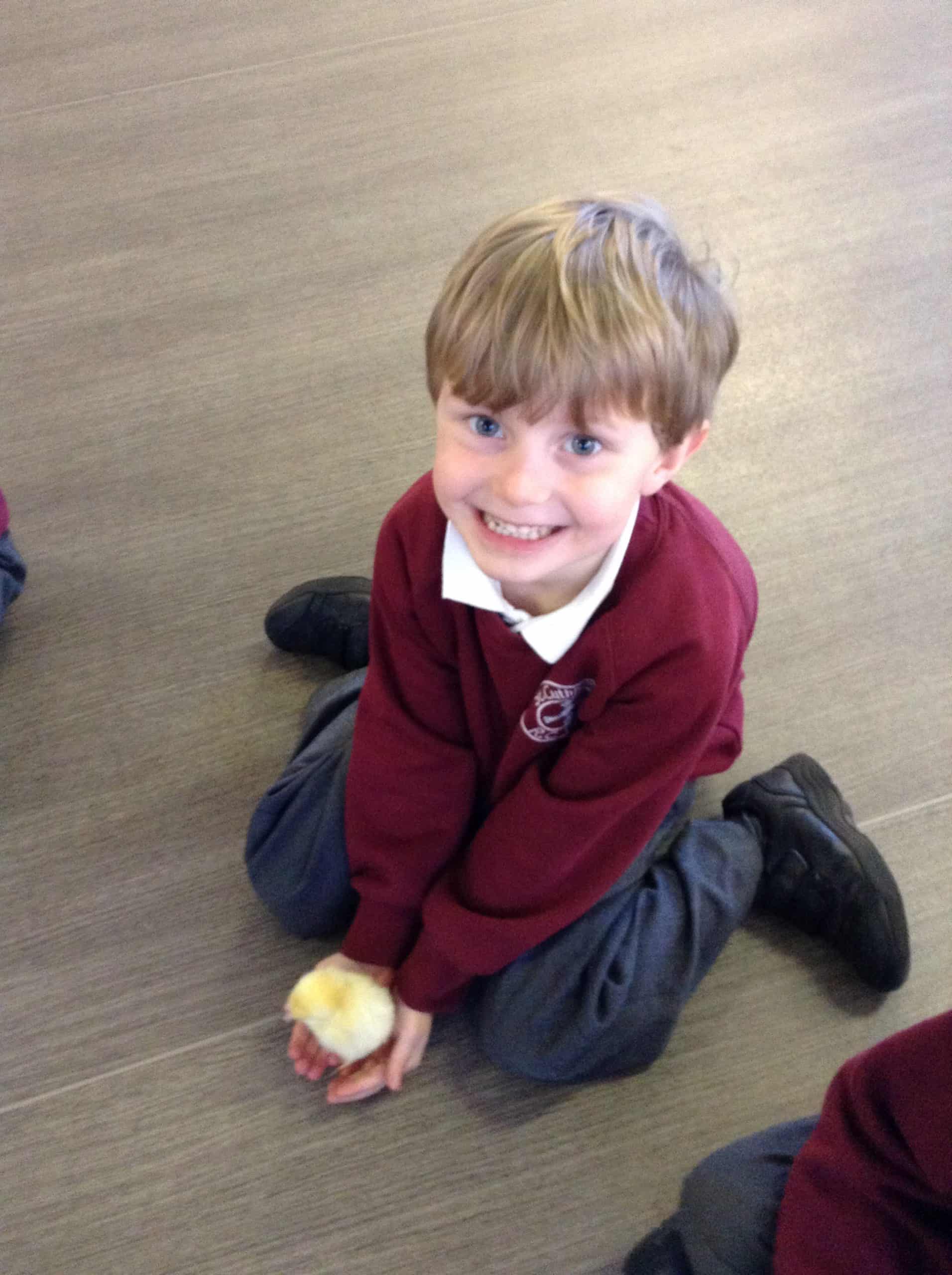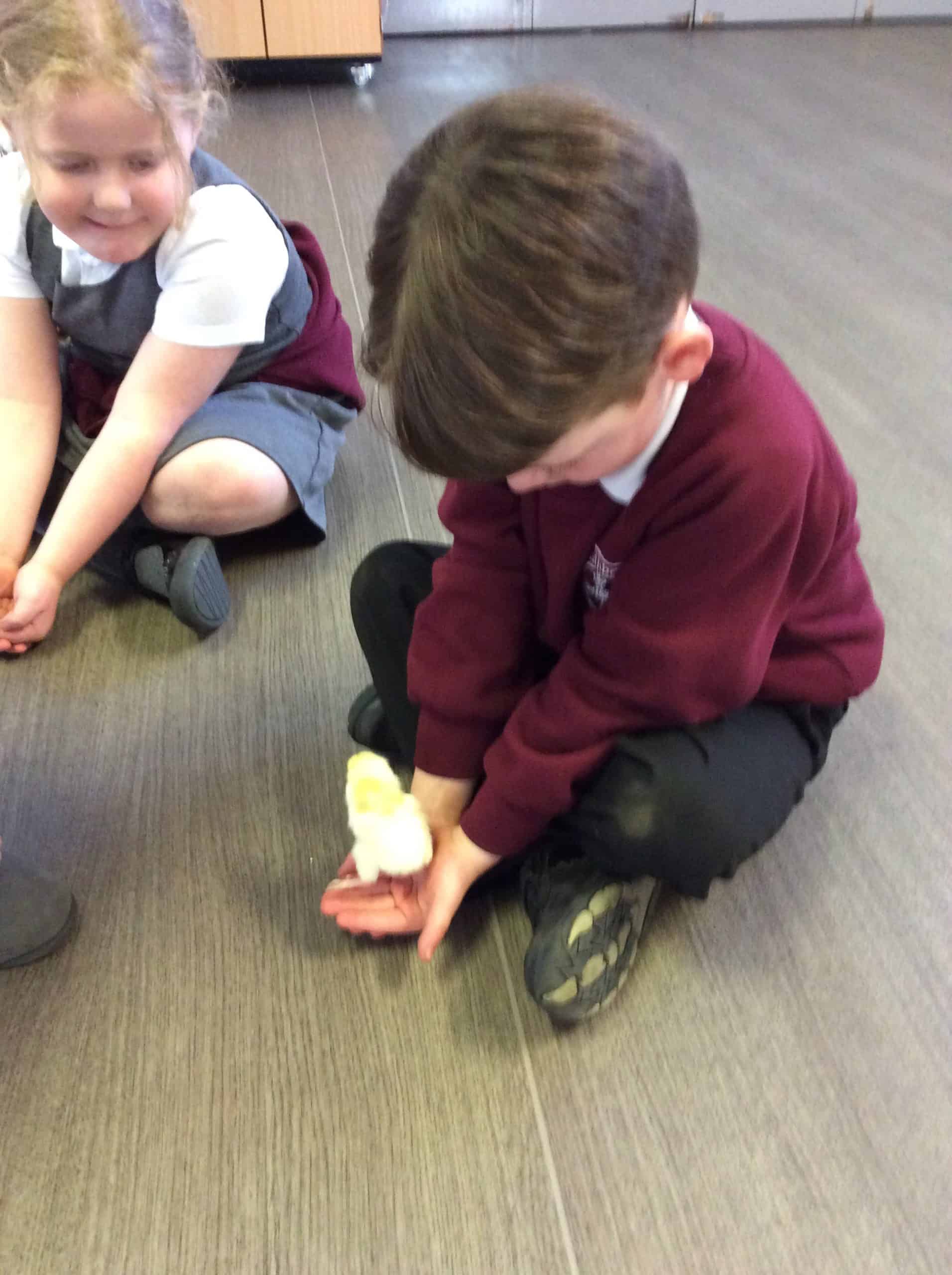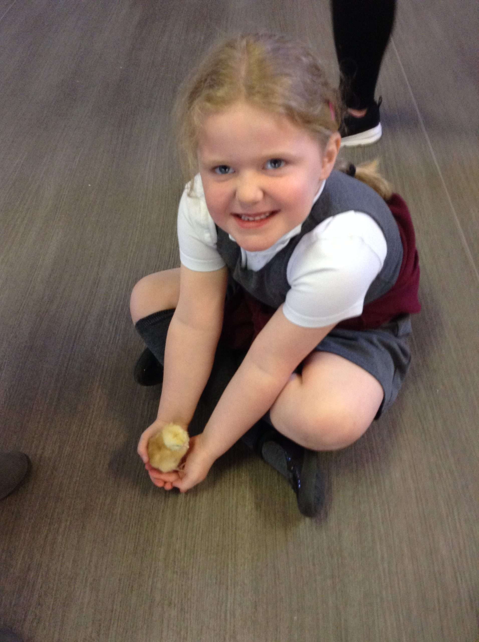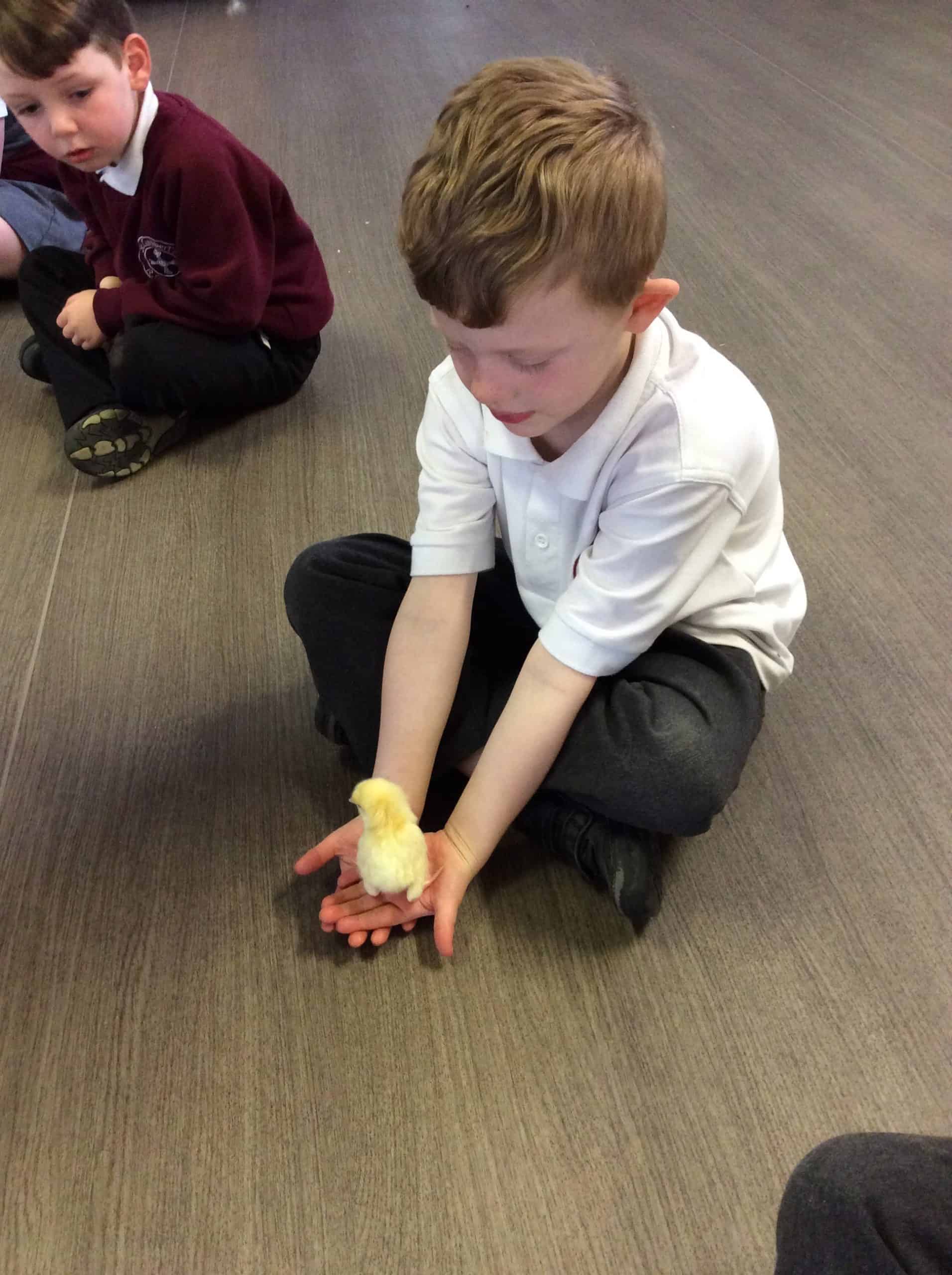 Reception Class were really excited when the eggs arrived in school on Monday. They couldn't wait to finally meet the chicks that hatched out over the week.