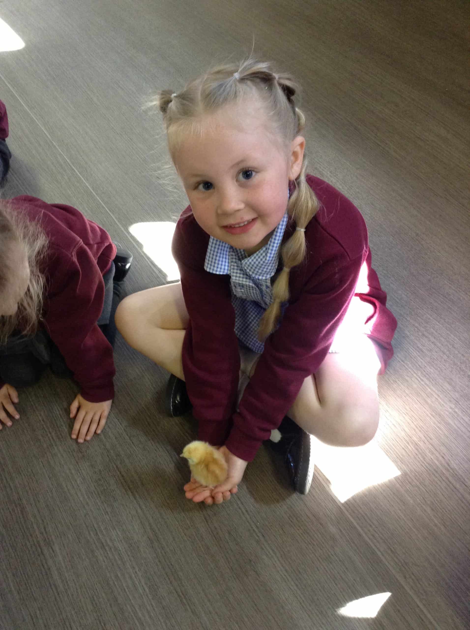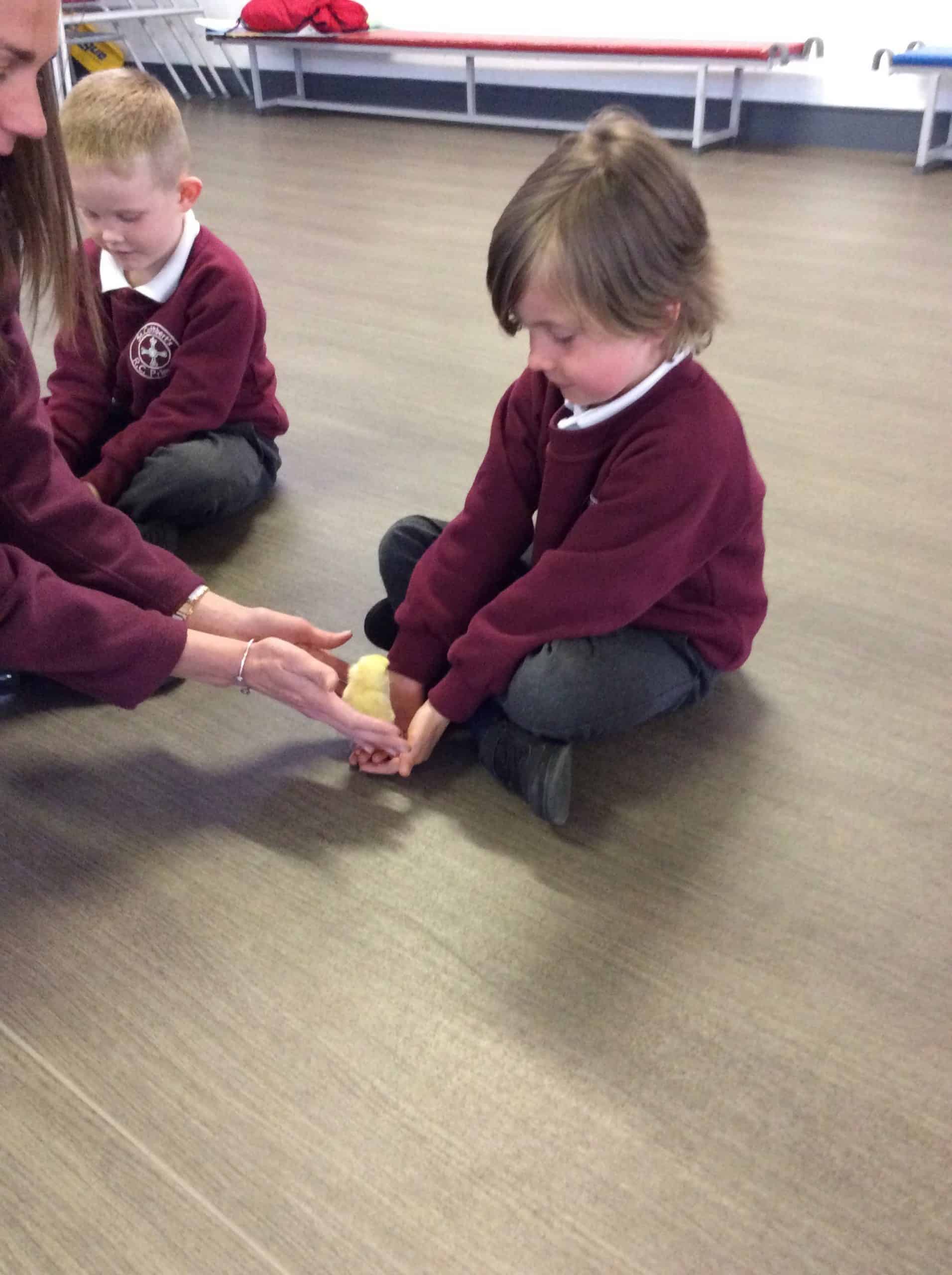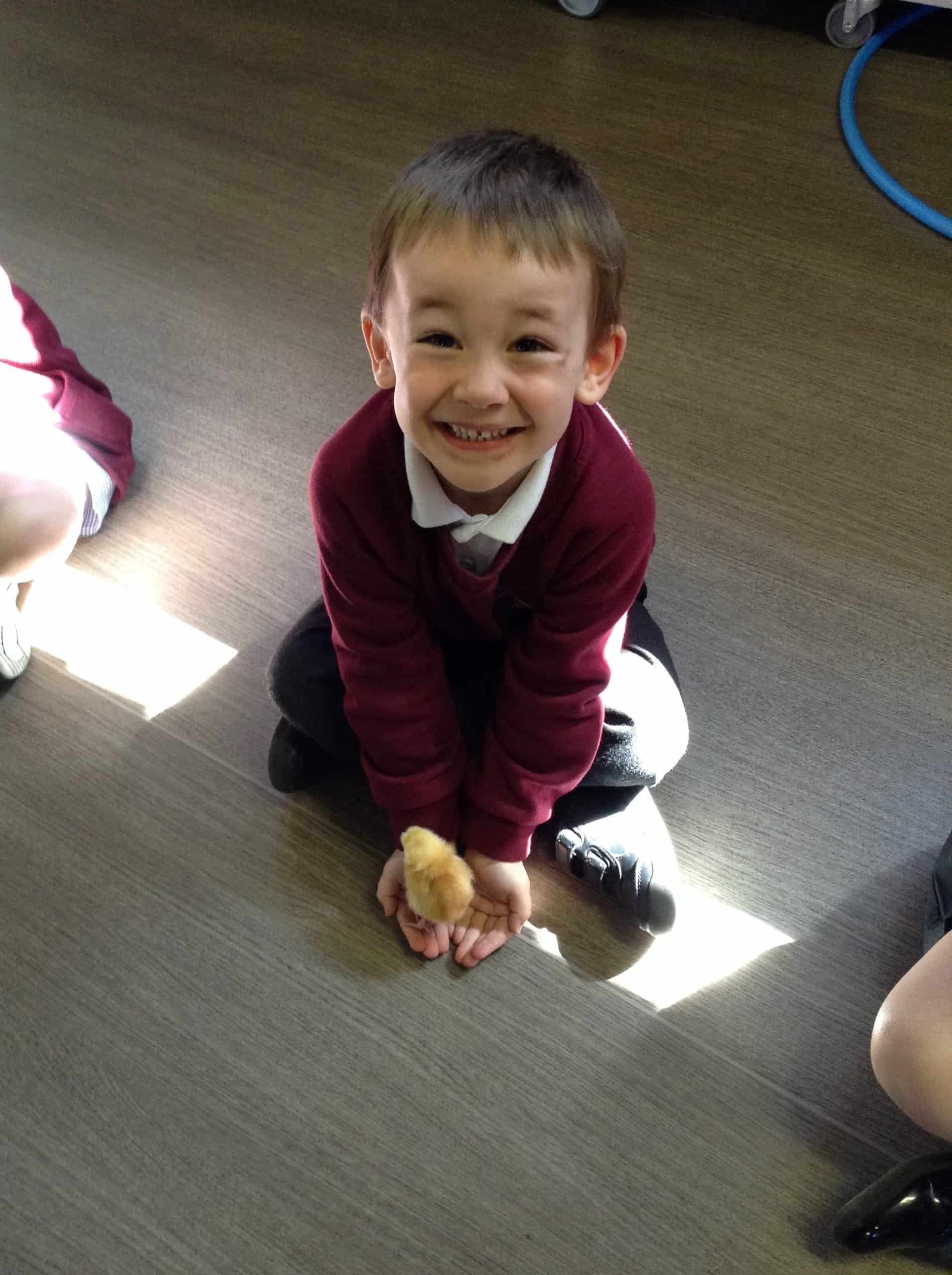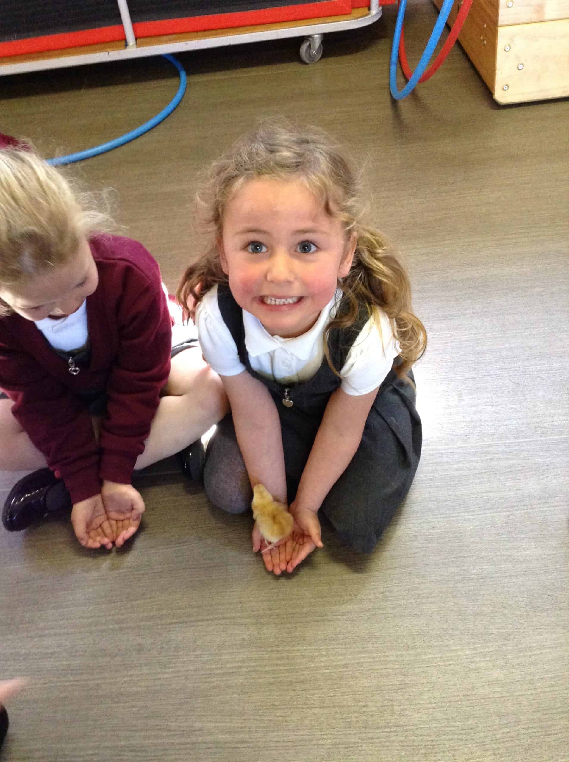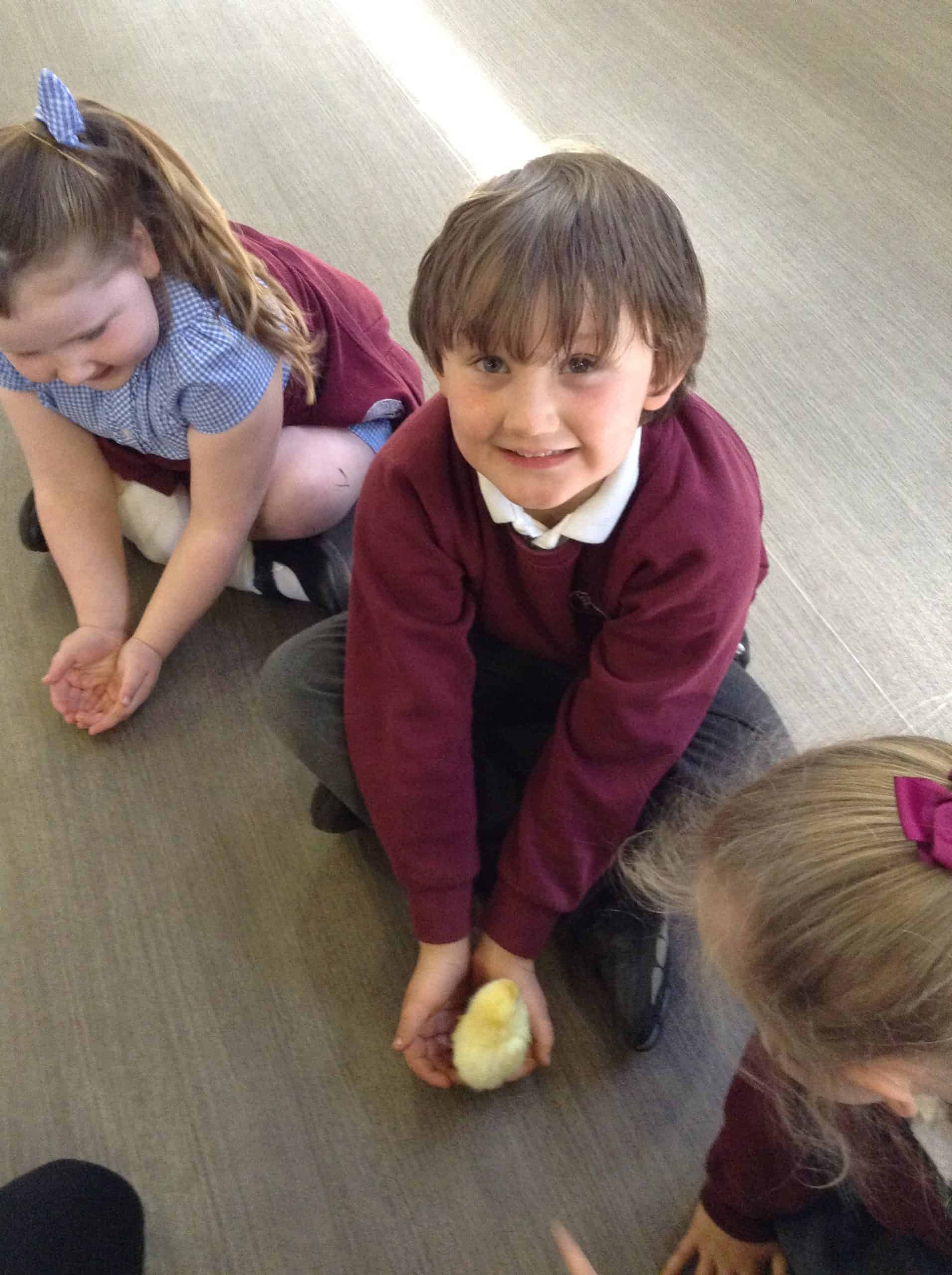 Reception Class were really excited when the eggs arrived in school on Monday. They couldn't wait to finally meet the chicks that hatched out over the week.