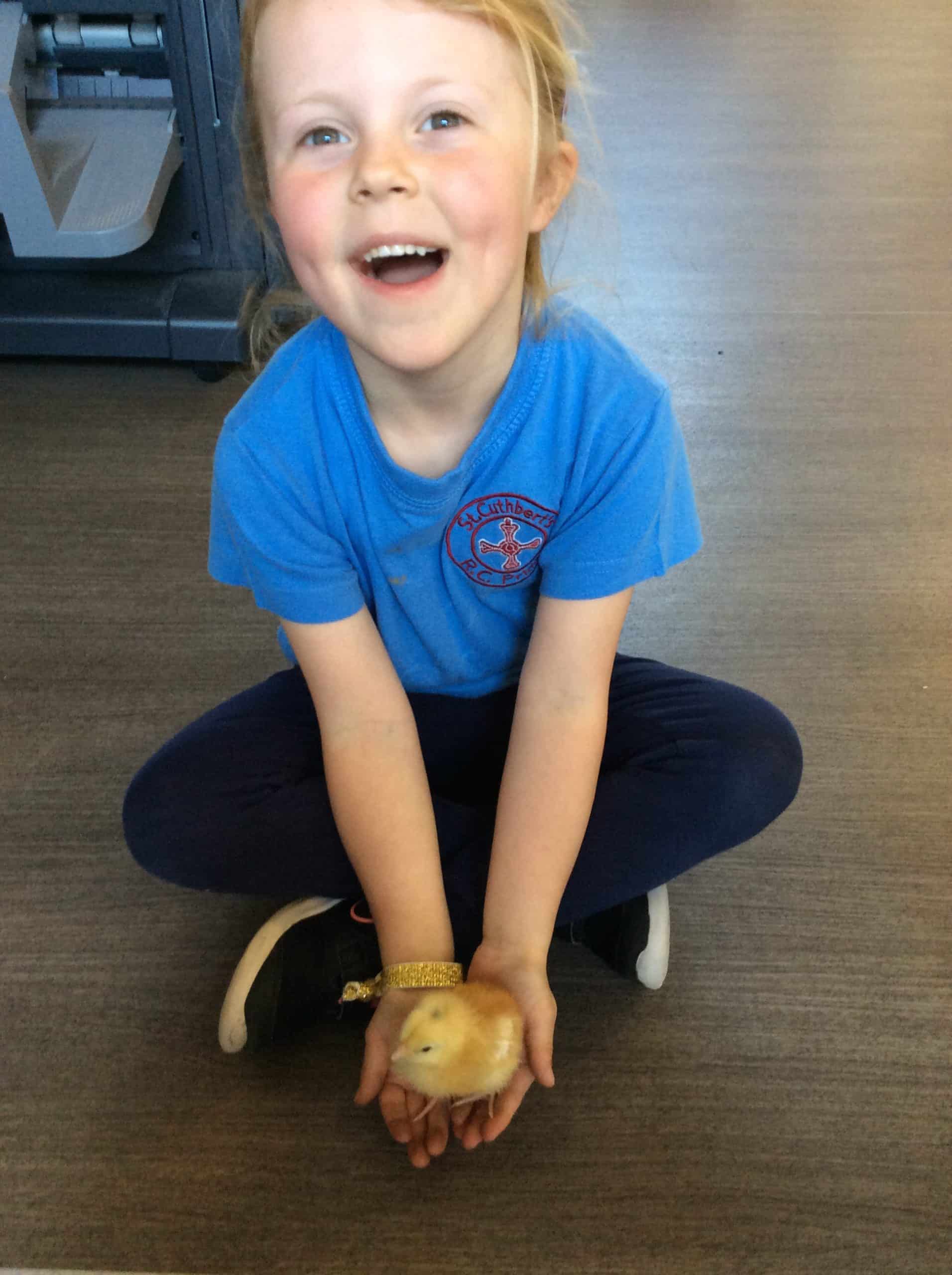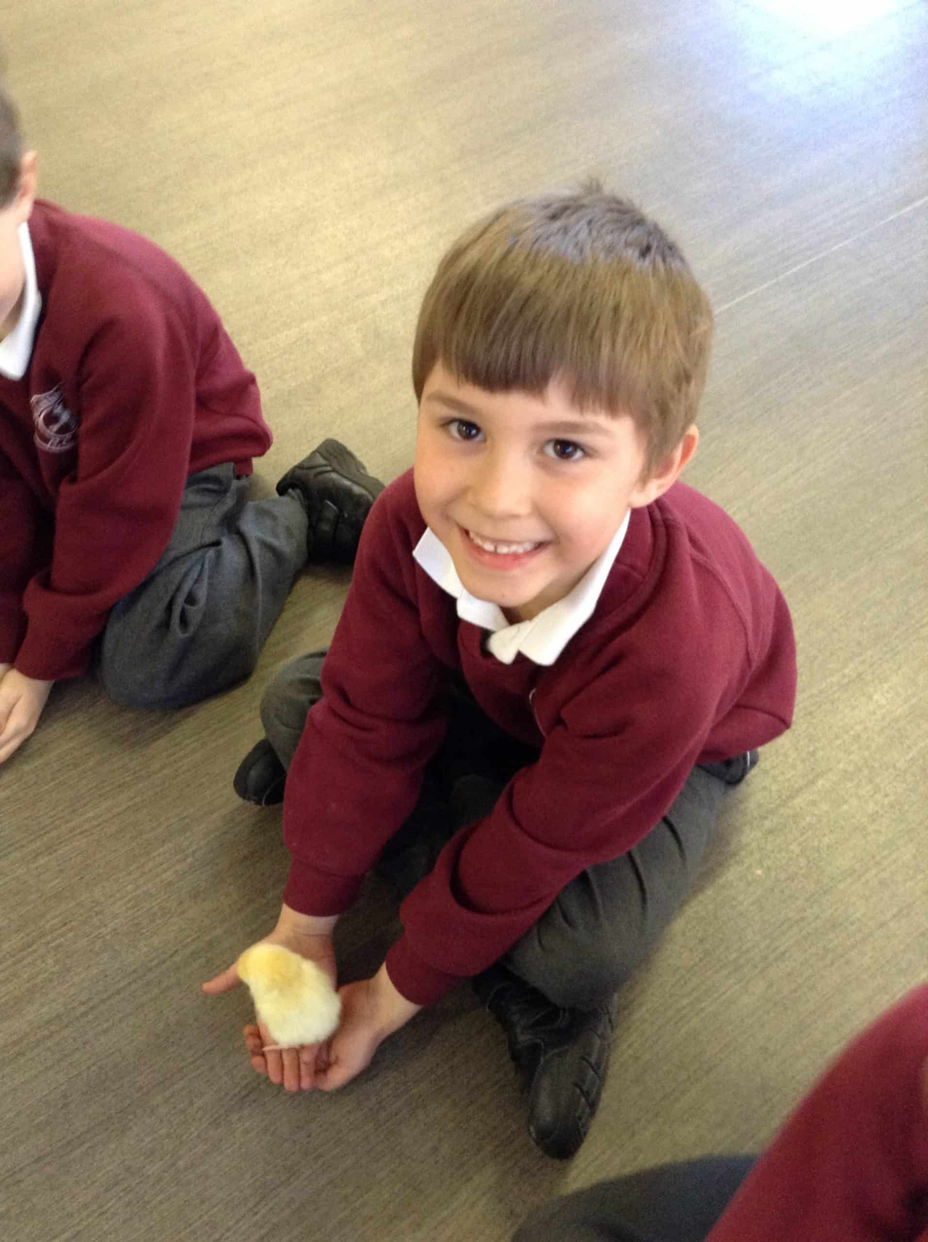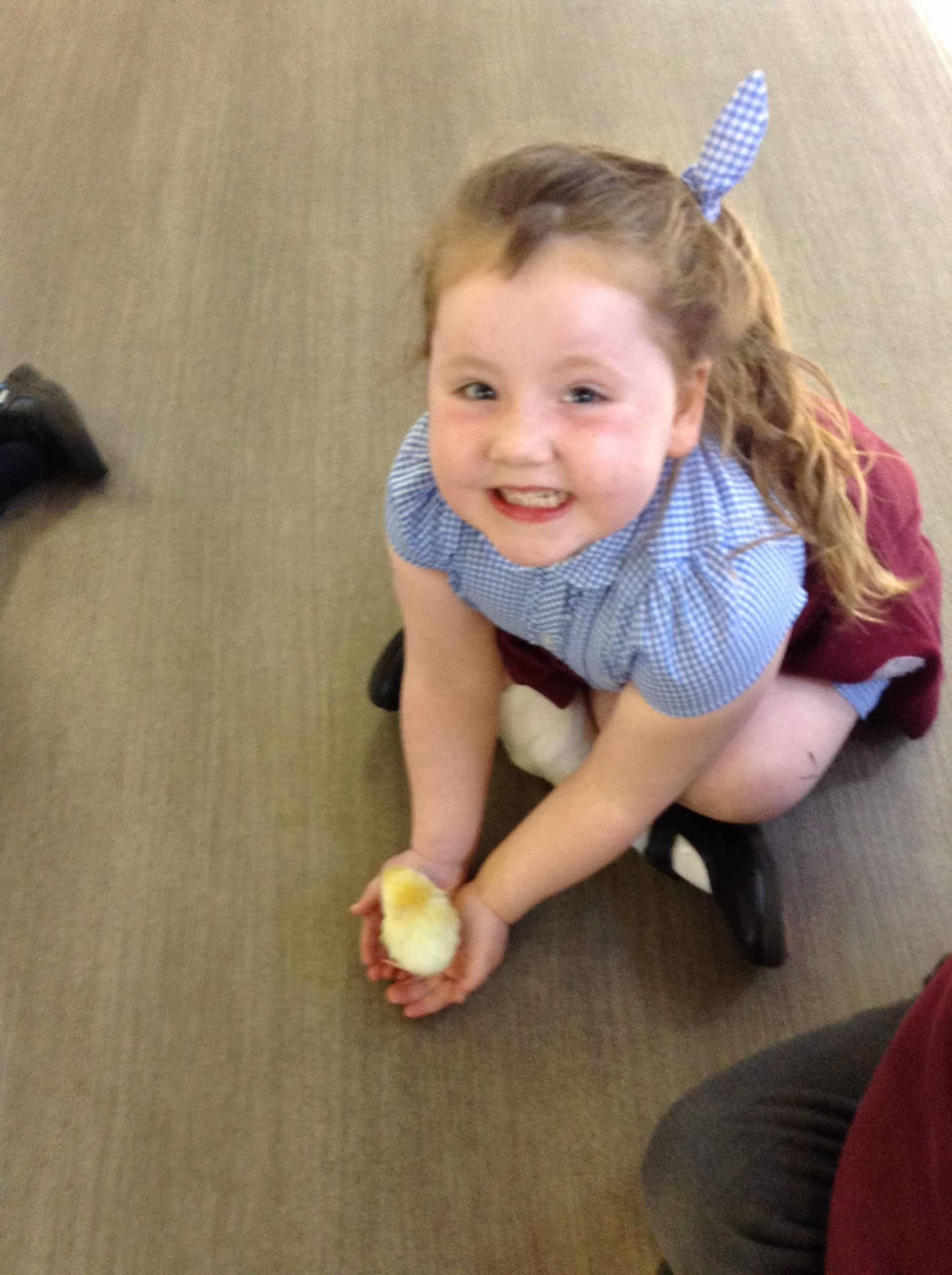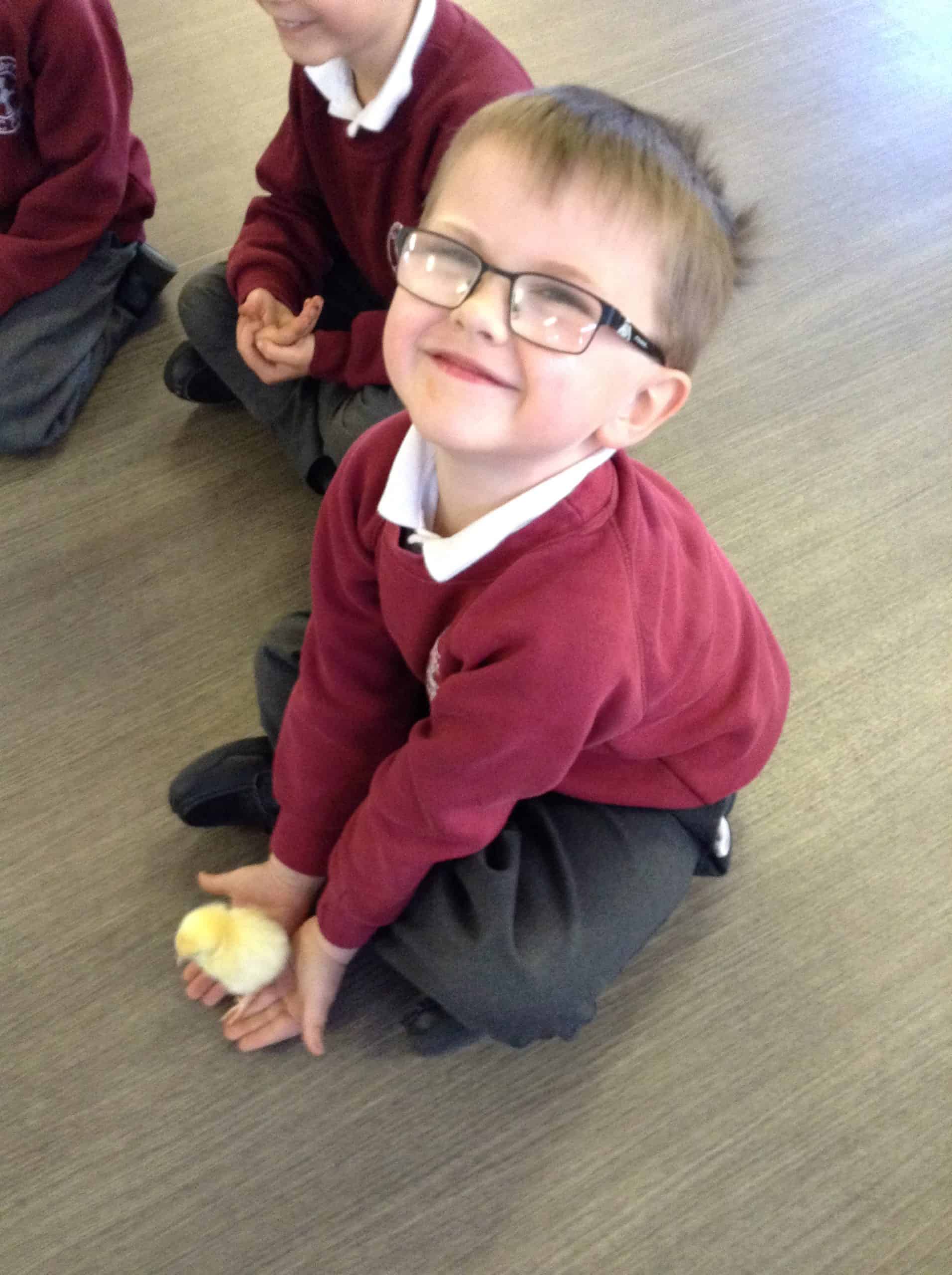 Reception Class were really excited when the eggs arrived in school on Monday. They couldn't wait to finally meet the chicks that hatched out over the week.