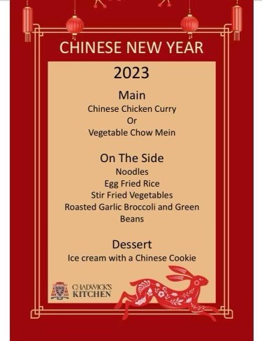Jan and her team will be preparing a special Chinese New Year menu on Tuesday 24th January. If your child usually has packed lunch and you would like them to take part, please contact Mrs McGann in the school office.
