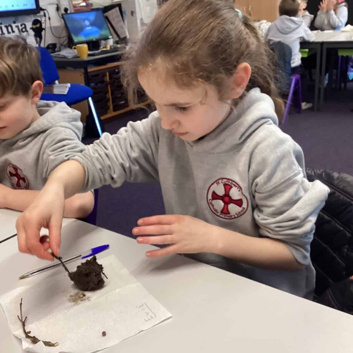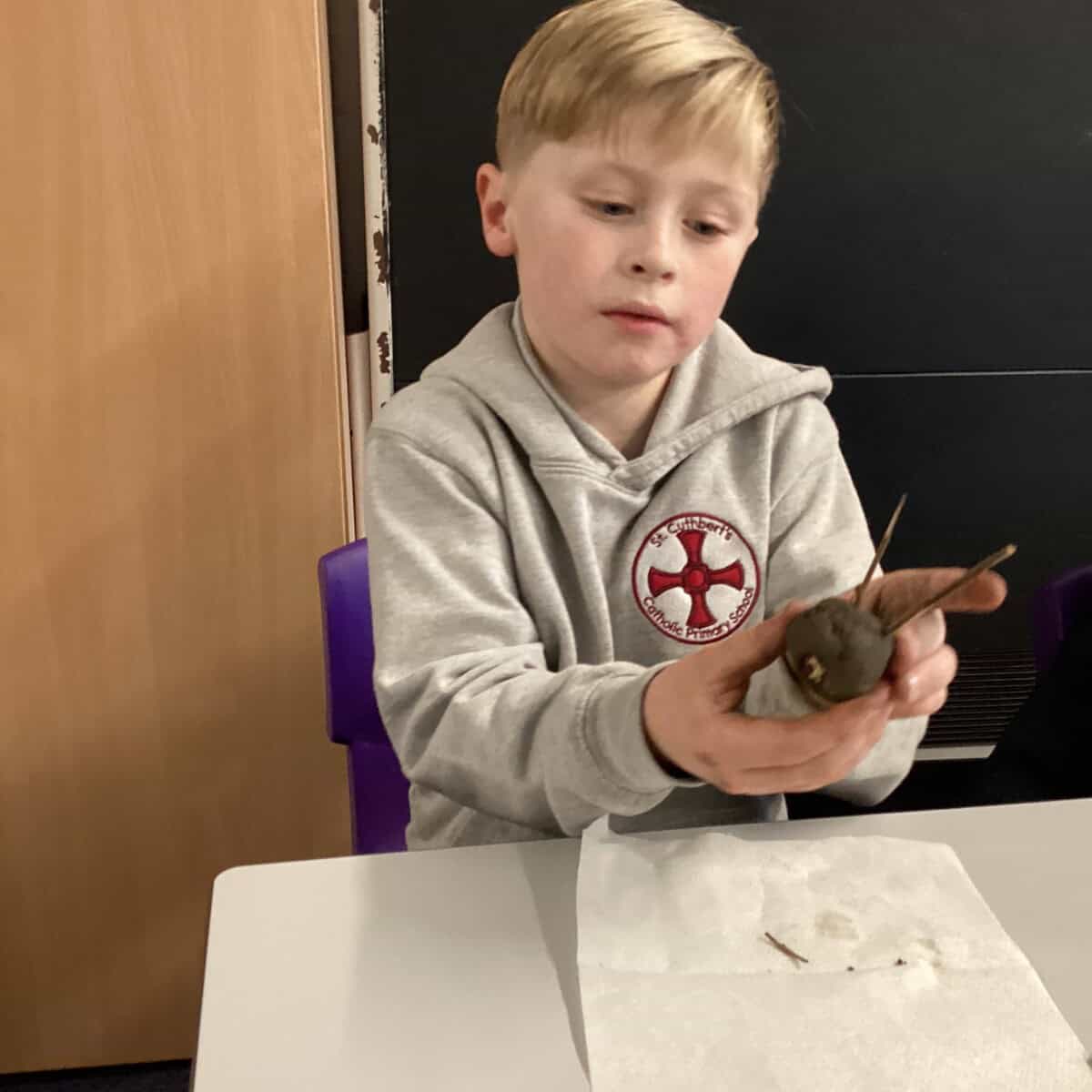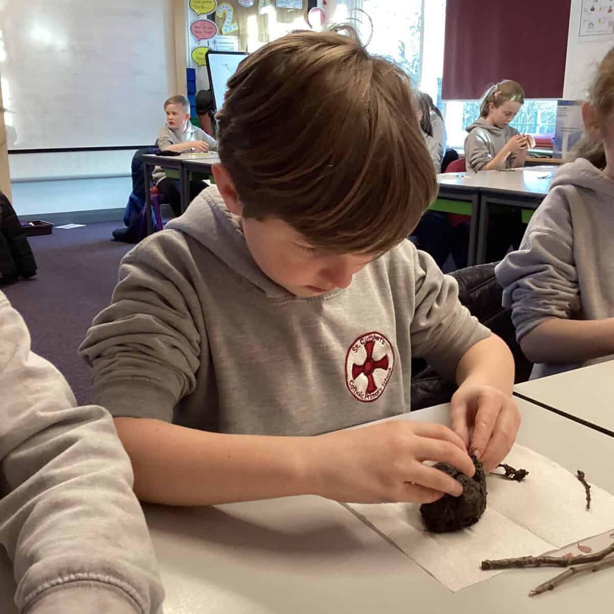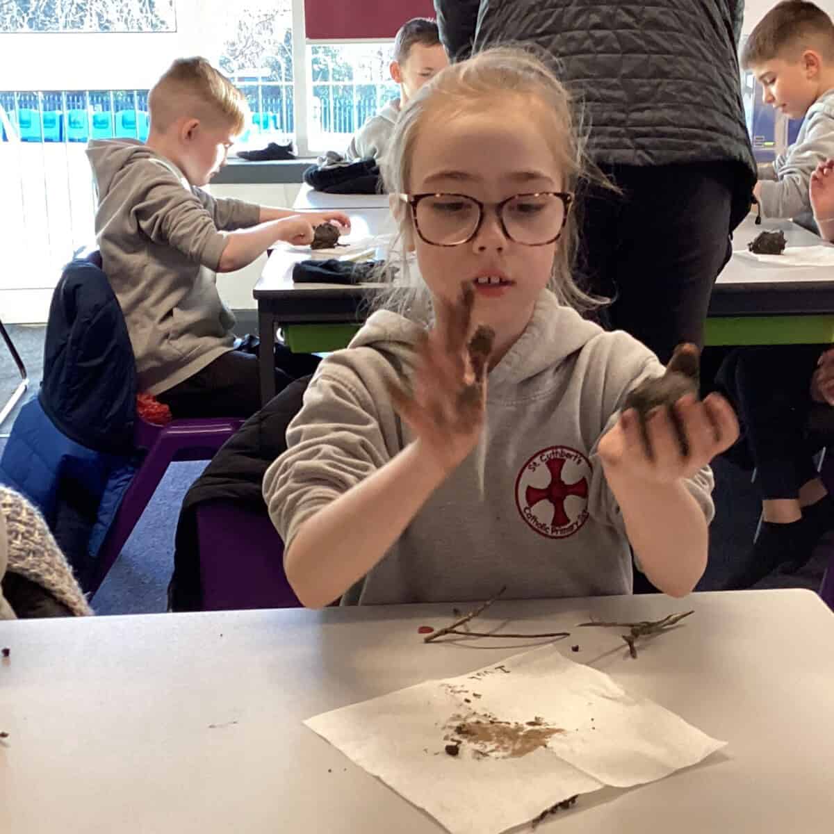 Rachel came into school to help Year 4 create some Christmas crafts outdoors. We used different materials around us to make a giant class snowman. We the had to collect sticks for our reindeer's antlers which we made out of mud! To finish our festive session we made a fire in the fire pit sang Christmas songs and made hot chocolate and toasted marshmallows. What a lovely way to end our week.