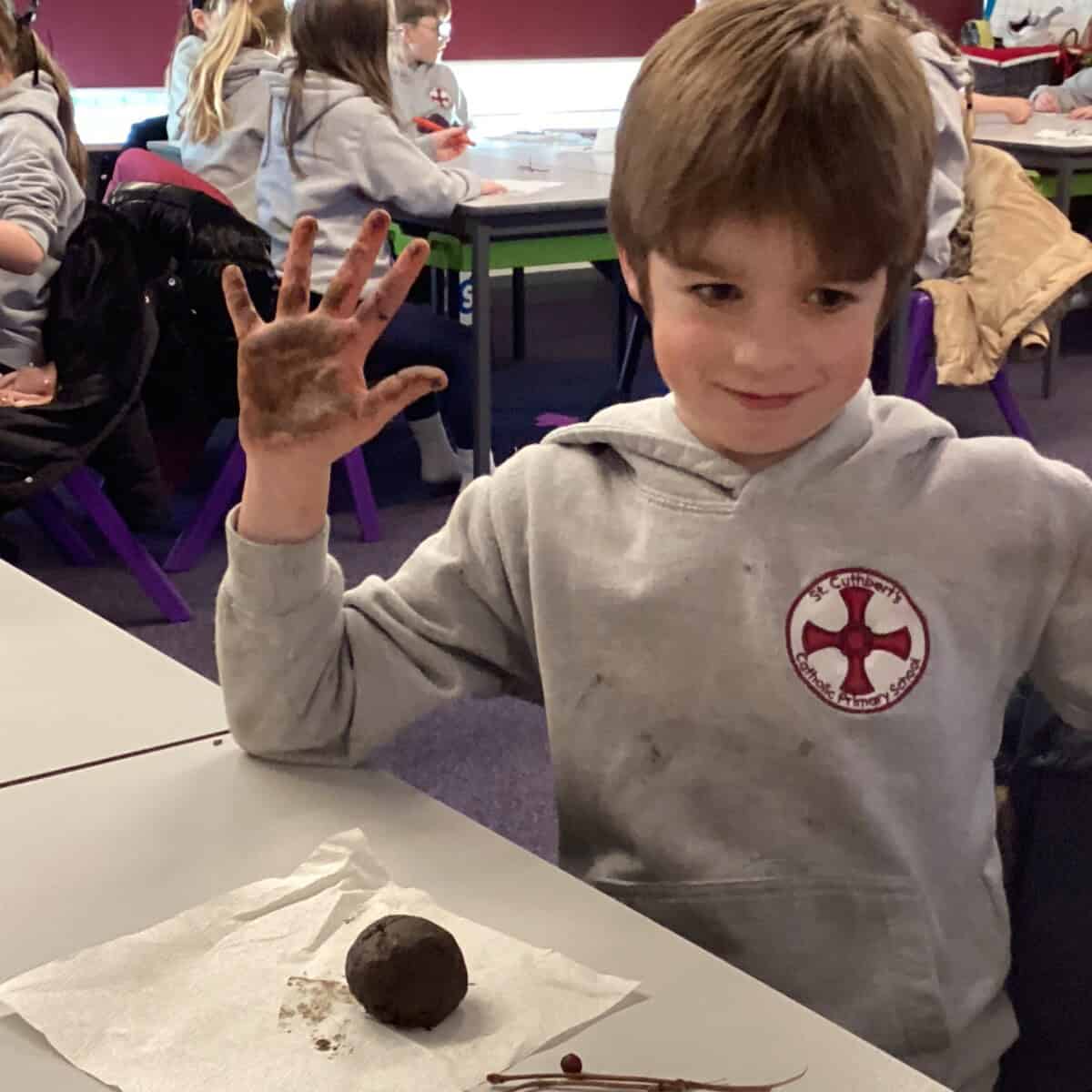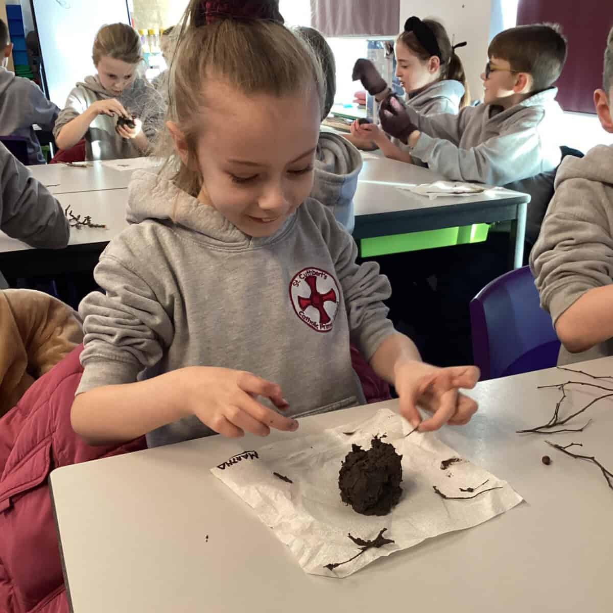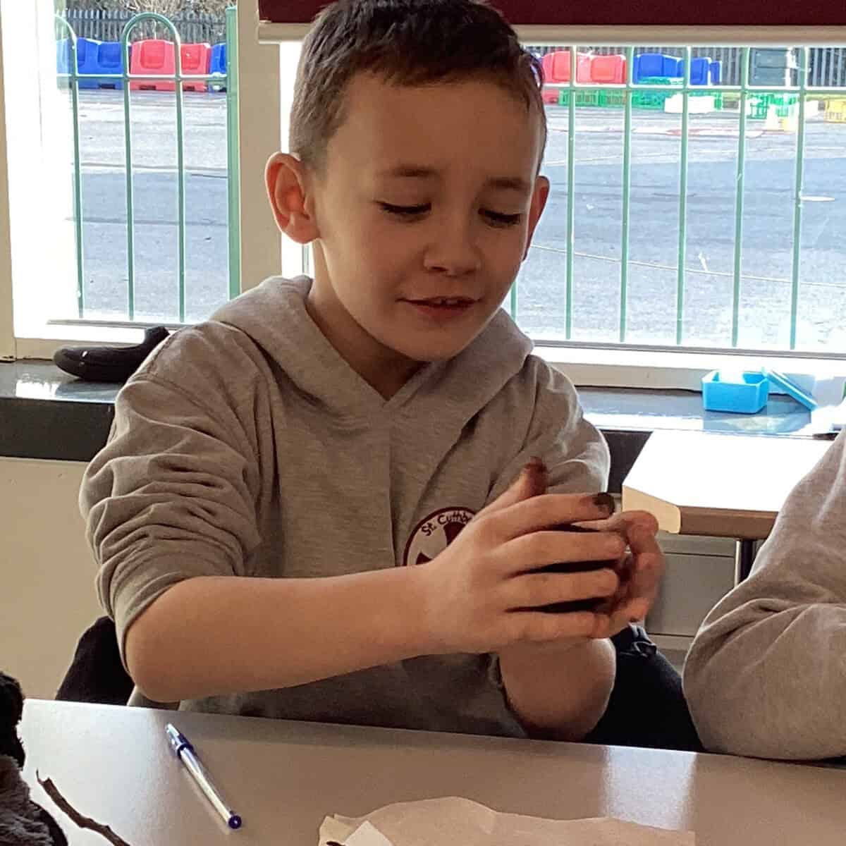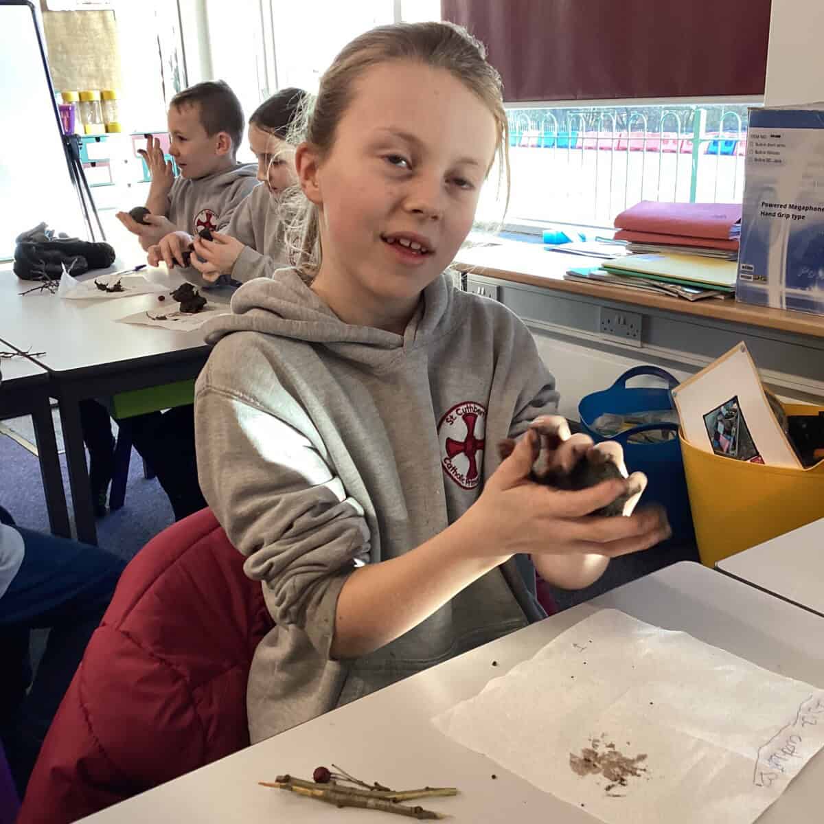 Rachel came into school to help Year 4 create some Christmas crafts outdoors. We used different materials around us to make a giant class snowman. We the had to collect sticks for our reindeer's antlers which we made out of mud! To finish our festive session we made a fire in the fire pit sang Christmas songs and made hot chocolate and toasted marshmallows. What a lovely way to end our week.