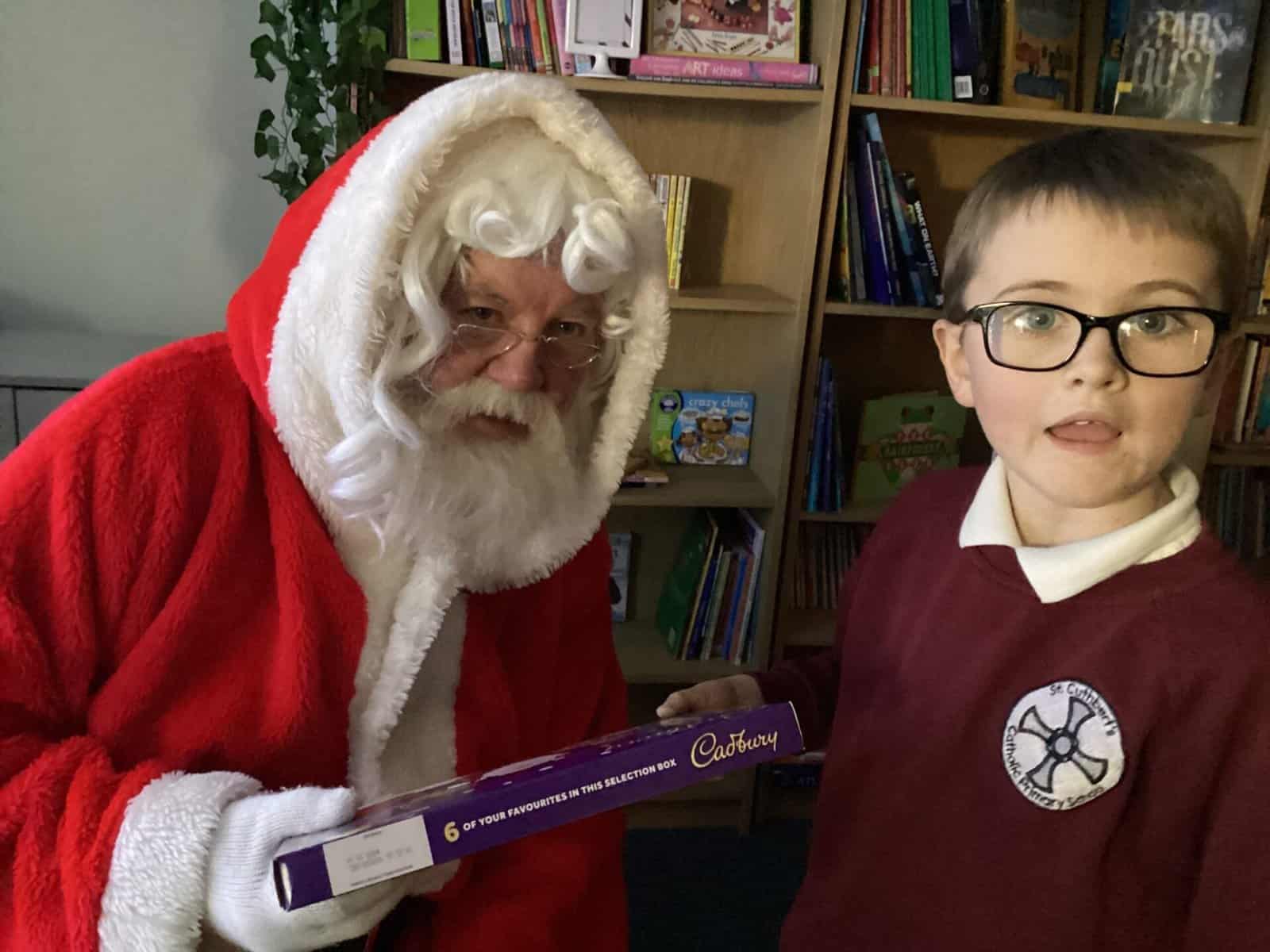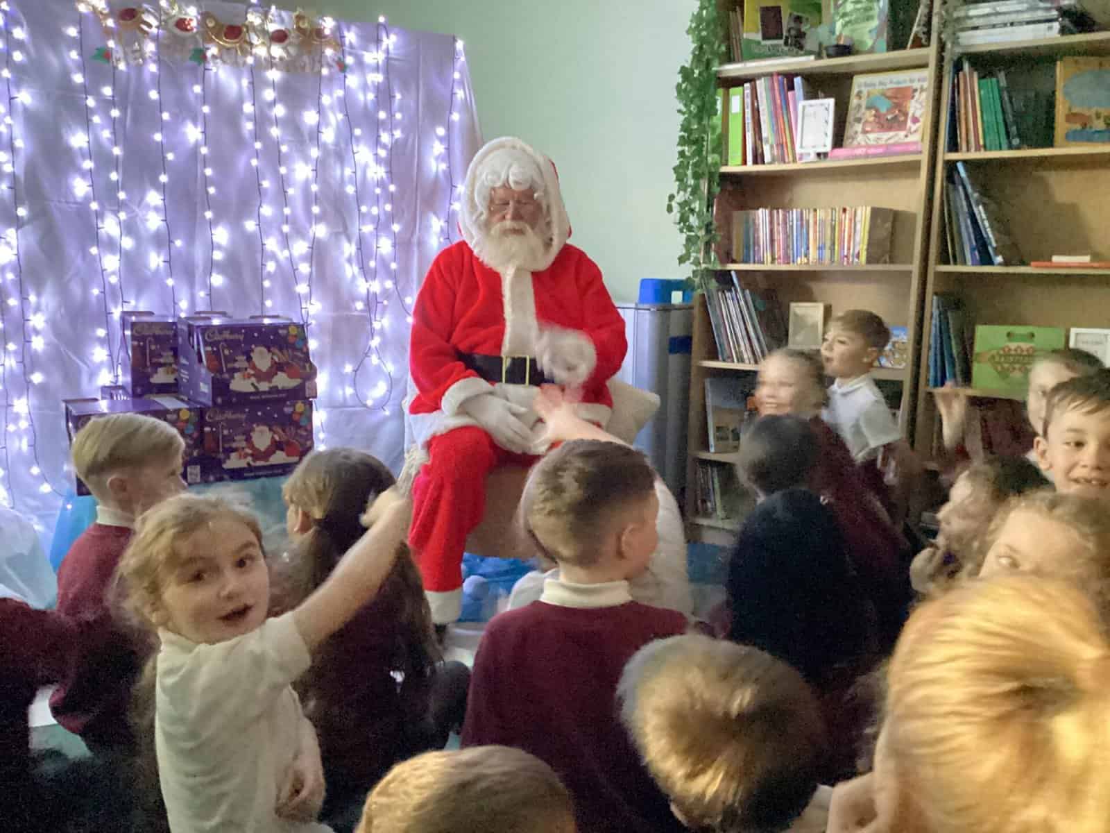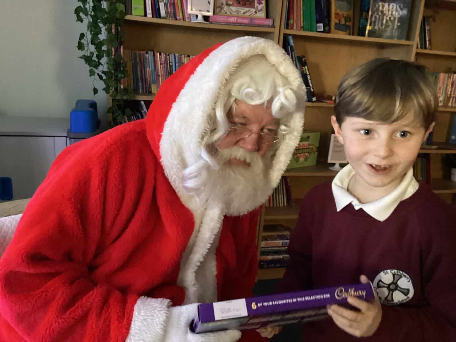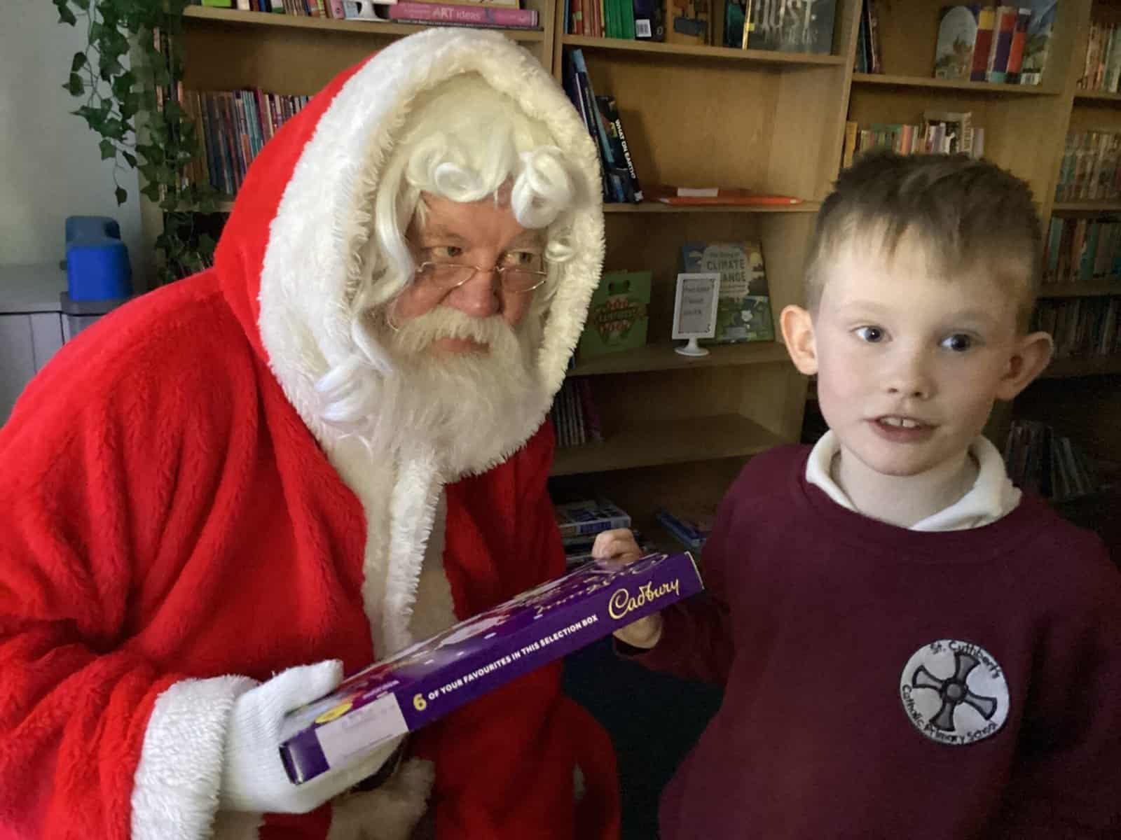 What a great day we had in school today. We enjoyed a delicious Christmas dinner cooked by Jan. Afterwards we had an exciting visit from a someone who made time in his busy schedule to drop in to see us to find out what we would like for Christmas. Santa also checked if we were all on his good list!!