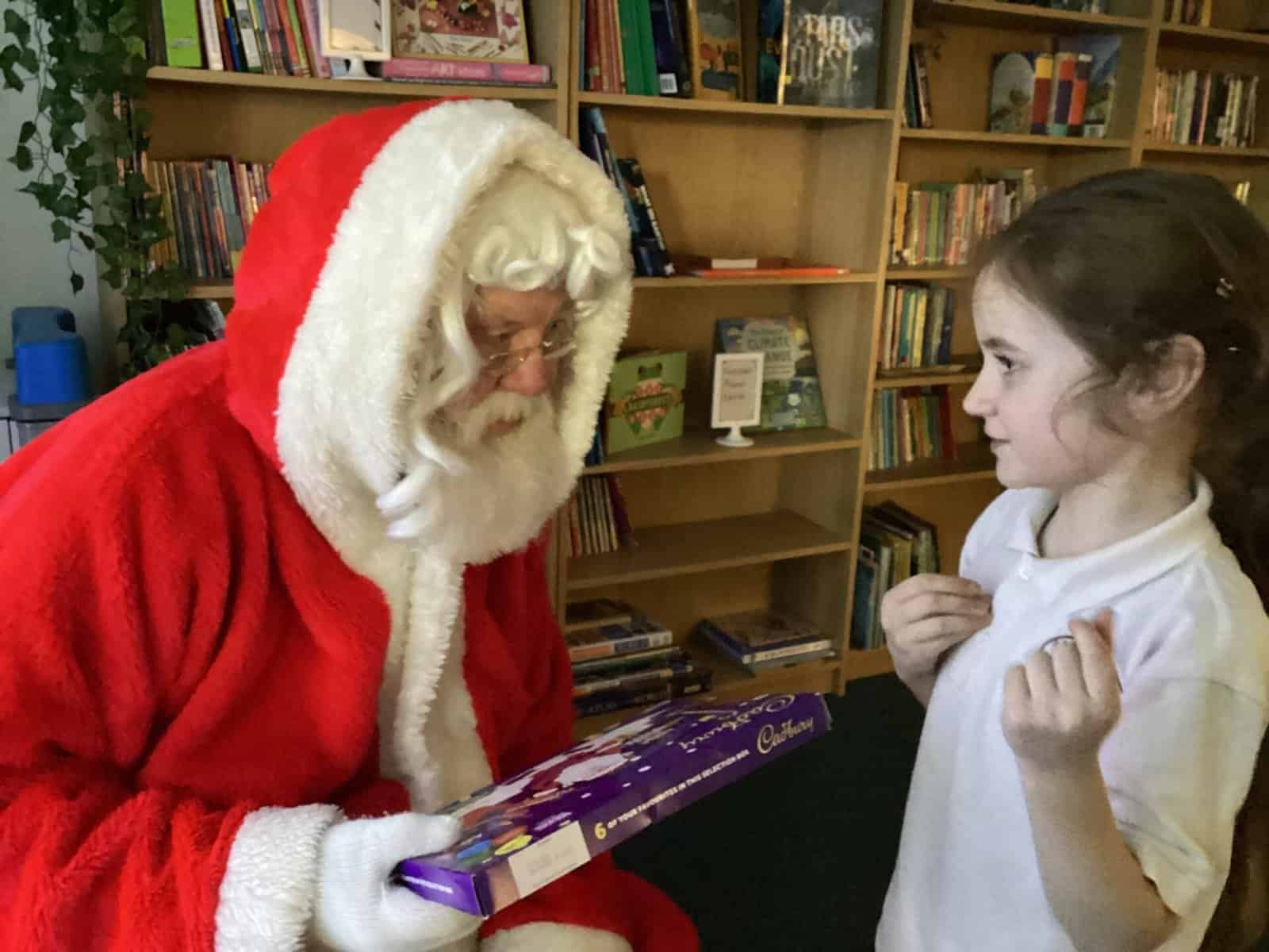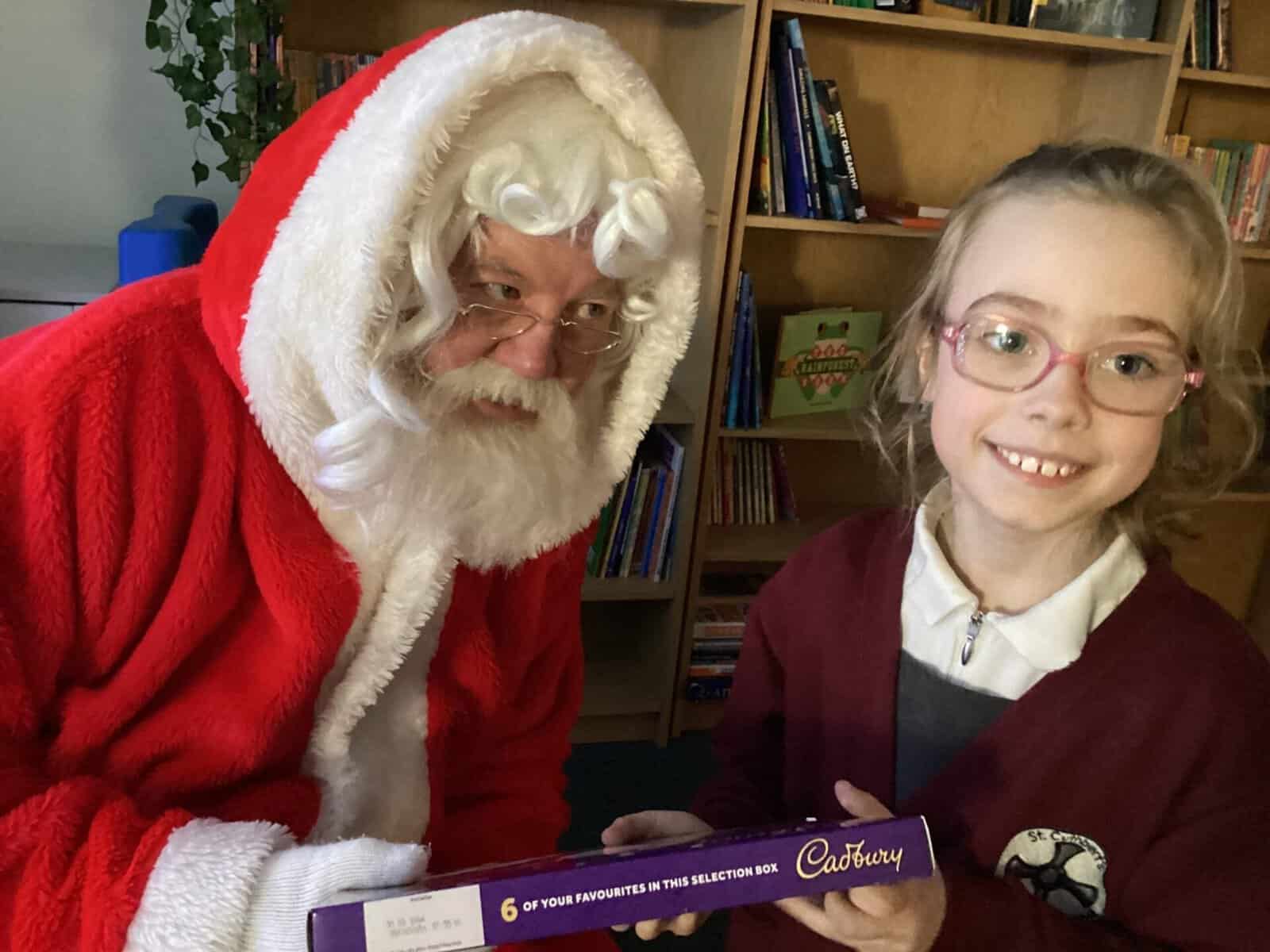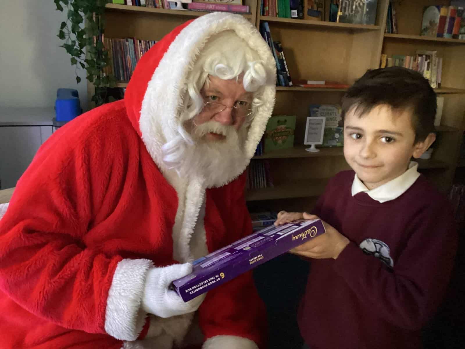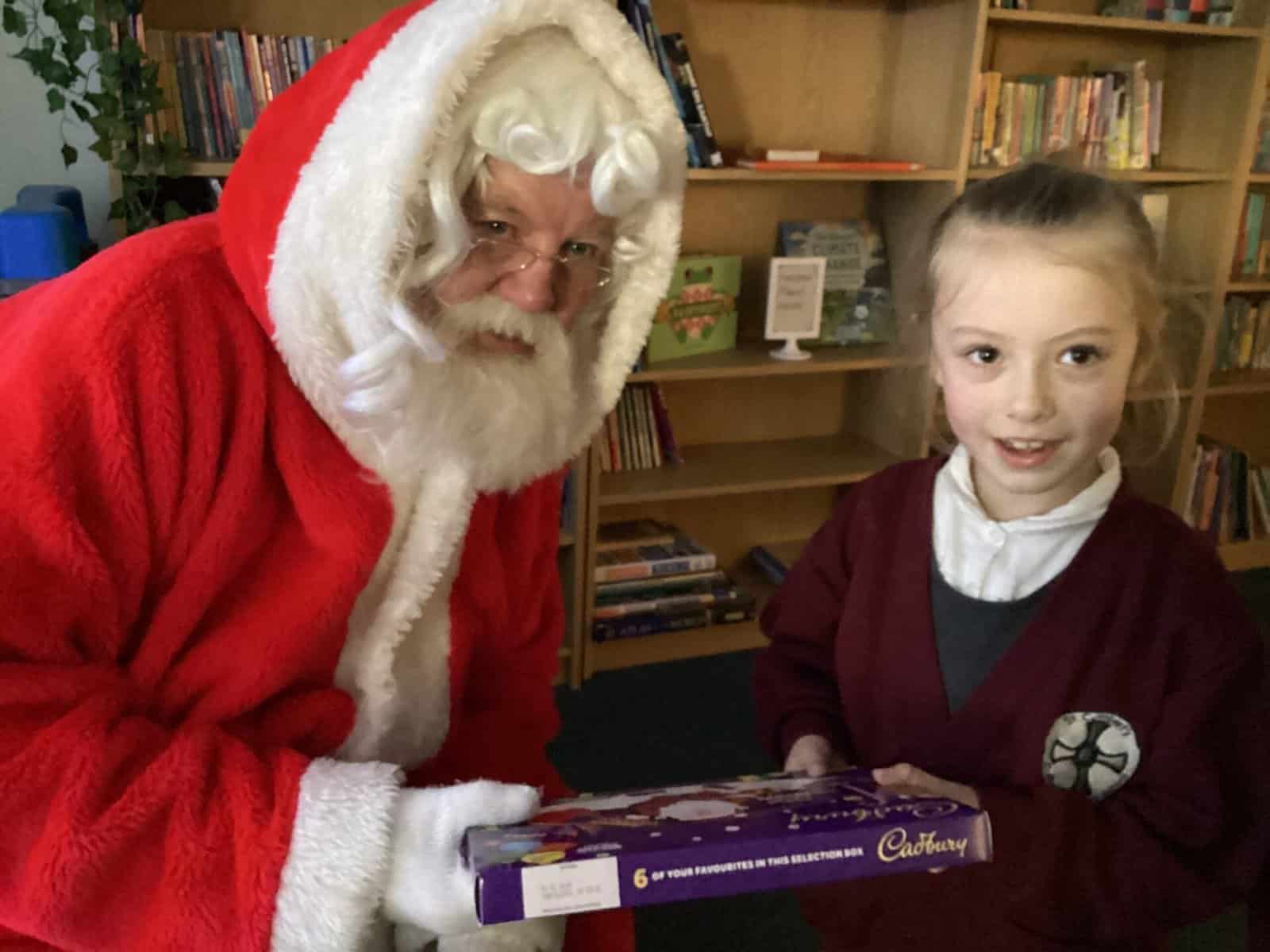 What a great day we had in school today. We enjoyed a delicious Christmas dinner cooked by Jan. Afterwards we had an exciting visit from a someone who made time in his busy schedule to drop in to see us to find out what we would like for Christmas. Santa also checked if we were all on his good list!!