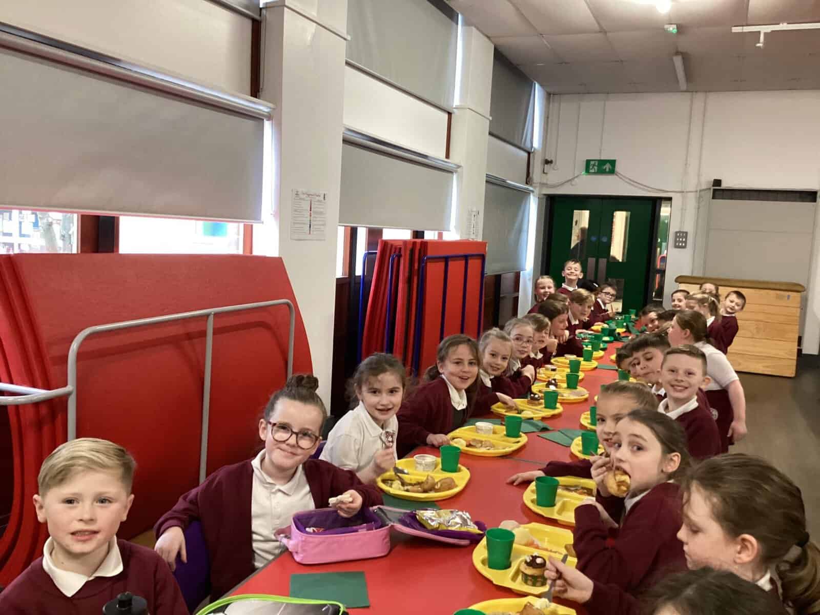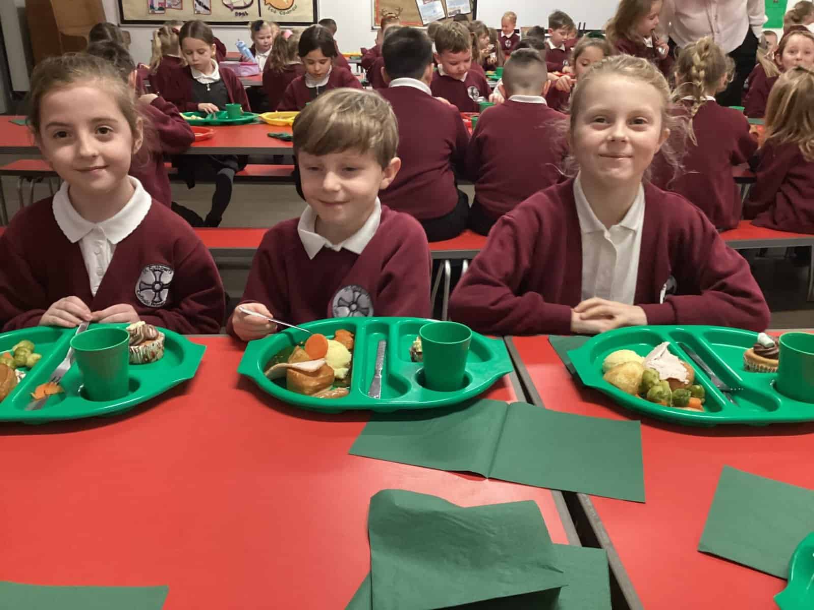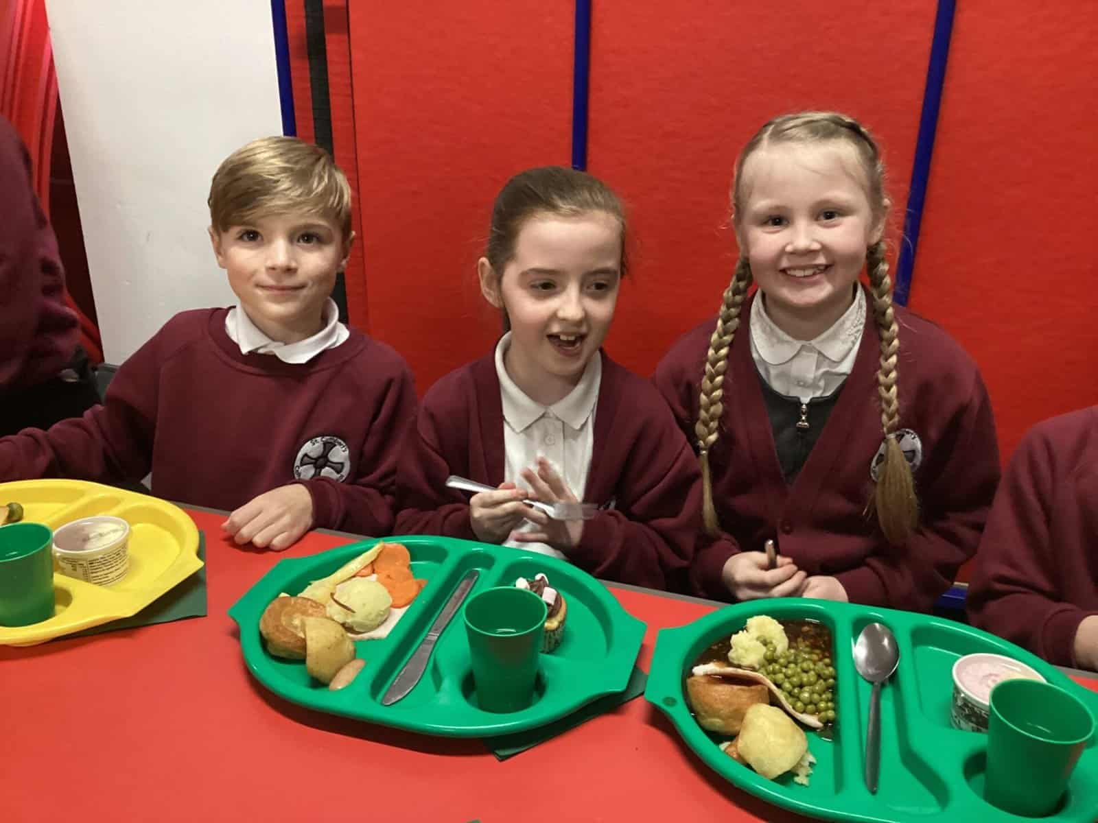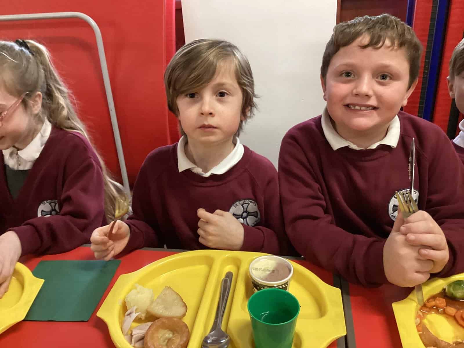 What a great day we had in school today. We enjoyed a delicious Christmas dinner cooked by Jan. Afterwards we had an exciting visit from a someone who made time in his busy schedule to drop in to see us to find out what we would like for Christmas. Santa also checked if we were all on his good list!!