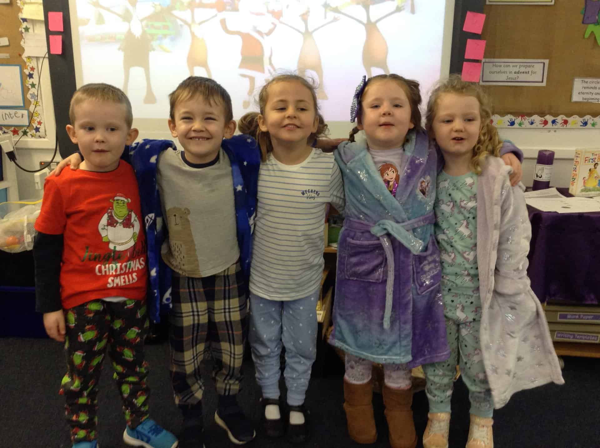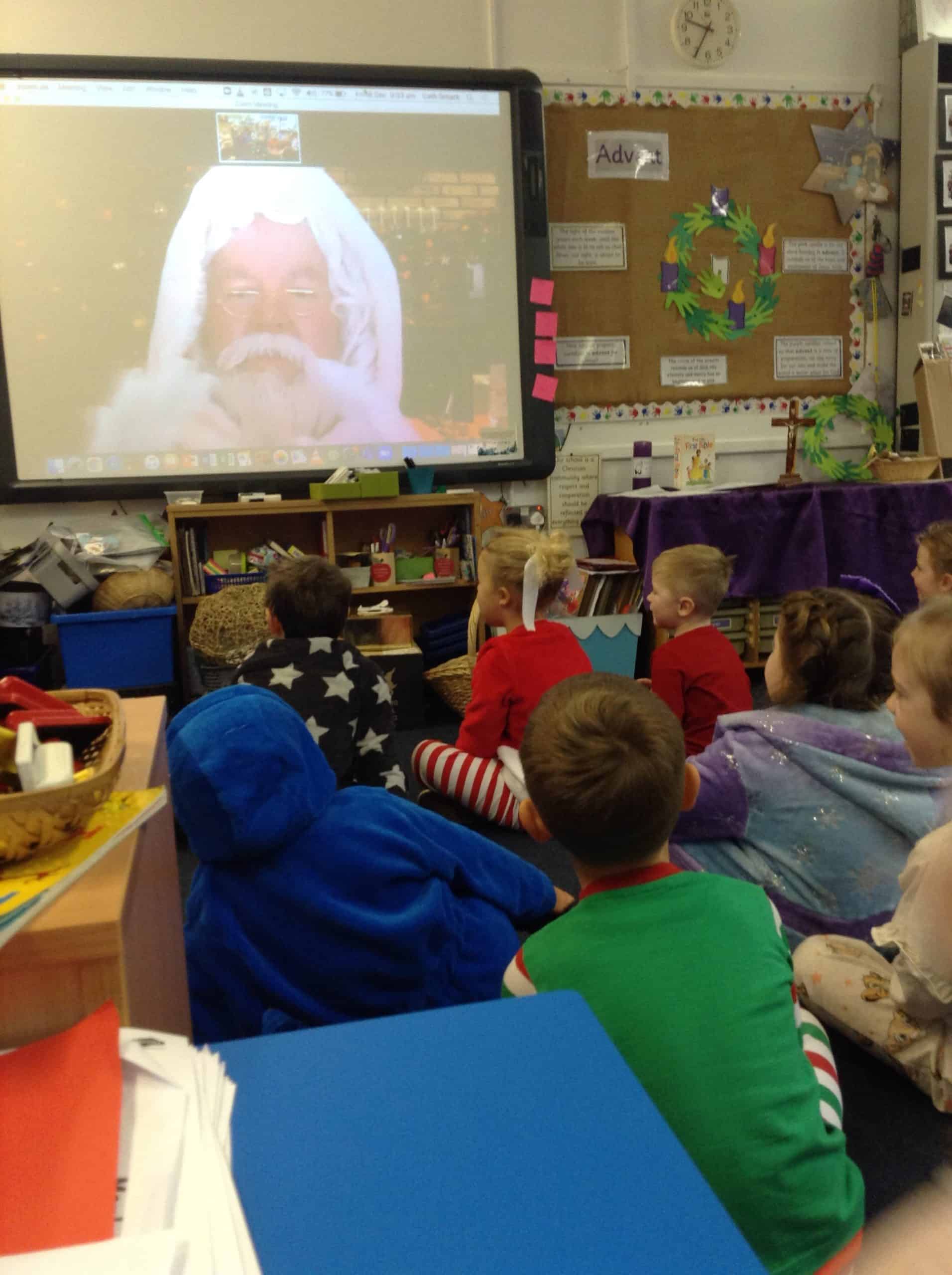 Reception Class have had lots of fun in their final week of their first term in Reception Class. Eating Christmas dinner, party day, swapping Christmas cards with our Year Six buddies at a safe distance and coming to school in our pyjamas. Wow! No wonder lots of the children were very tired by the end of today. Santa even made a surprise visit into class via Zoom.