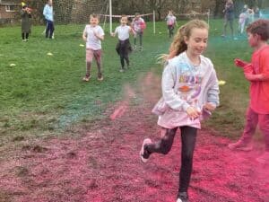 Year 3 had lots of fun in the colour run which was part of their, “Big Lent Walk”. Well done to everyone who took part and their grown ups who had to clean them up!
