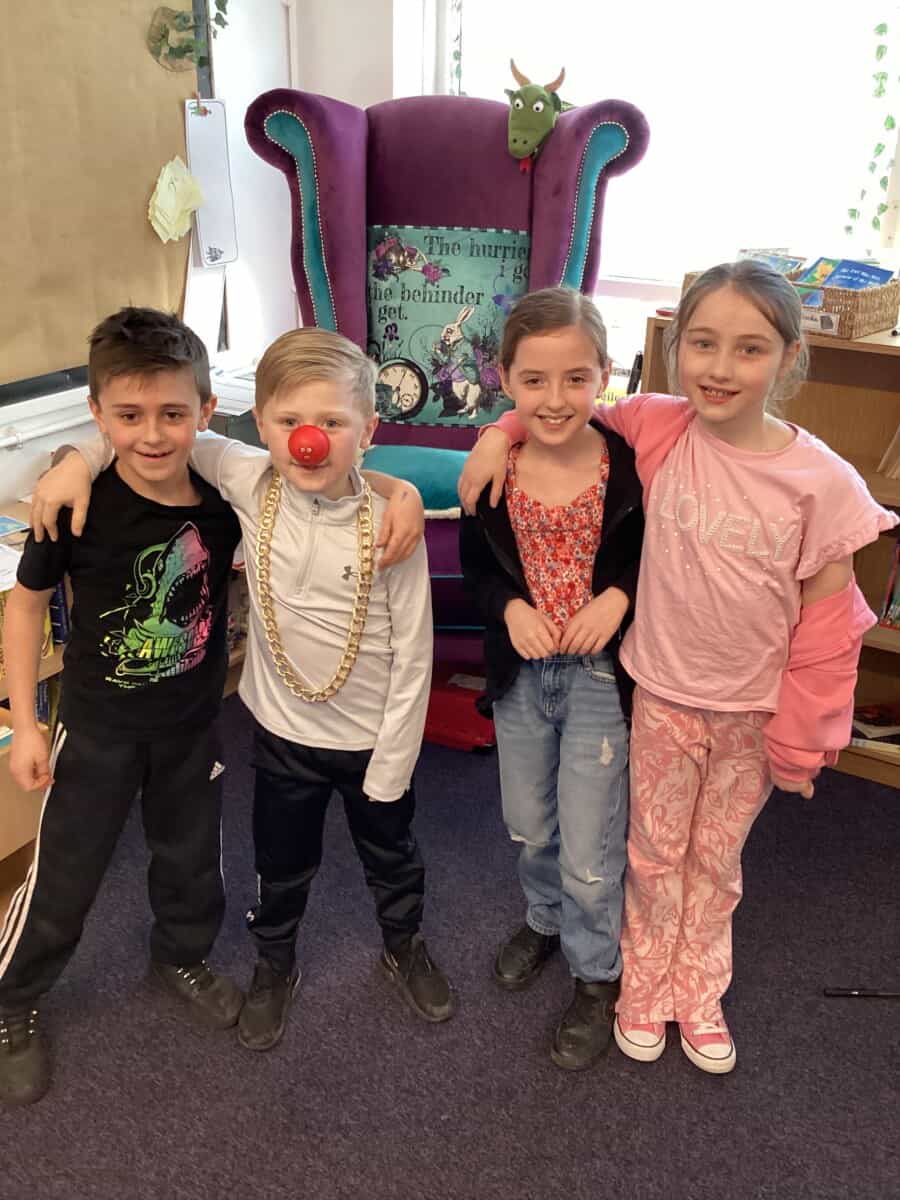 Y3 have enjoyed Comic Relief today by taking part in some fun activities. This morning, we discussed the importance of supporting our global neighbours and sharing what we have with people who are not as fortunate. We shared some jokes and made each other laugh while completing some funny challenges.