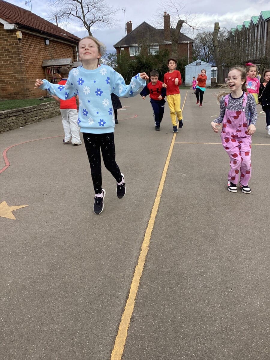 This afternoon, we completed our walk for Lent in a funny way, we jumped around the yard like a rabbits! We designed our own red nose and then enjoyed some funny dancing before the end of the day.