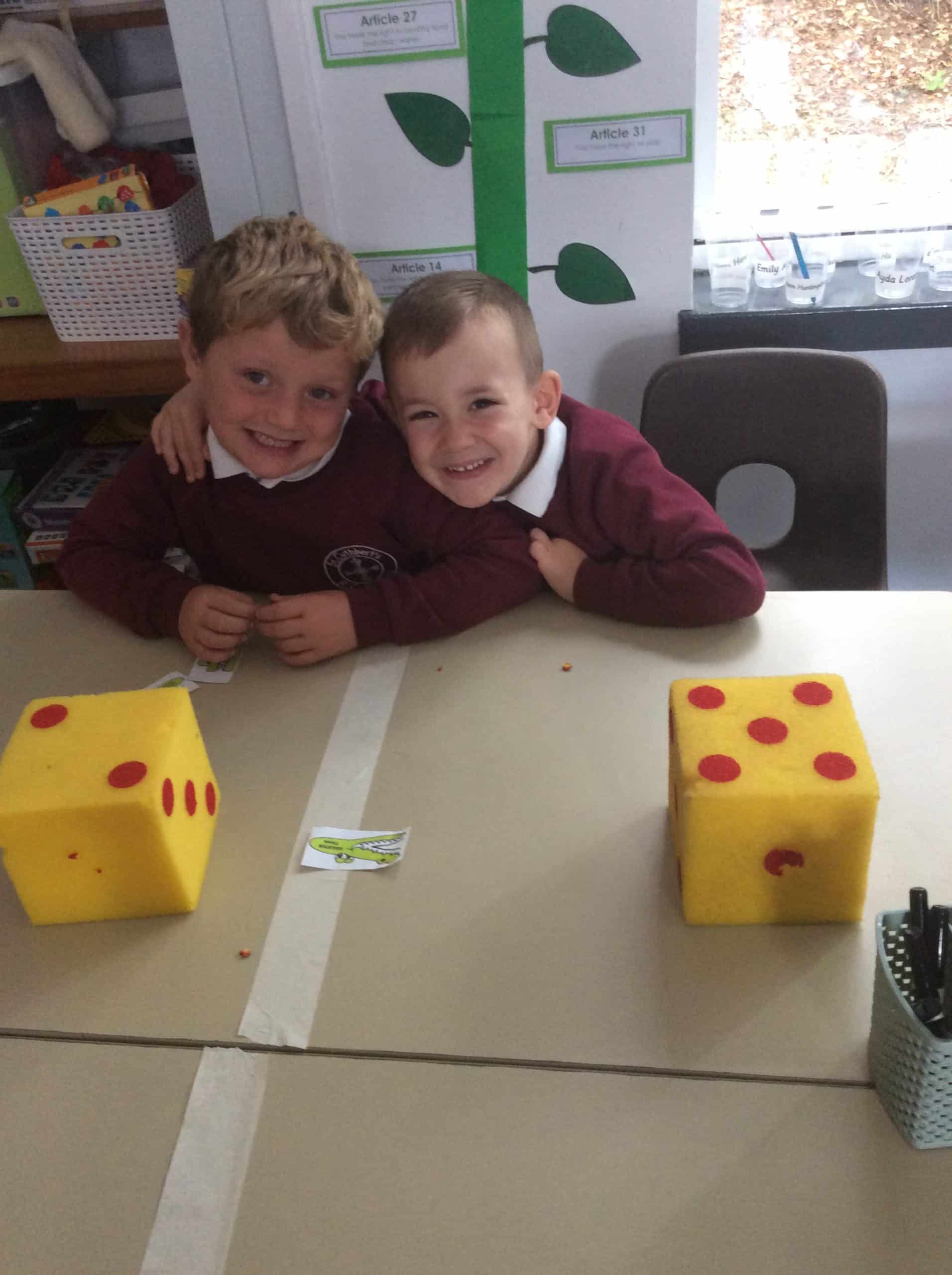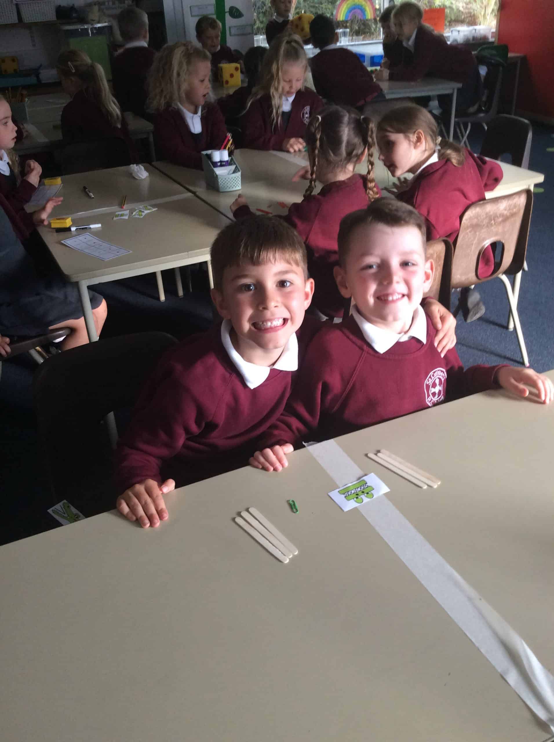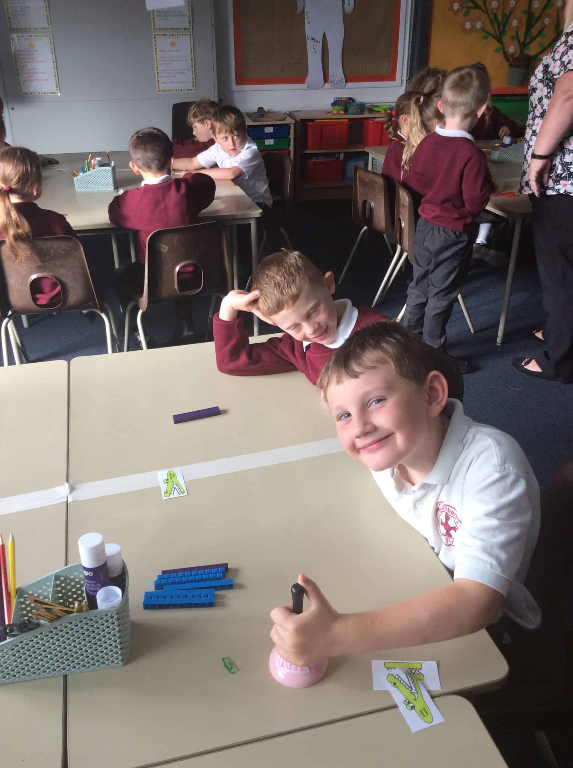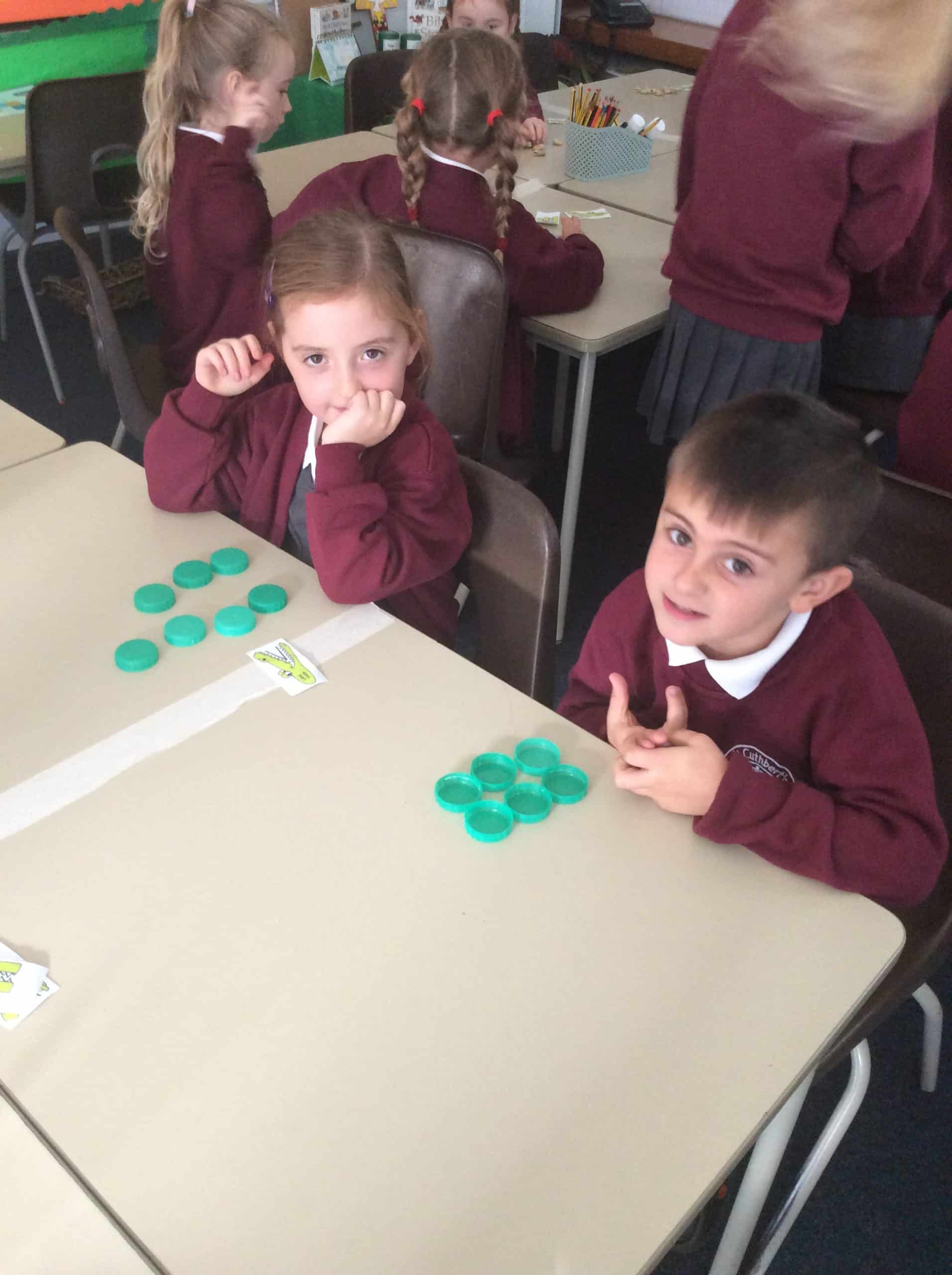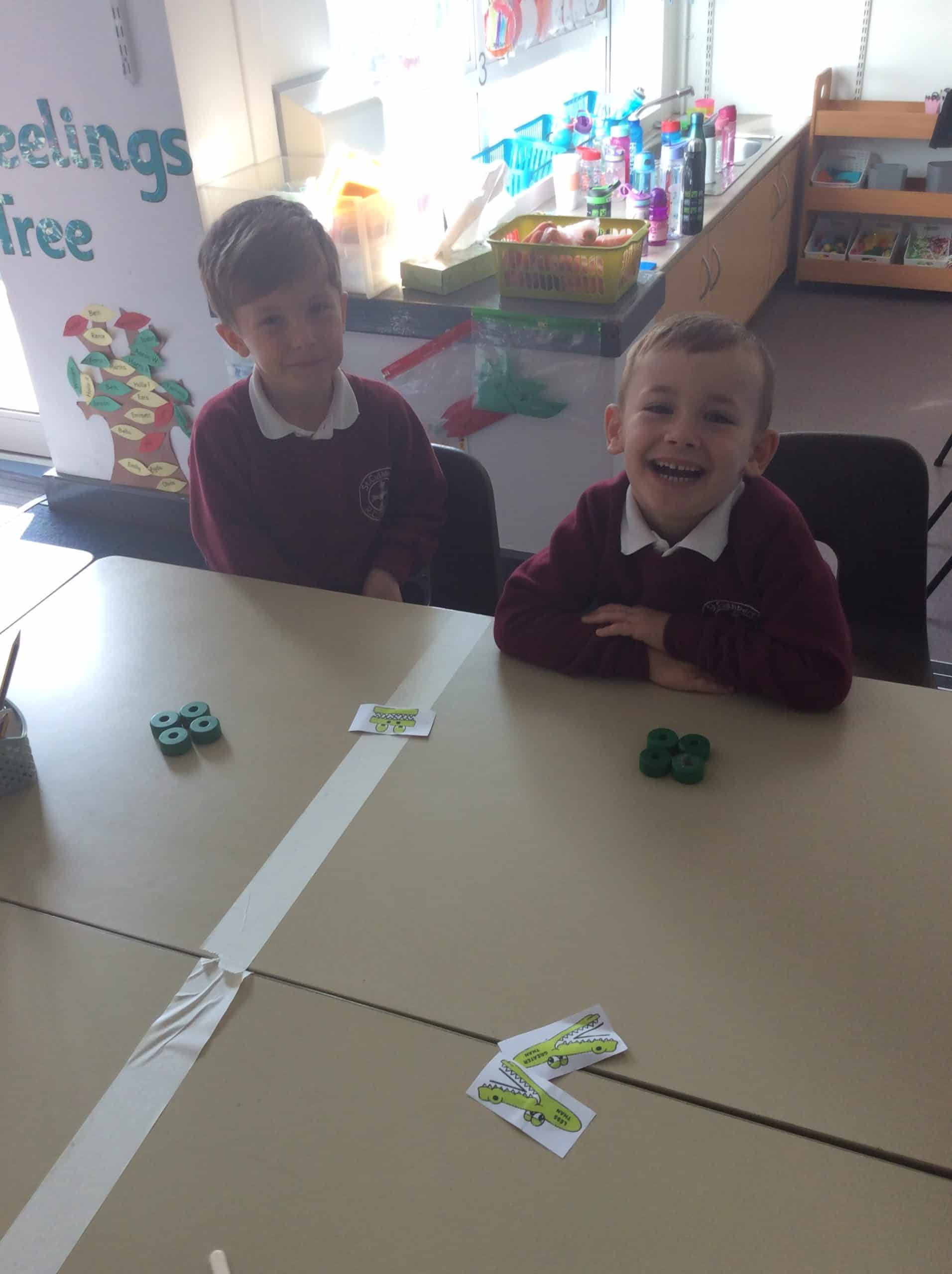 The children in Year 1 compared objects using the language greater than, less than and equal to and the symbols <,> and =. The Year 1 classroom had different objects on each table and the children had to make their way around each table and compare the objects.