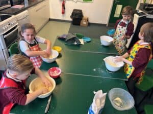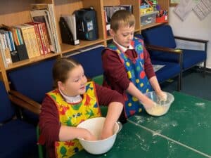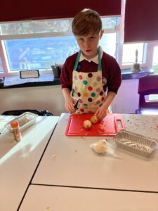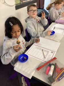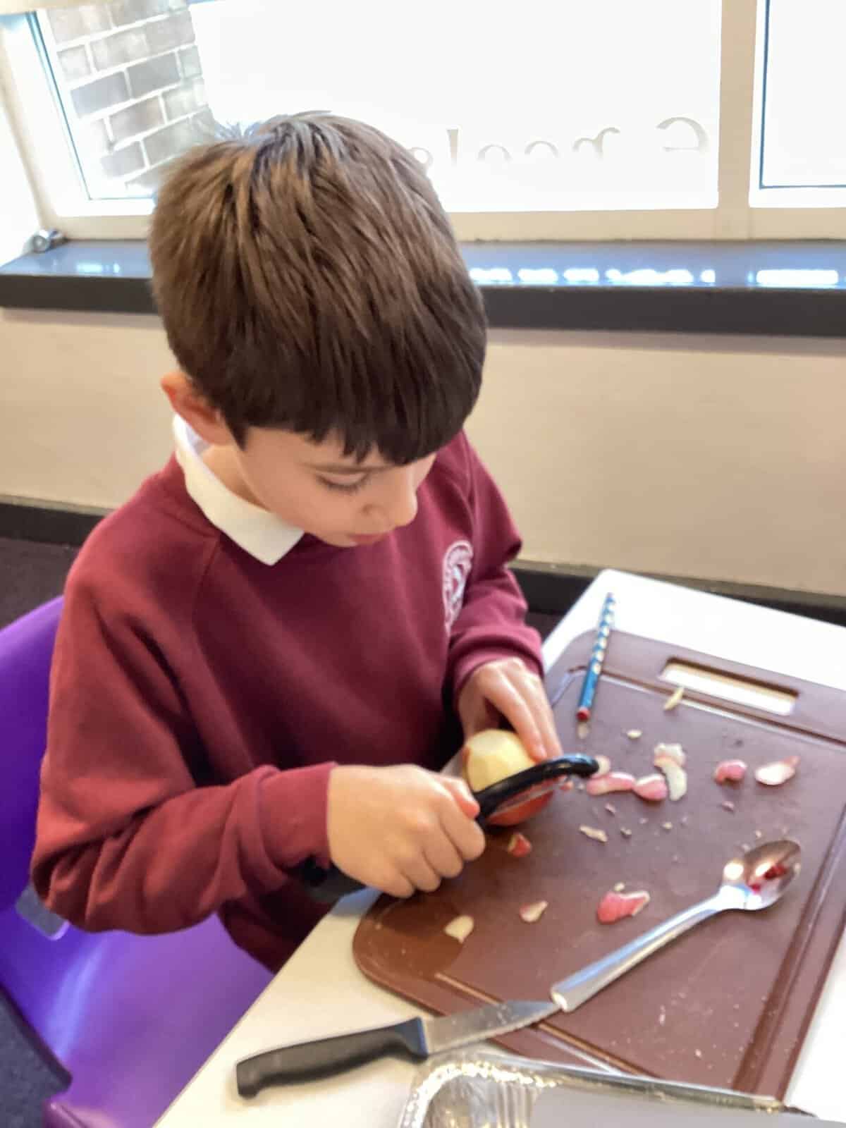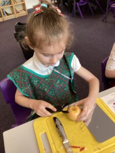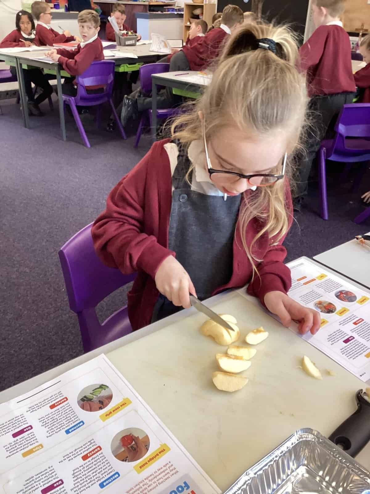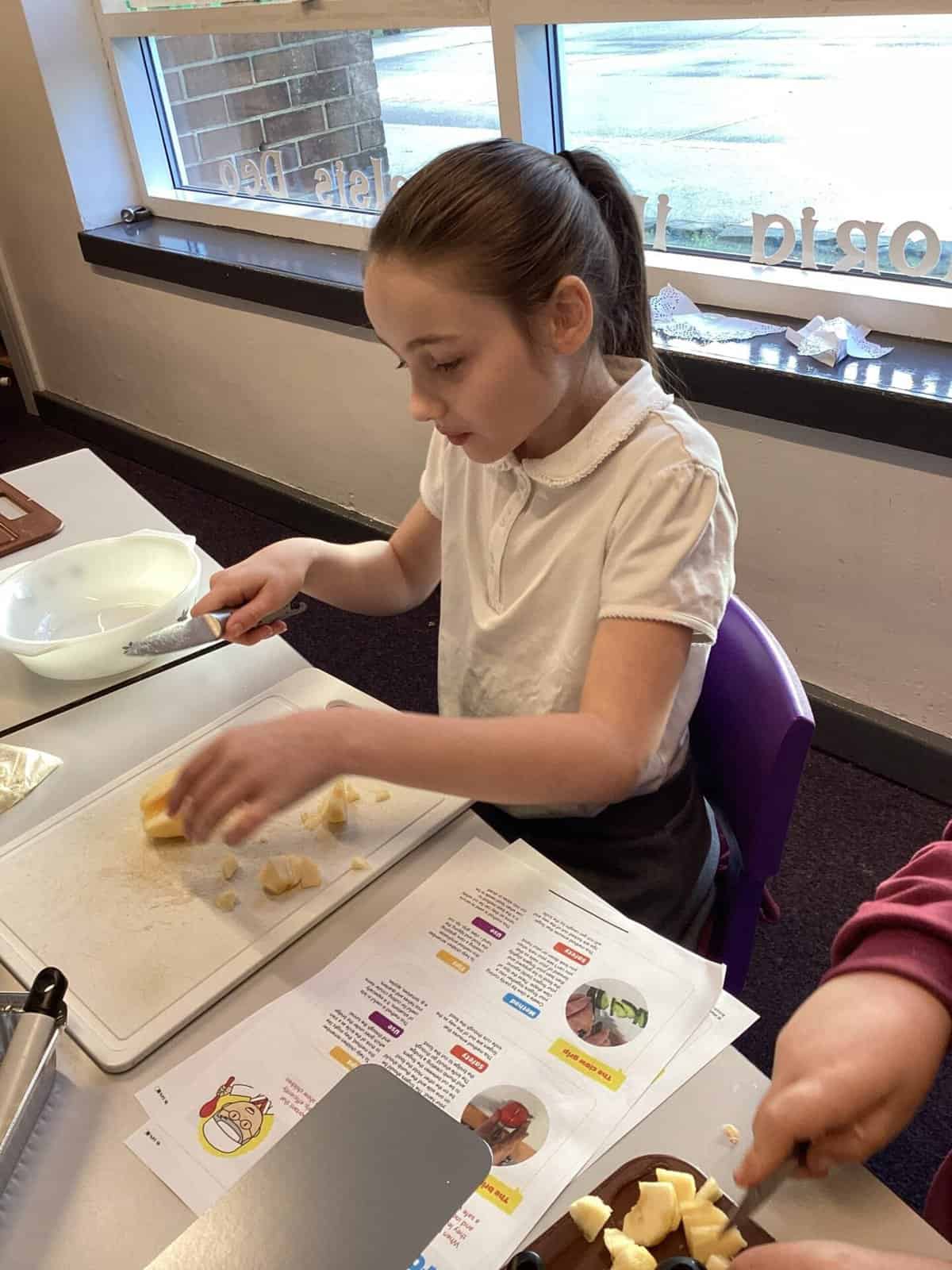 As part of our DT work we were set the task of making a fruit crumble. We started by tasting different seasonal fruits and spices. After deciding what flavour we wanted our crumble to be we set about making it. We learnt new skills like how to rub in butter and flour to make our crumble topping We also discovered how to chop and peel fruit safely. The best part was taking our crumble home to share with our families!