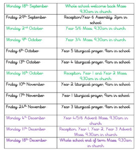 Please see the dates below for Masses and liturgical prayer for this term. Masses are in church and all liturgical prayer services are in school.