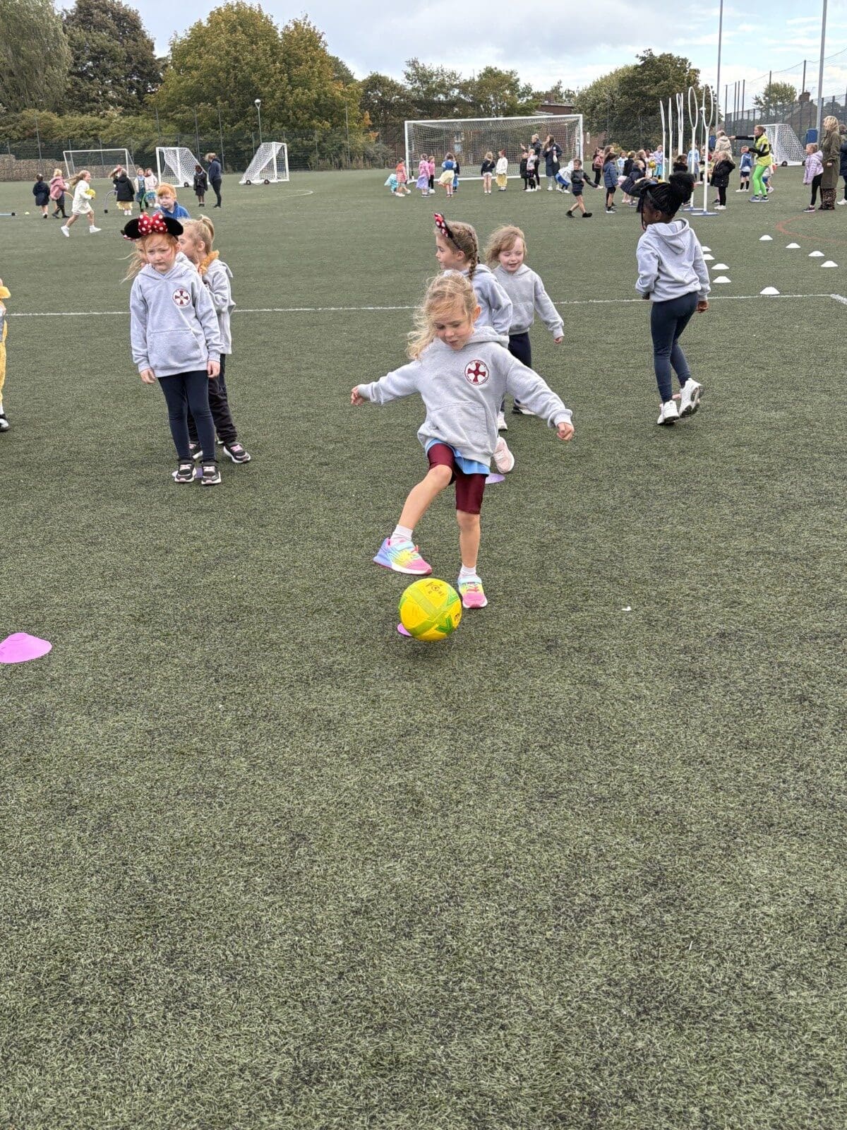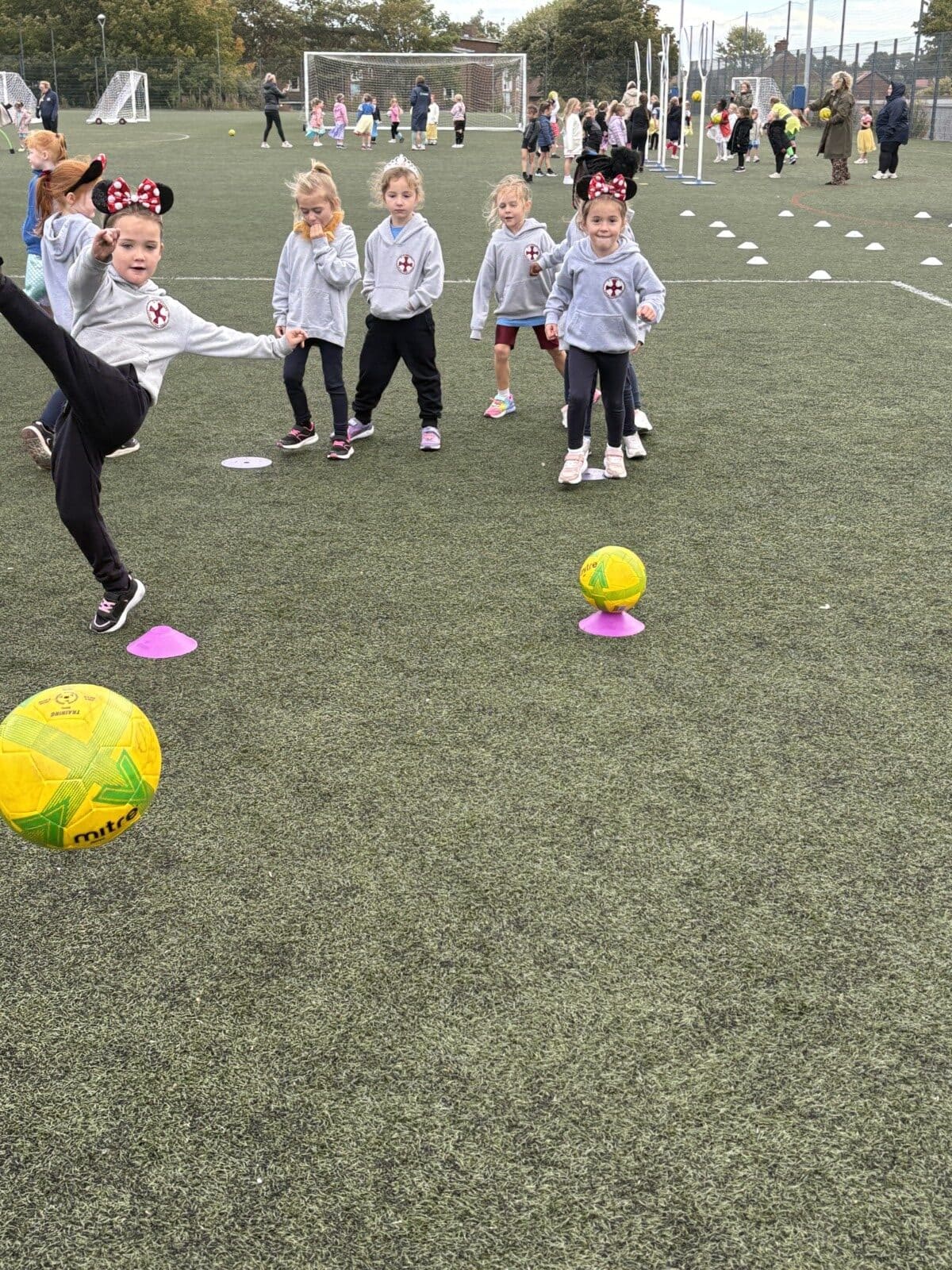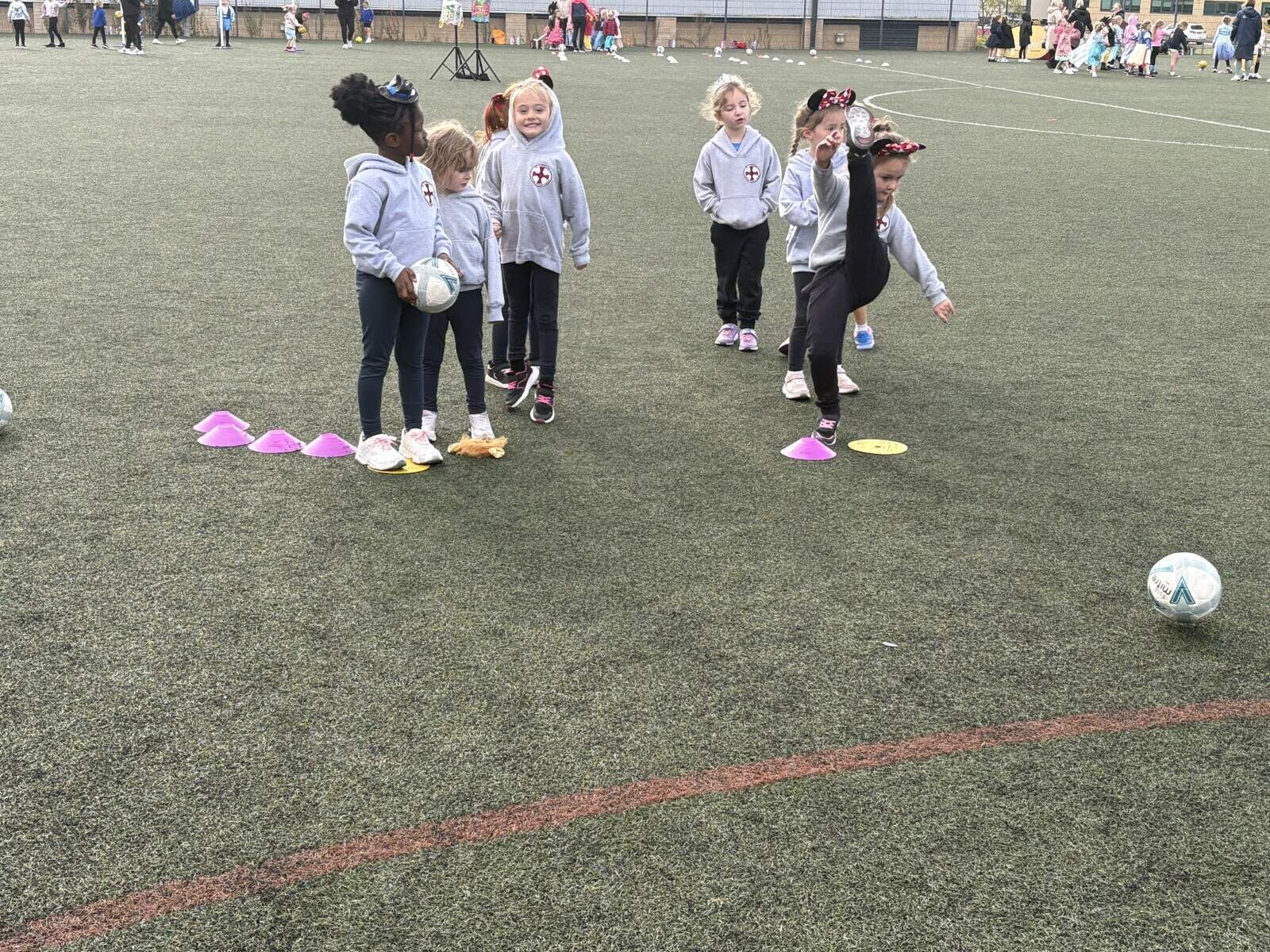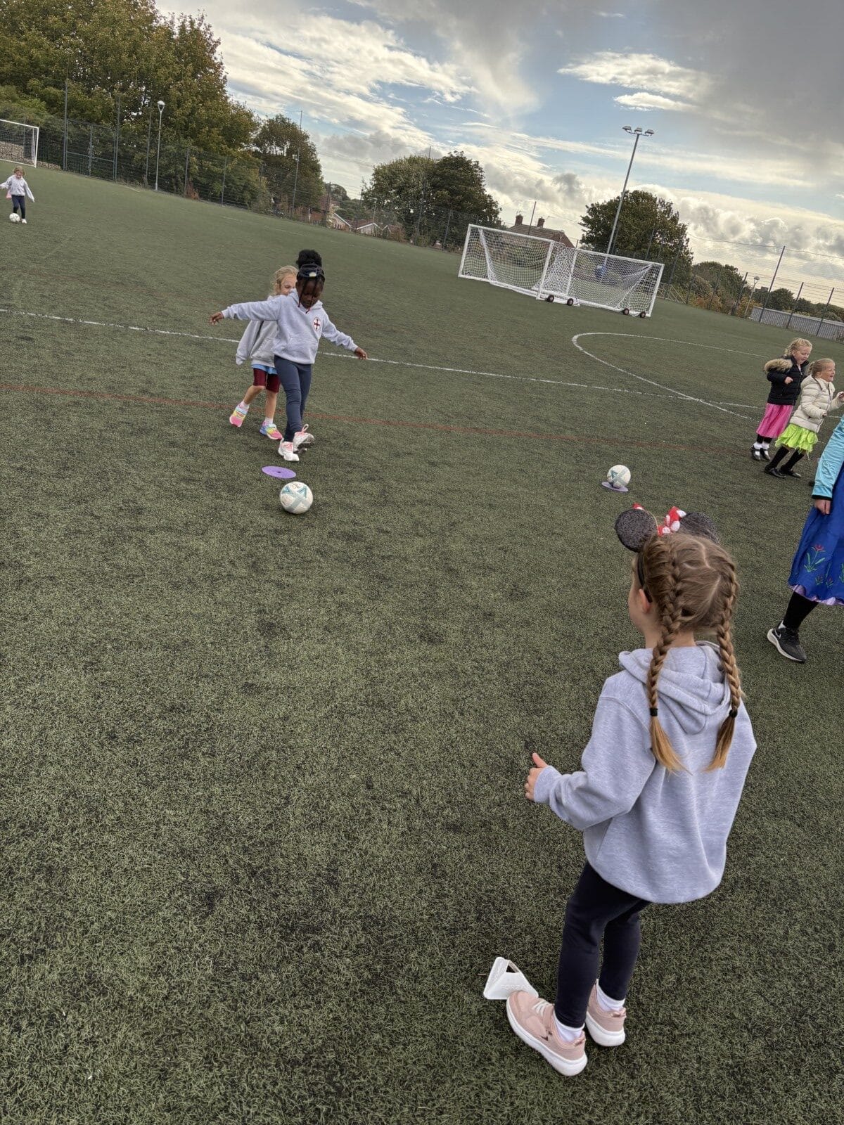 Some of our Year 1 girls had the chance to take part in a Disney Shooting Stars Event. They were learning football skills while dressed in Disney accessories and singing along to Disney songs.