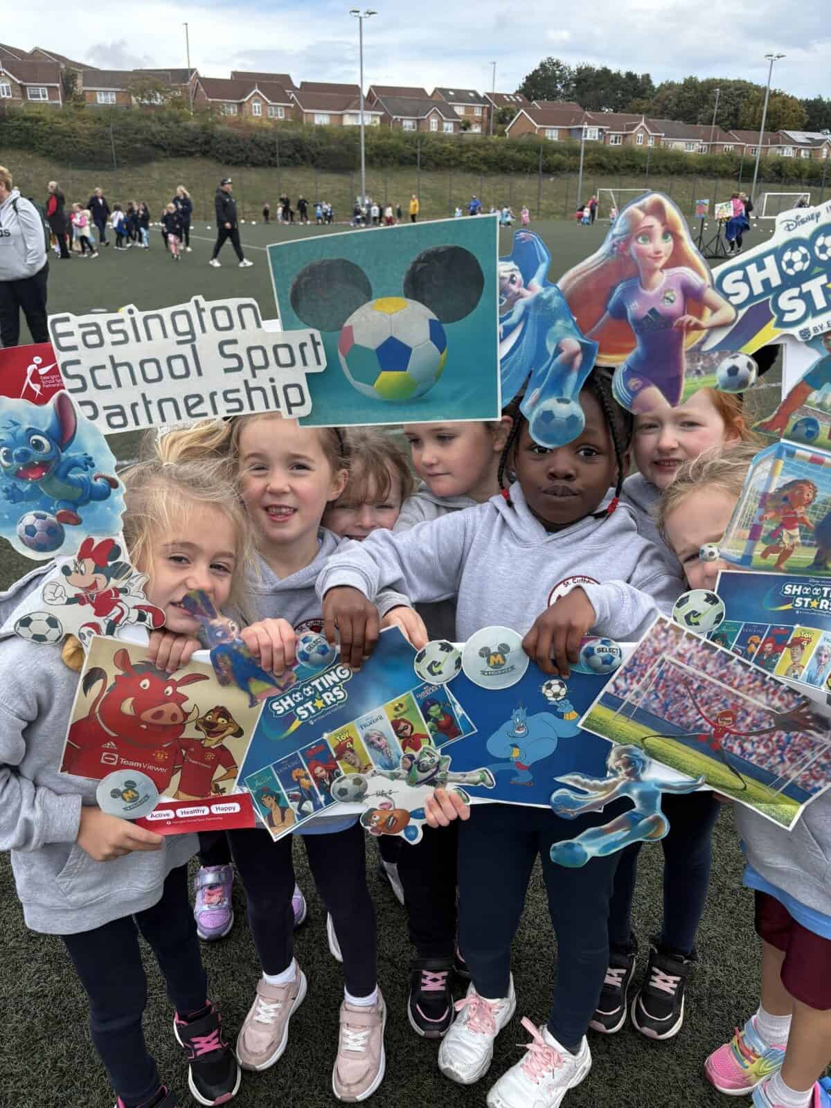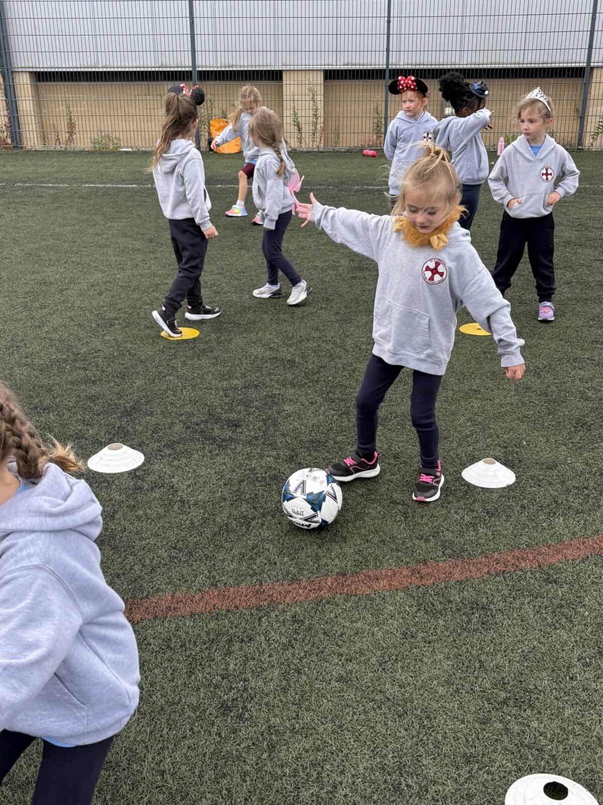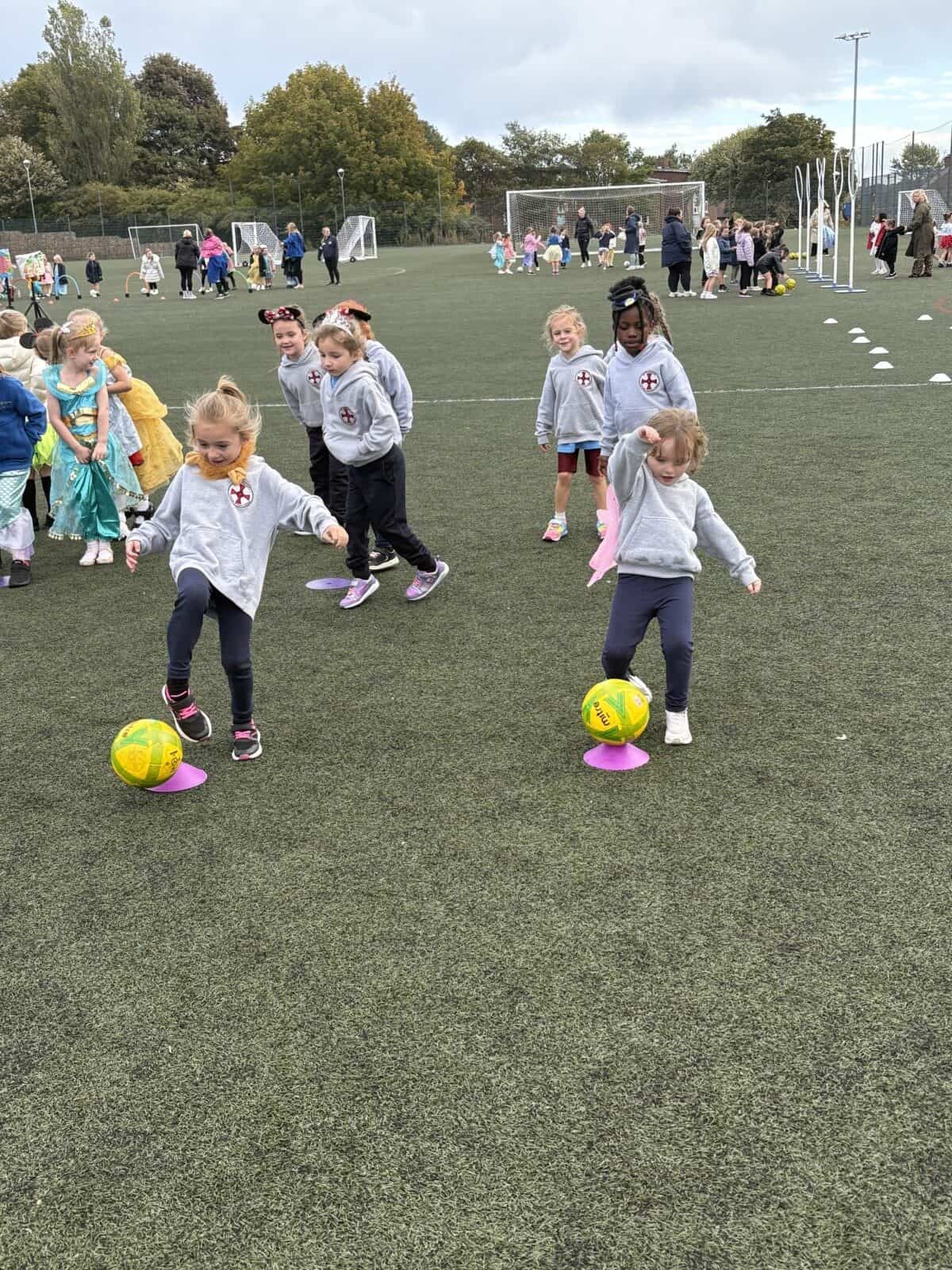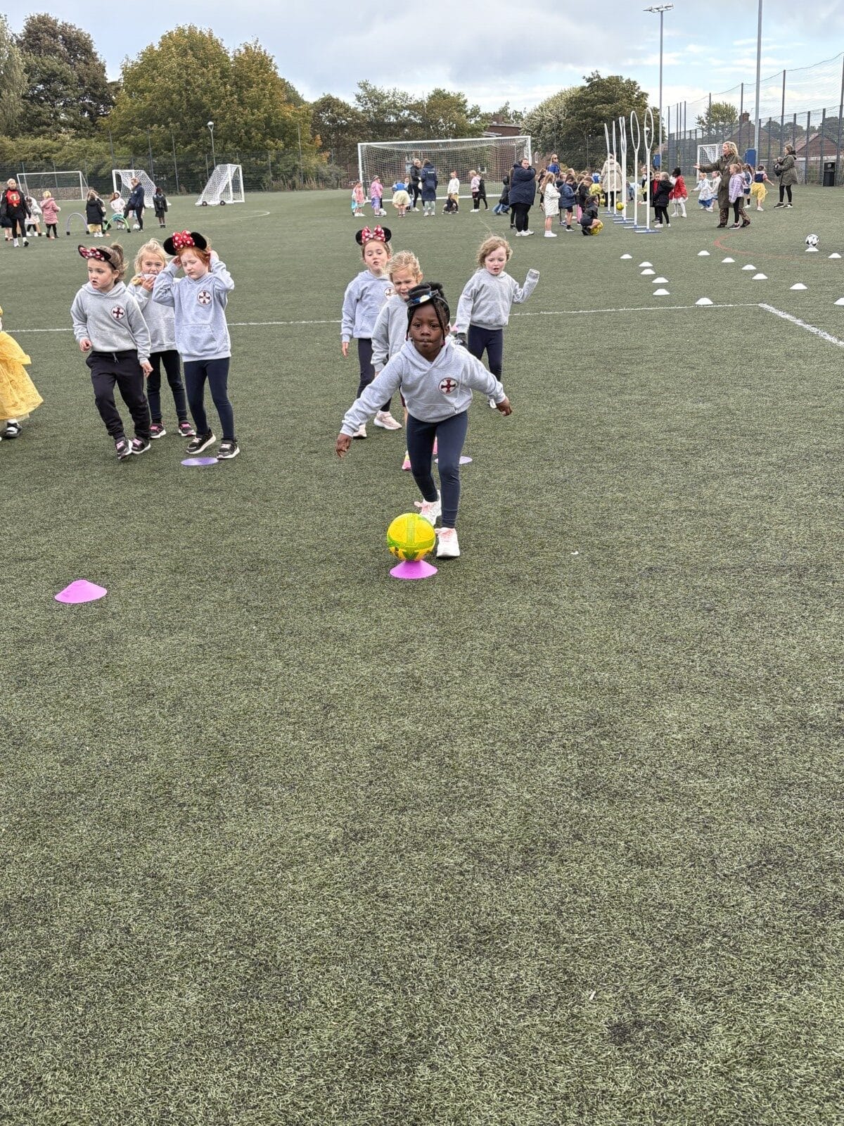 Some of our Year 1 girls had the chance to take part in a Disney Shooting Stars Event. They were learning football skills while dressed in Disney accessories and singing along to Disney songs.