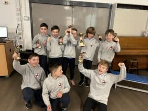 Our B Team played in the Turns Family Cup Final last week. After winning their group stage, they were up against a very strong side from St. Mary Magdalene Primary School. They played well but were runners up. They all received a small trophy to keep and a large trophy to display in school. Well done boys!