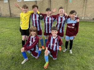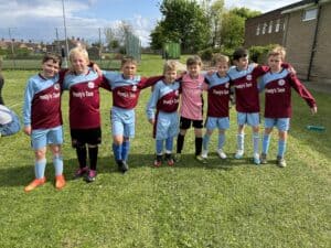 The A Team played next and it was a very exciting game. Some excellent skills were showcased. We scored early in the first half and the goals came thick and fast after that. By half time, the score was 6-1 to us. We kept attacking and defending in the second half and did not disappoint. The game finished 8-1 to St. Cuthbert’s with goals coming from Isaac (3), Roman (2), Jude (2) and Finley. A huge well done to Isaac, Player of the Match, for scoring a hat trick and also to Perseus for stepping up to help. out.
