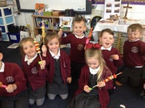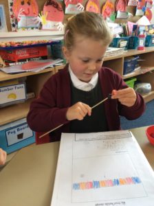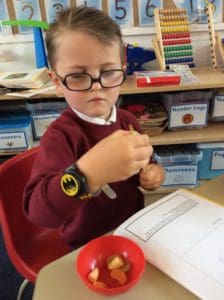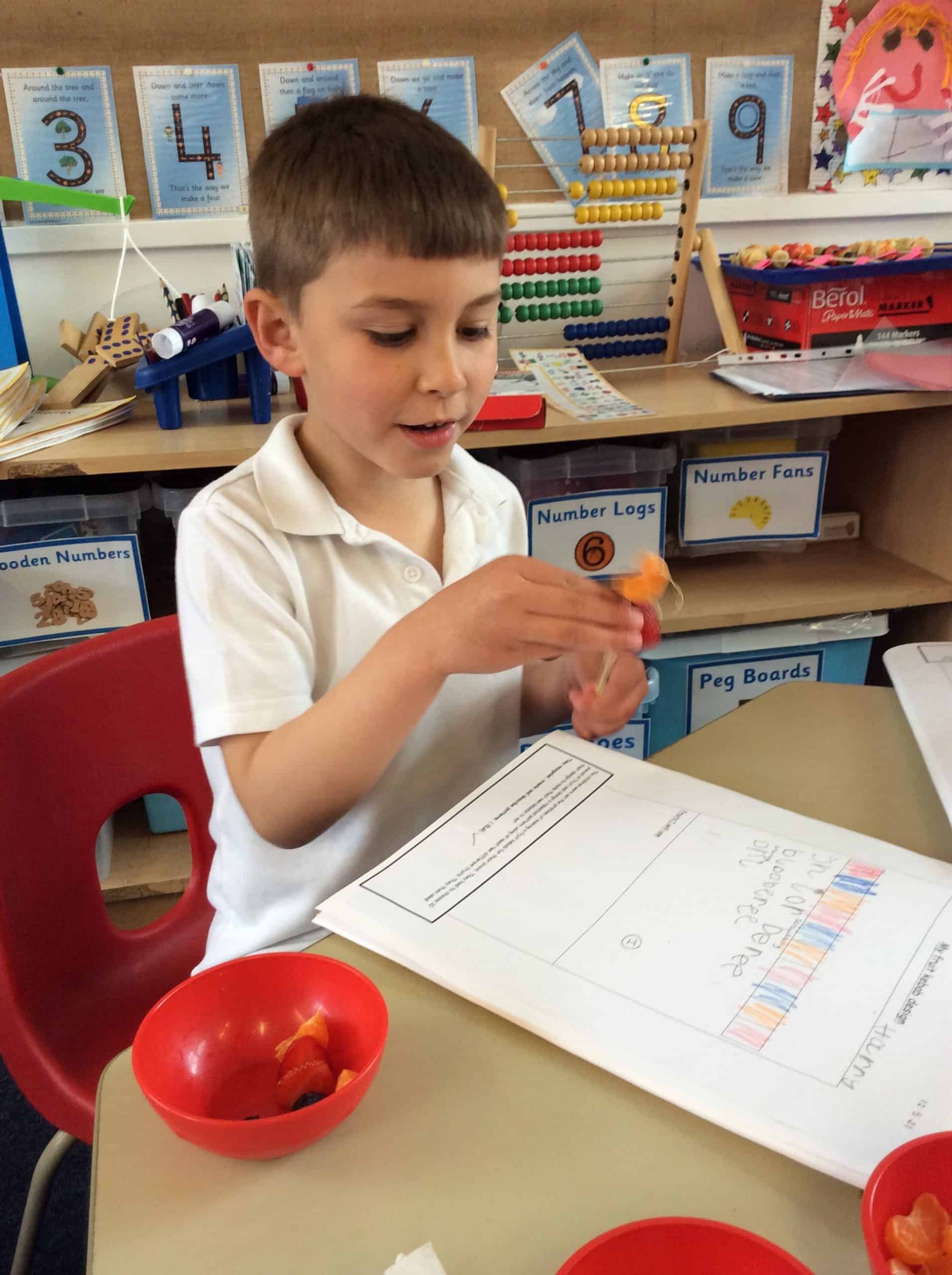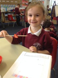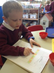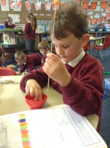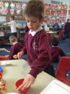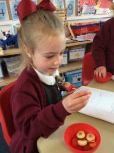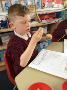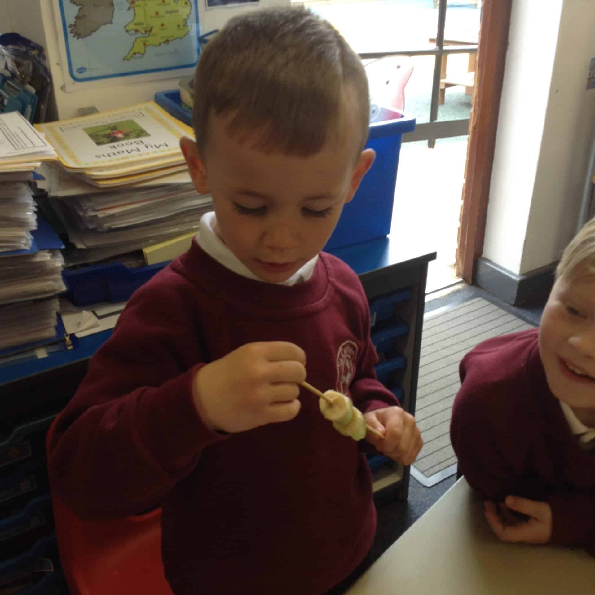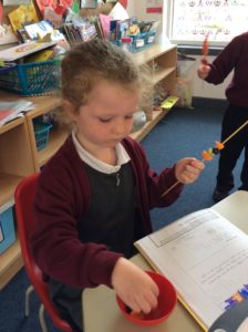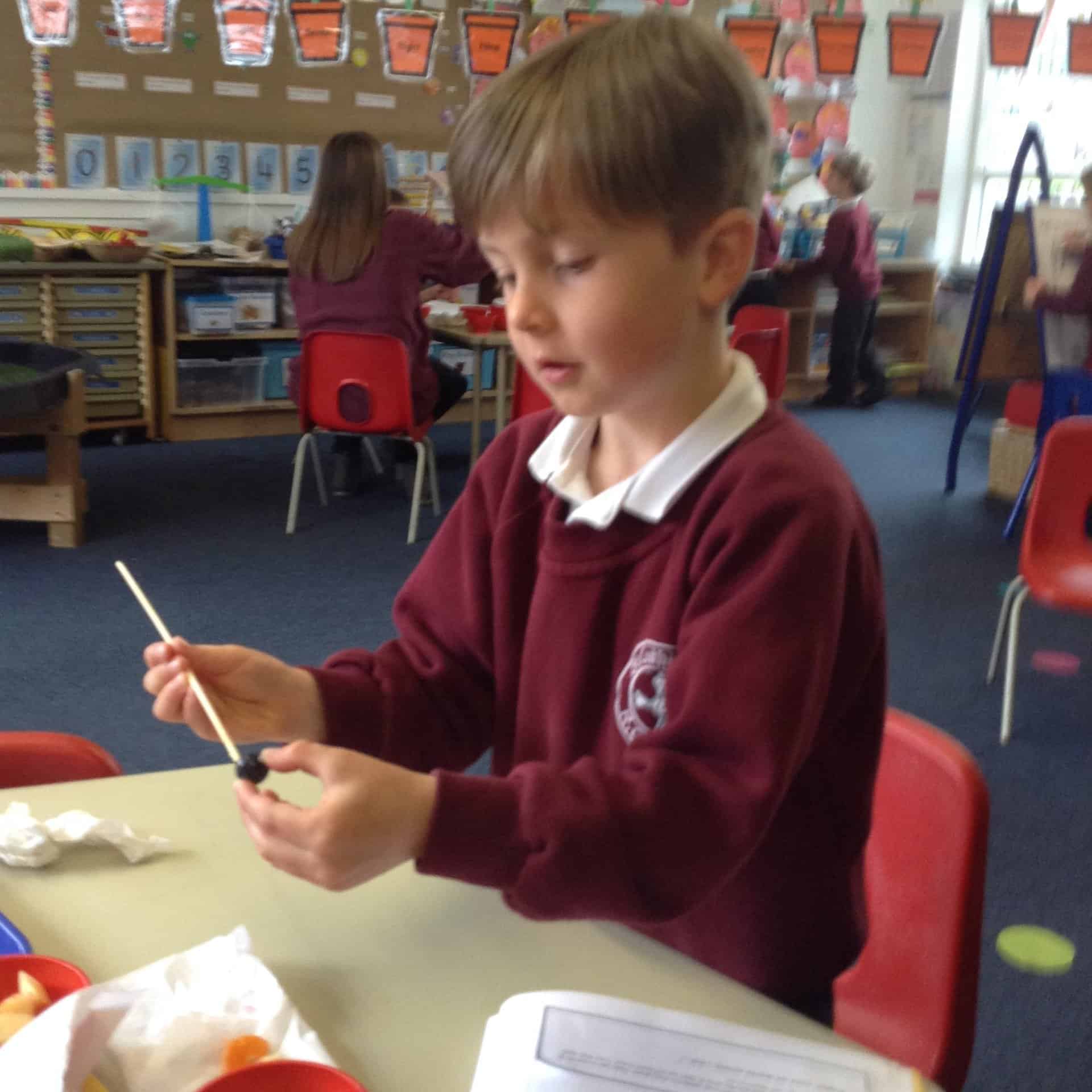 This week we read the book about Oliver’s Fruit Salad which was all about a little boy who thought he didn’t like fruit. Our challenge was to design our own fruit kebab. We could choose up to three fruits and the fruits had to be arranged in a repeated pattern. Once we created our design we had to follow the design to make our own kebabs. We found out that we also liked fruits just like the little boy Oliver.