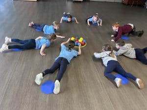 On Wednesday, Ks1 had their first fitness session with Miss Scarr and Miss Todd. They started off warming up to Danny Go before a game of duck, duck goose. After, they played human hungry hippos, sliding on their tummy to catch as many balls as possible. To finish, they played team games, scoring as many points as possible to be the champions of the night! They ran their socks off and the night finished on a tie – all were champions!