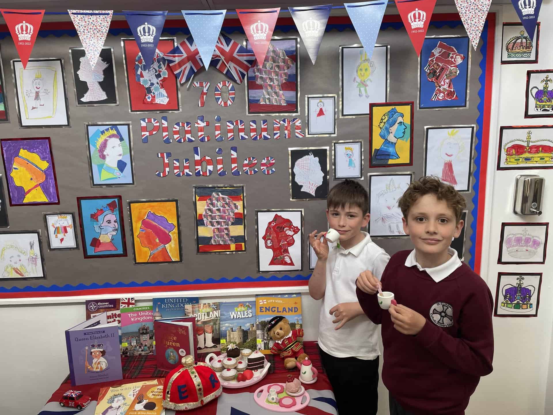 We have been getting ourselves ready for our Jubilee celebrations after half term with some art to make our new entrance feel patriotic and party-ready! Thank you to all our classes for your beautiful portraits and drawings.