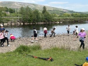 We have had a lovely day today. We enjoyed skipping stones in the river, watching the lambs in the fields and walking over a very wobbly bridge.