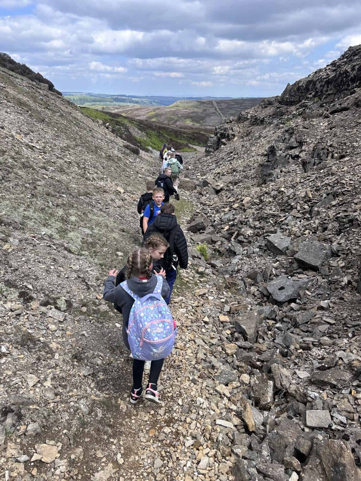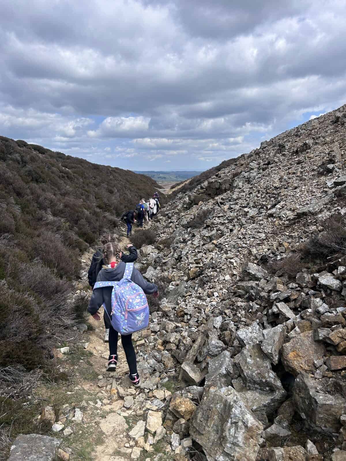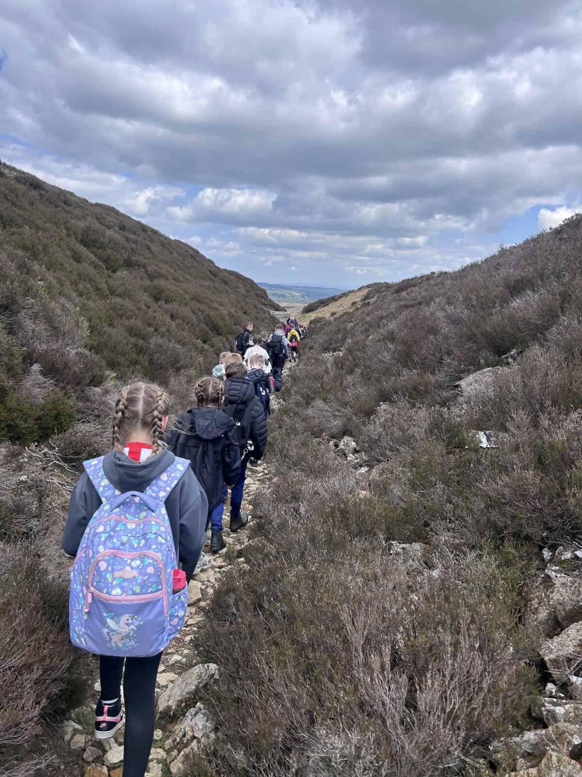 Today, the children headed out onto the moors to follow the lead mining trail of Grinton. They learnt what is was like to be a lead miner and started digging to find their own Galena. From the top, the views were amazing and by the end we were lucky enough to finish our walk in the sunshine.