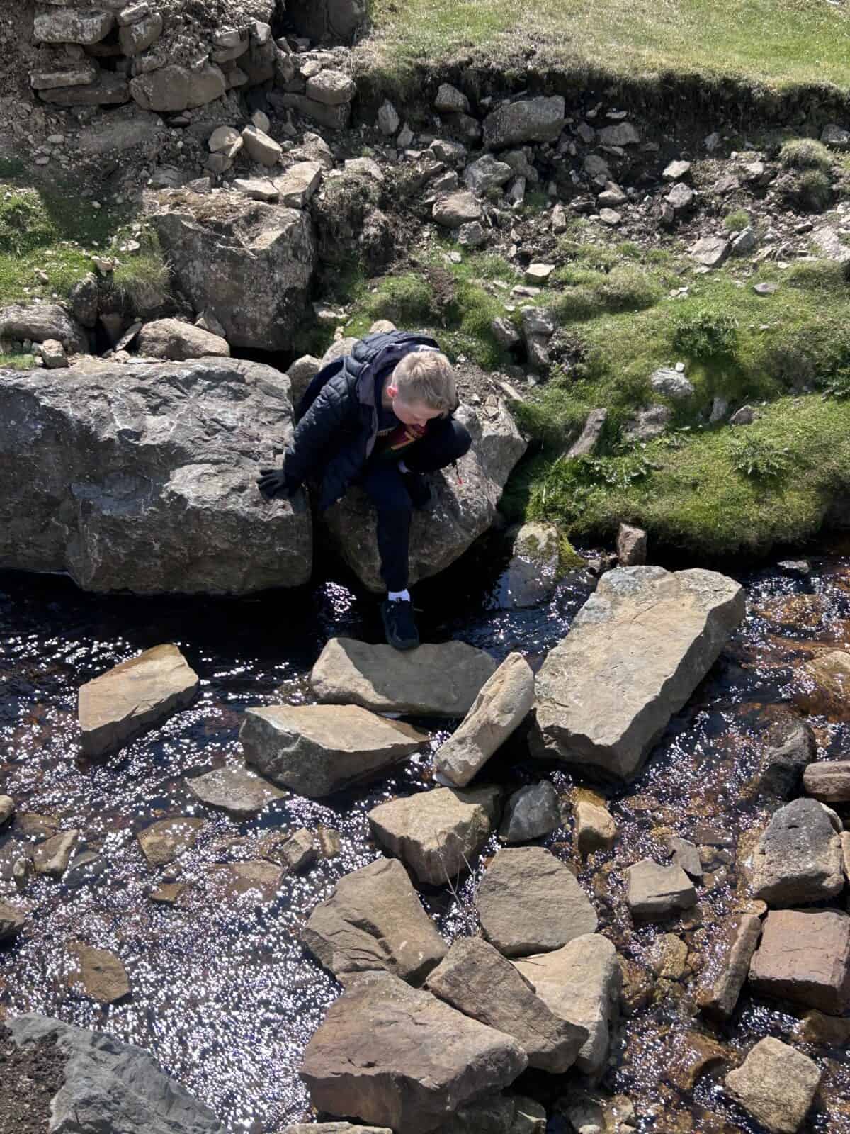 Along the way, the children made and raced their own boats down the stream before walking up the smelt mine chimney.