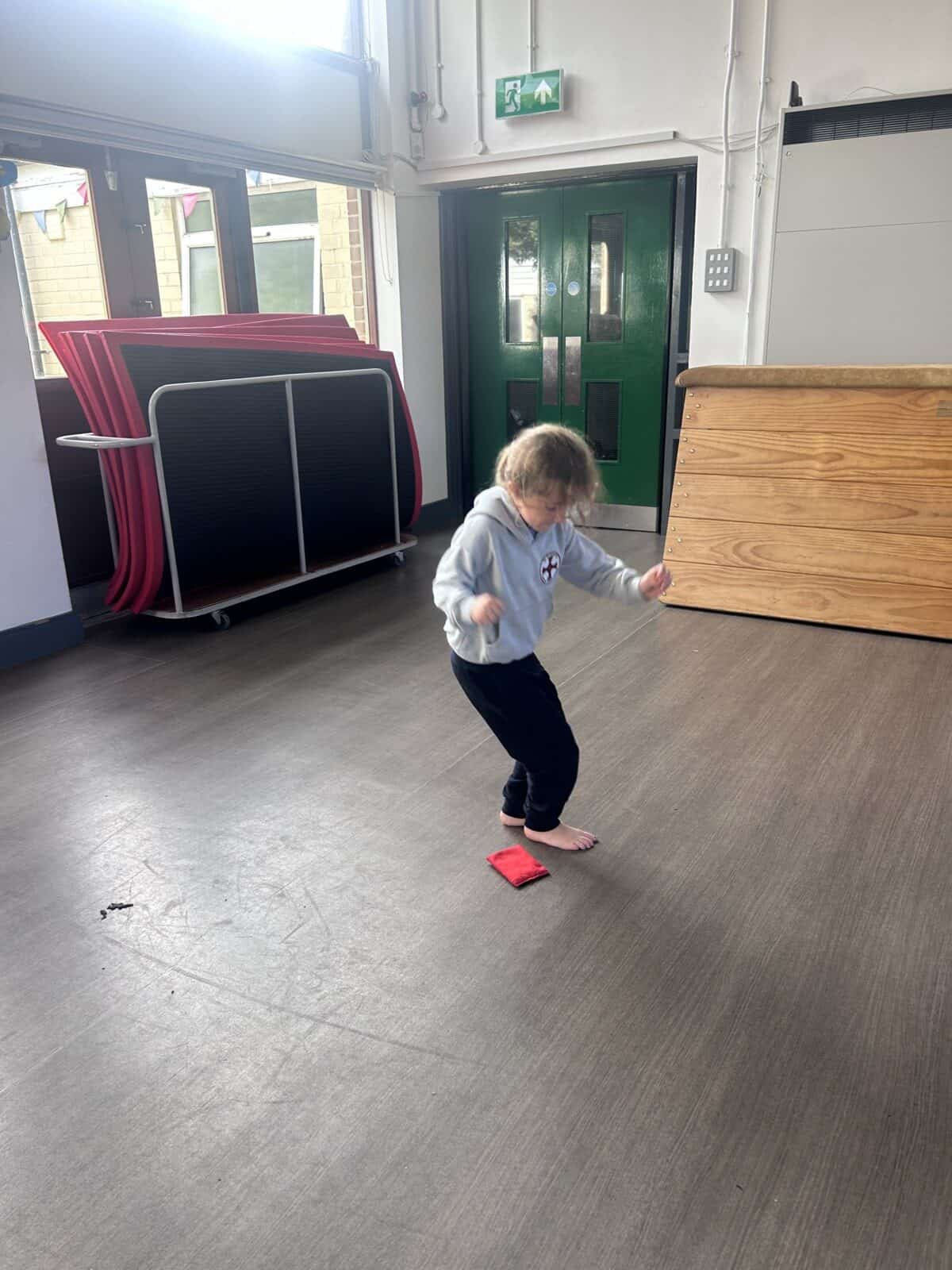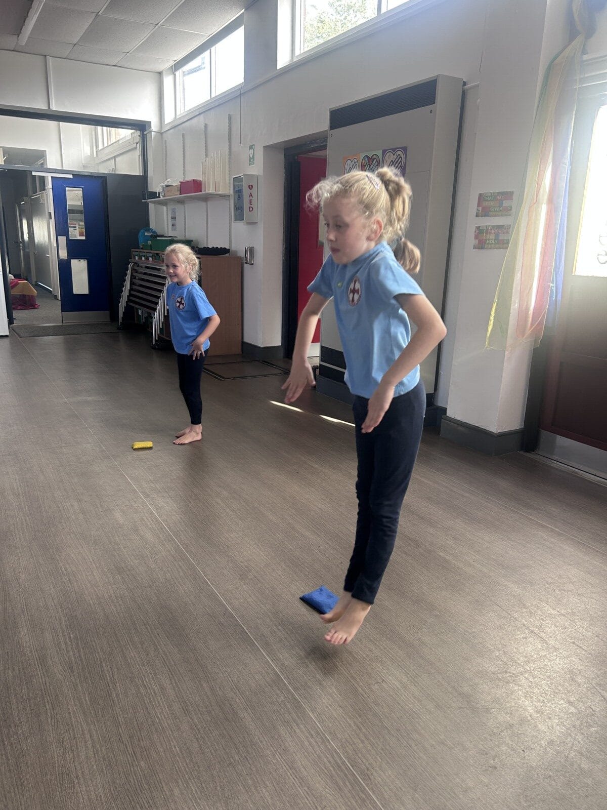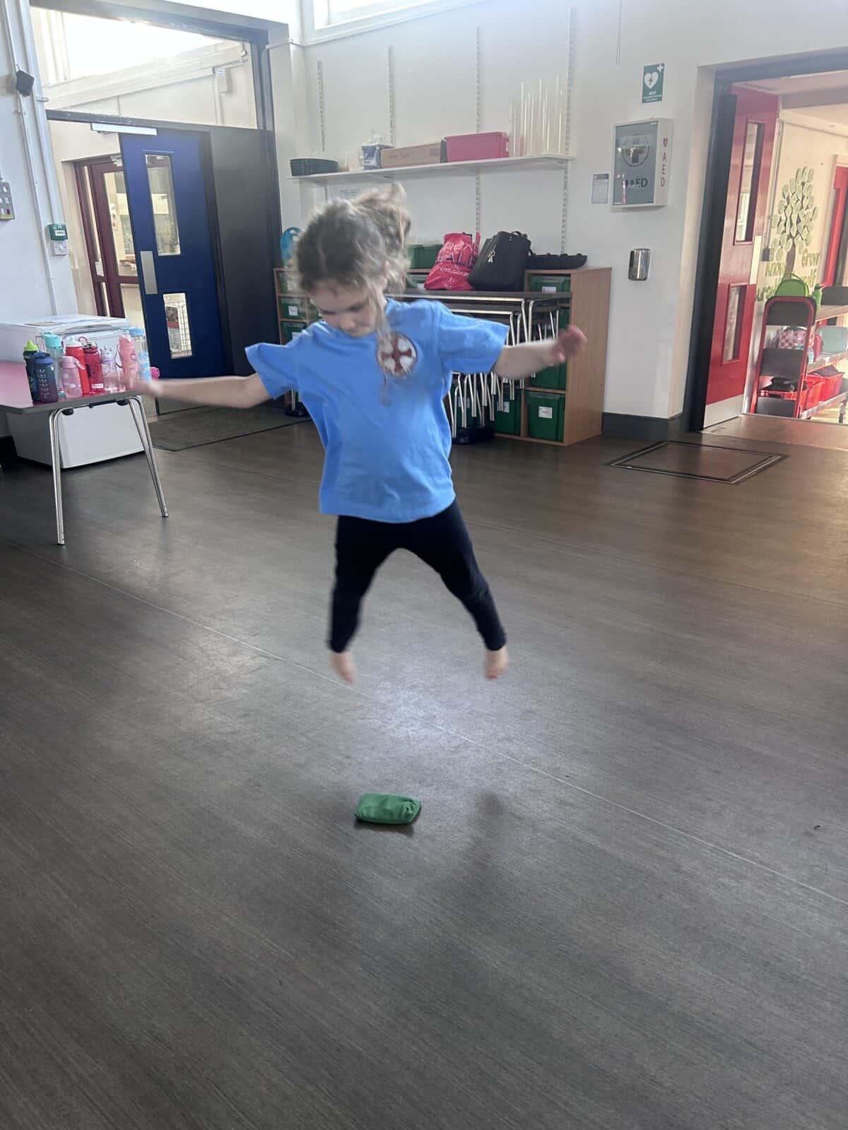 Yesterday, the children in gymnastics club furthered their knowledge of shapes to create some wonderful jumps. They started by testing how well they could balance a bean bag on different parts of their body whilst moving around the hall. They did a great job!