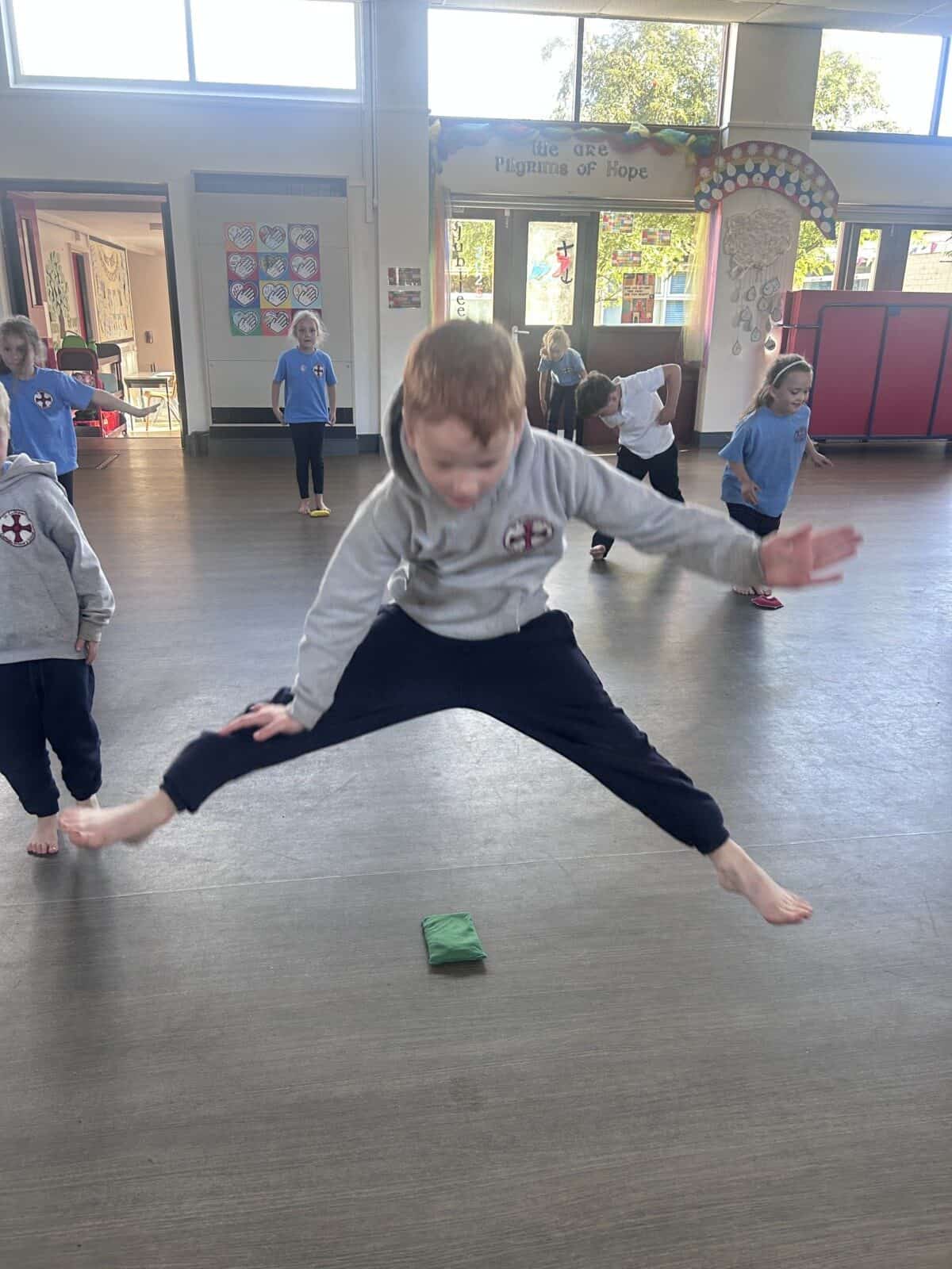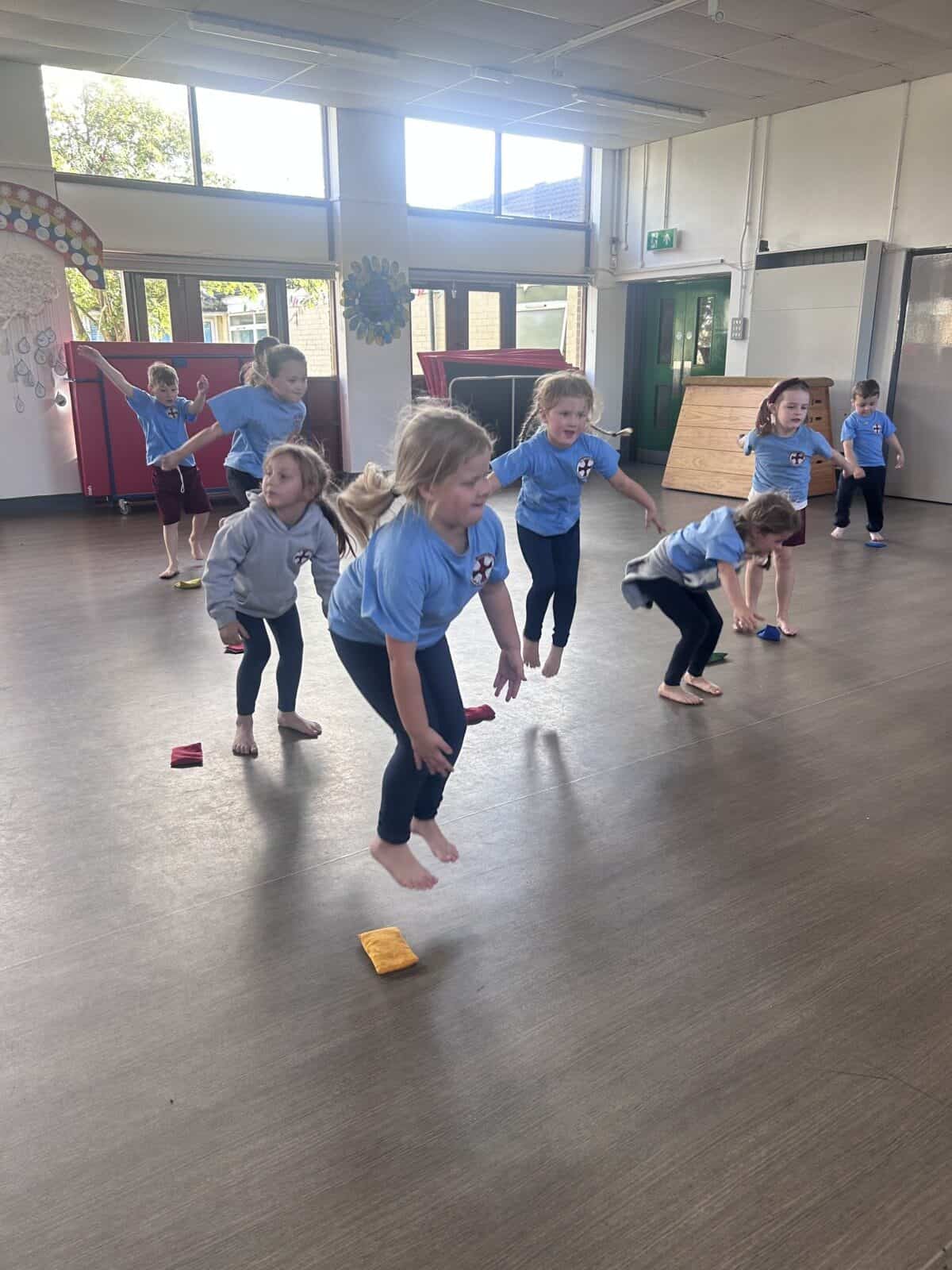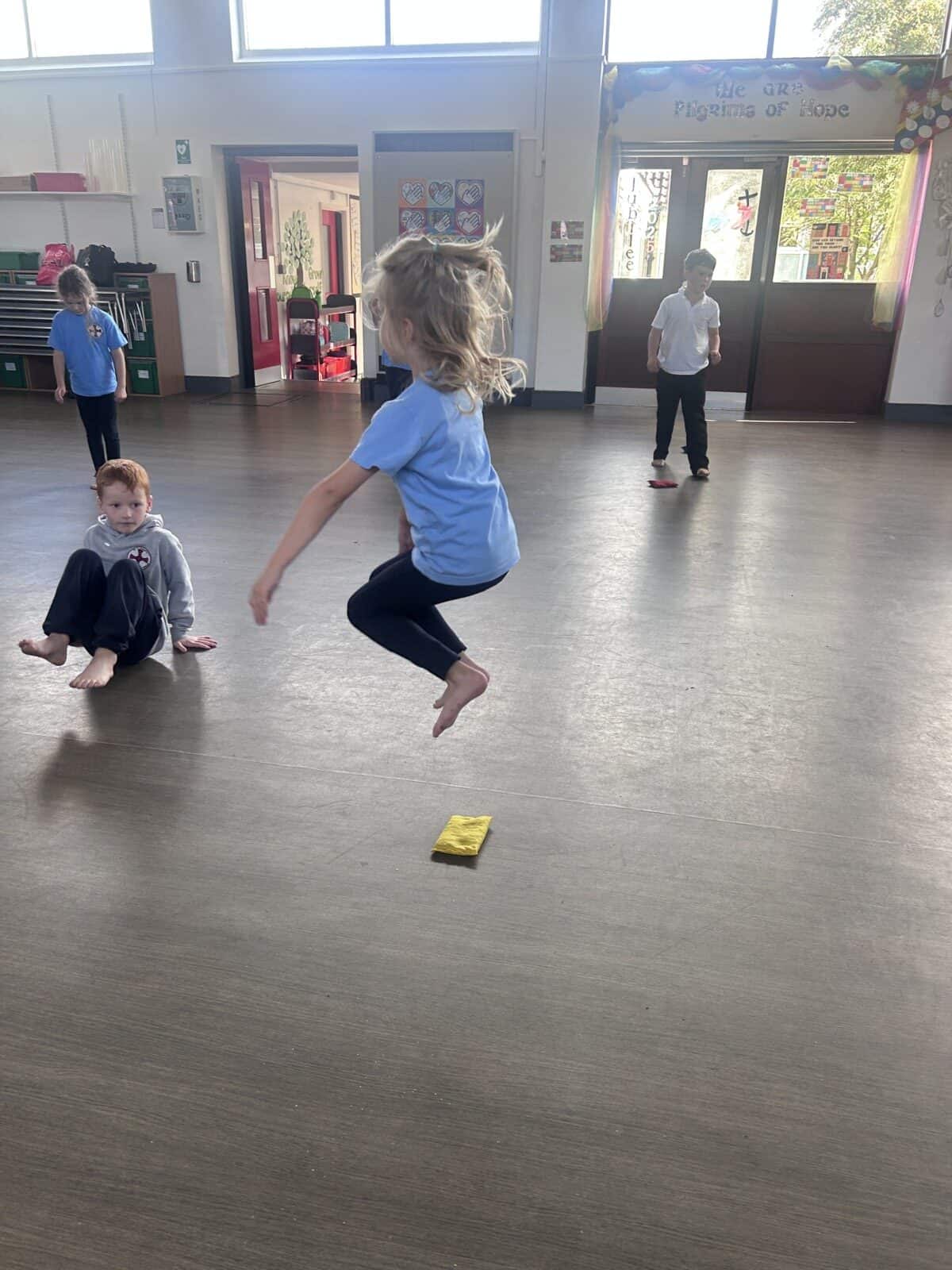 Yesterday, the children in gymnastics club furthered their knowledge of shapes to create some wonderful jumps. They started by testing how well they could balance a bean bag on different parts of their body whilst moving around the hall. They did a great job!