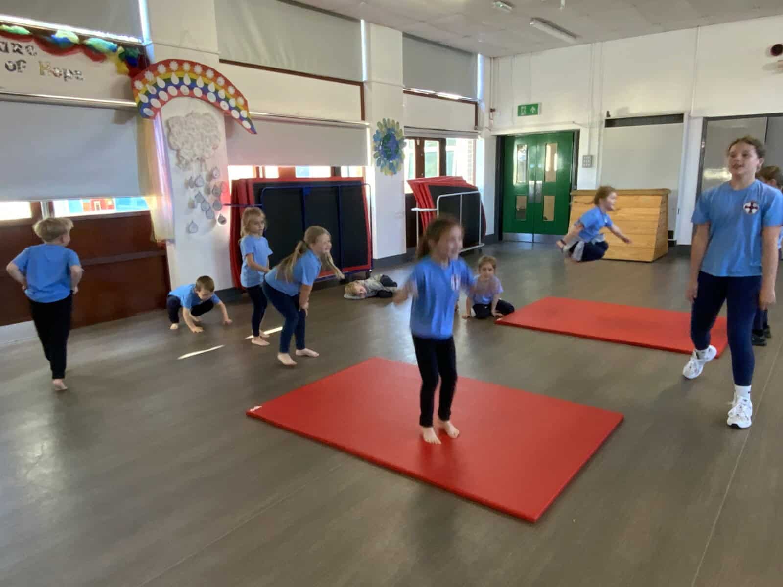 This week in gymnastics club, the children worked hard practising different rolls on the mats. They started with rock and rolls followed by pencil rolls, eggs rolls and teddy bear rolls.