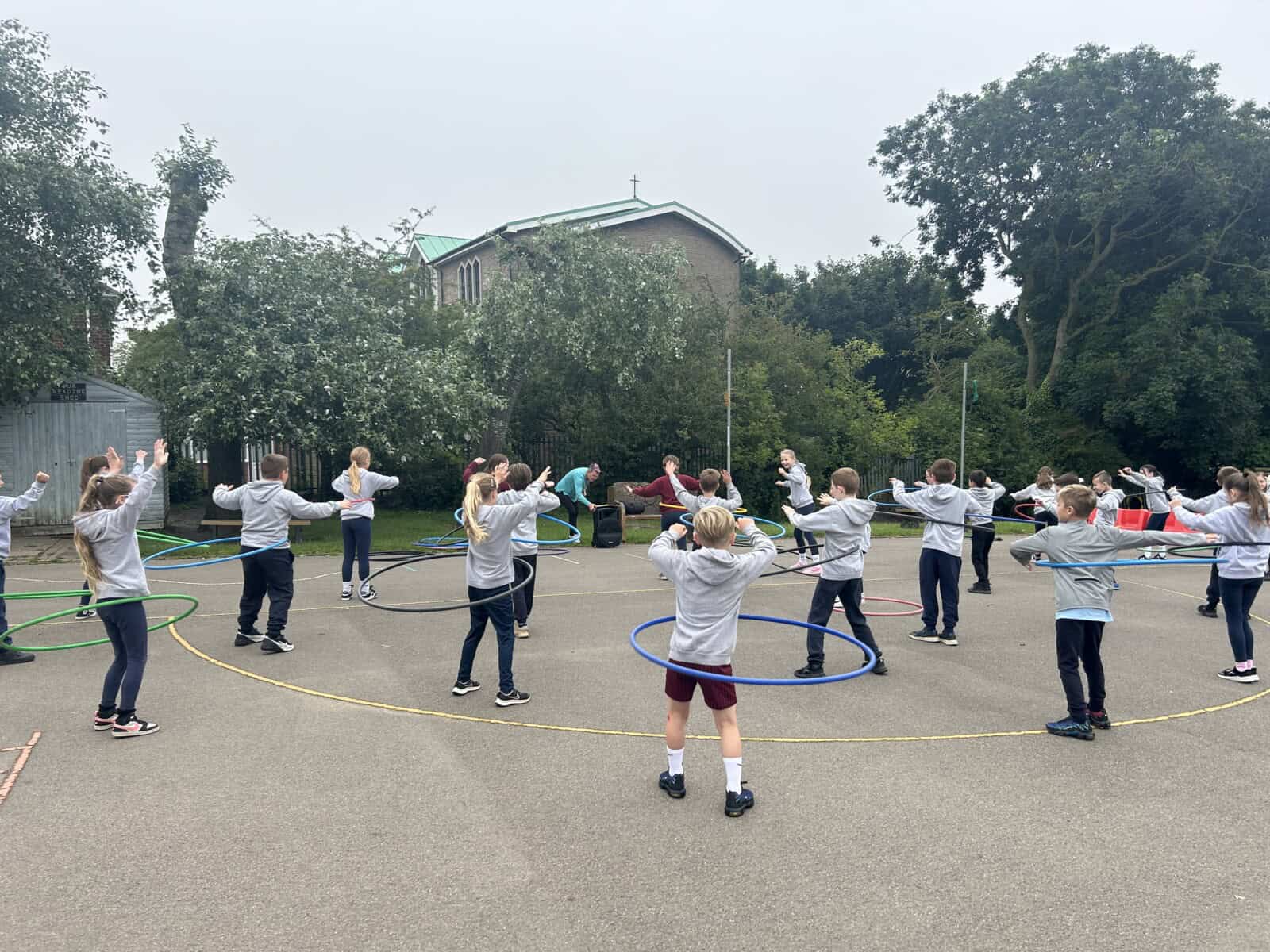 Hoopstarz Fun We had a great start to our day in Y3 with Traci from Hoopstarz! We've got some great new skill to practise using our OPAL equipment at breaktimes.