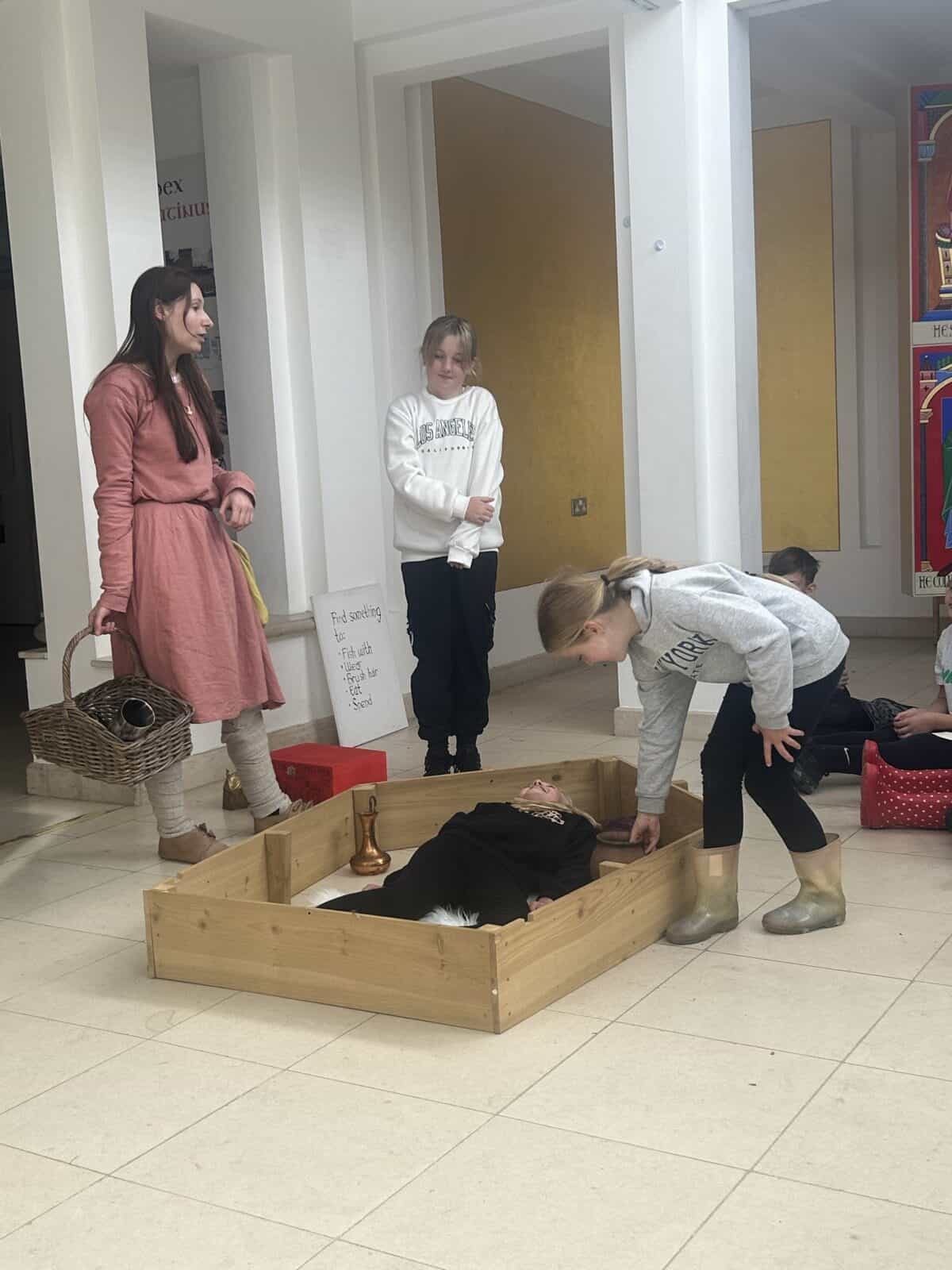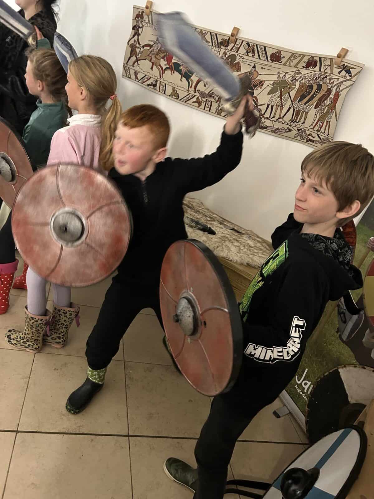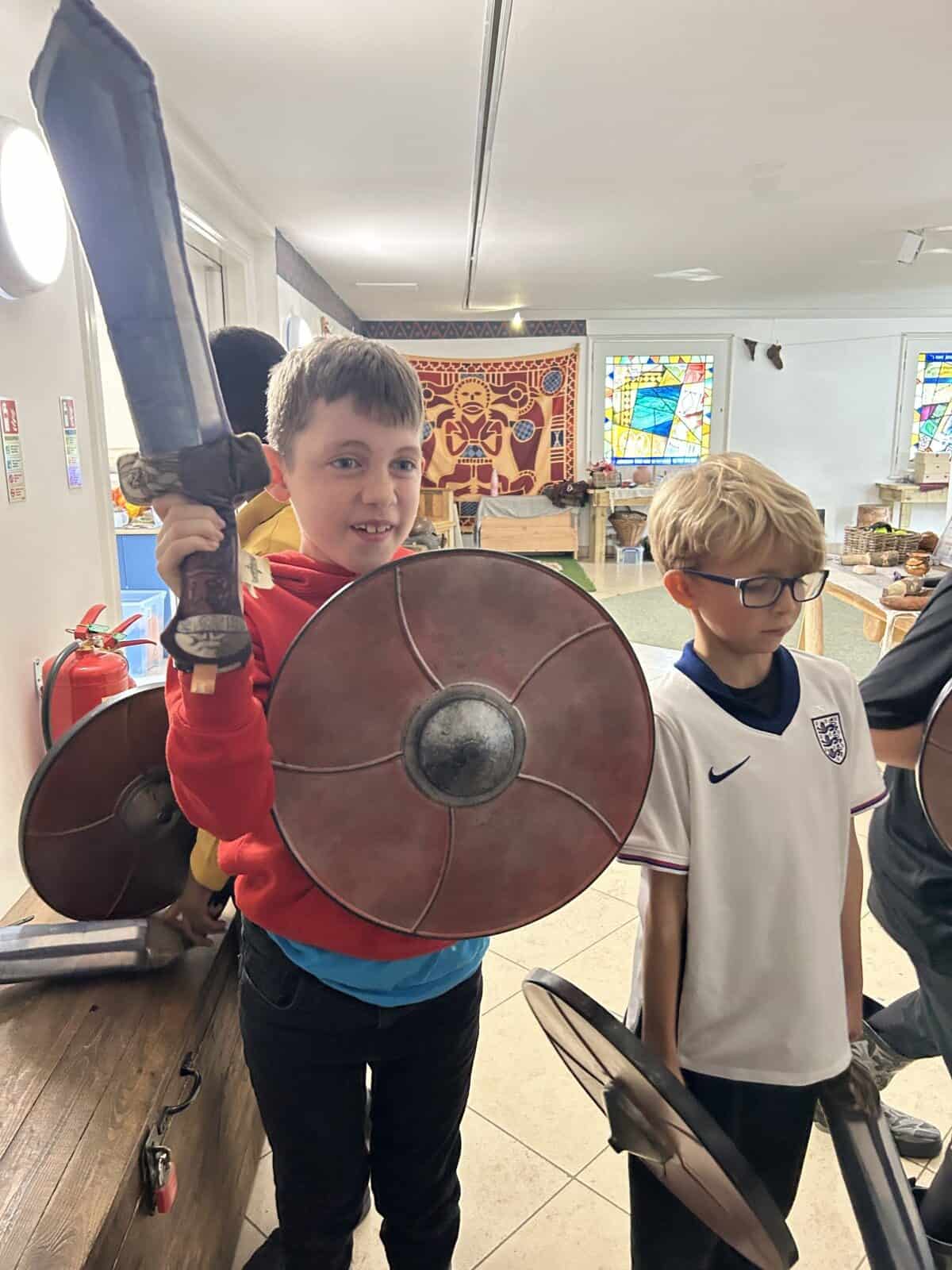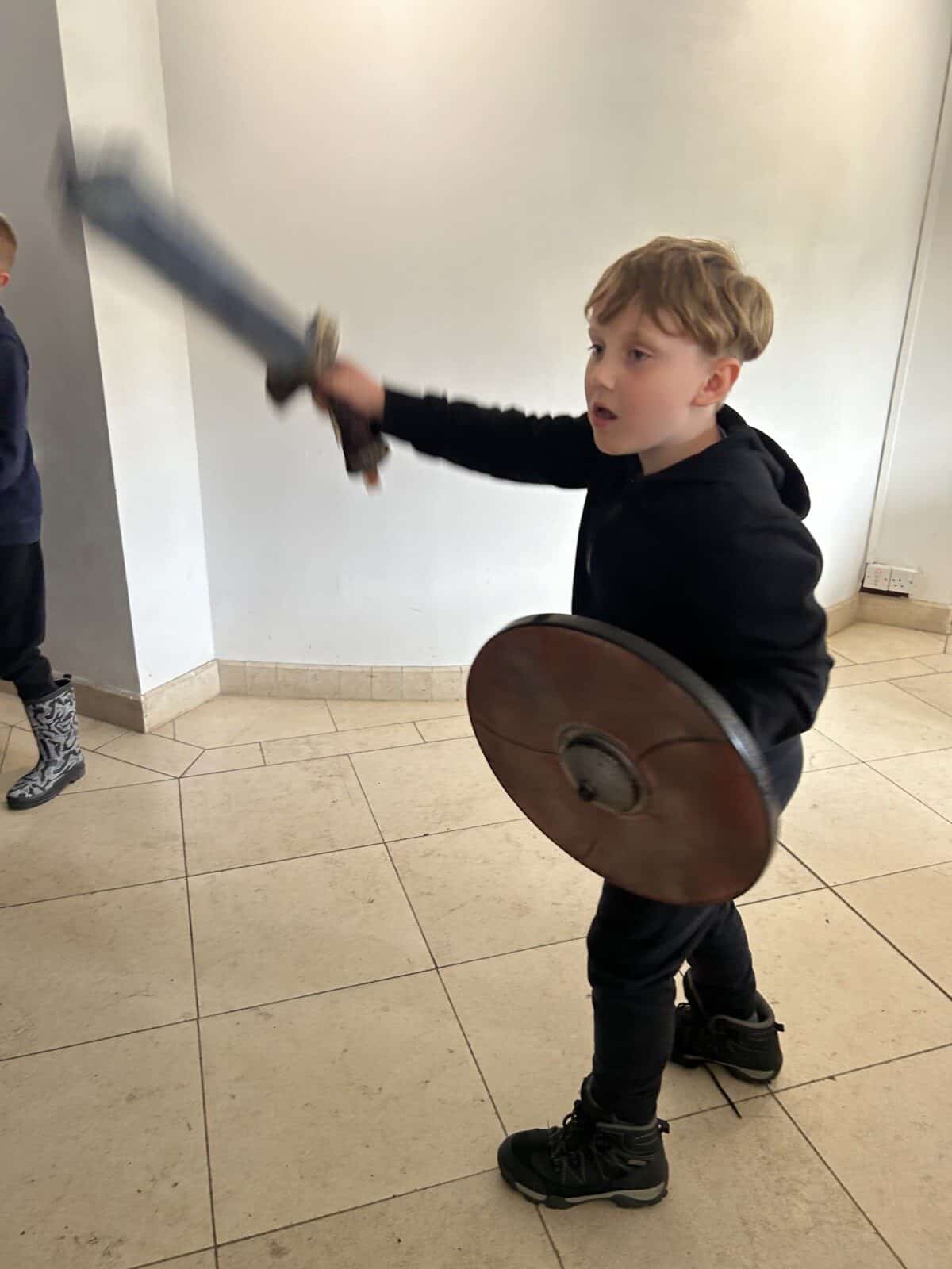 We finished our afternoon off with two workshops. The first was burial and the second battles. Both required the children to be heavily involved by acting, chanting and dressing up.