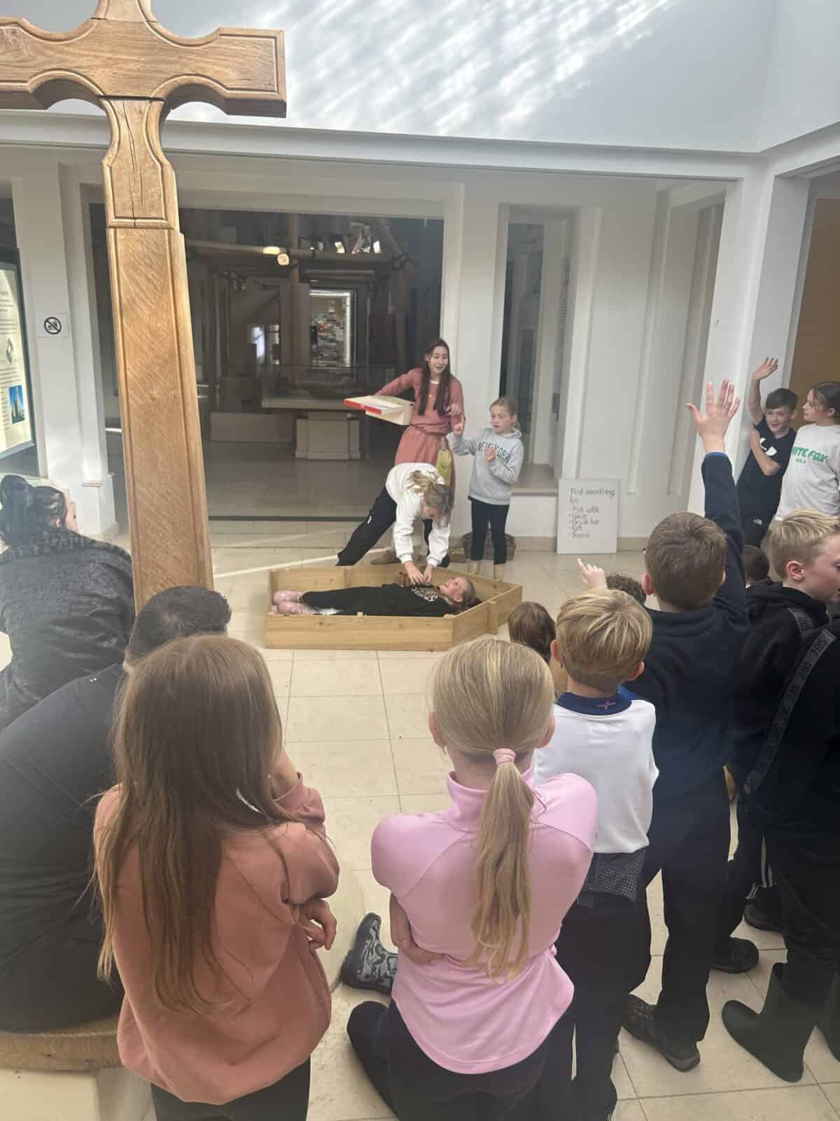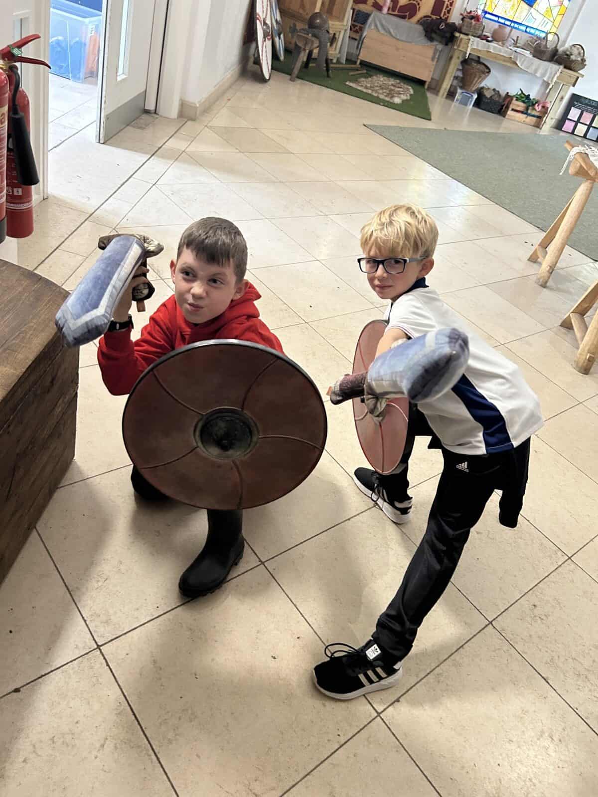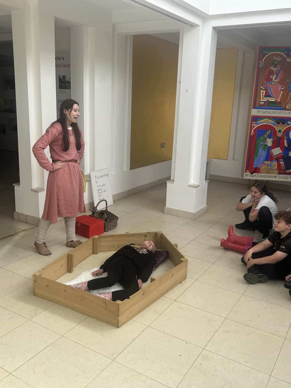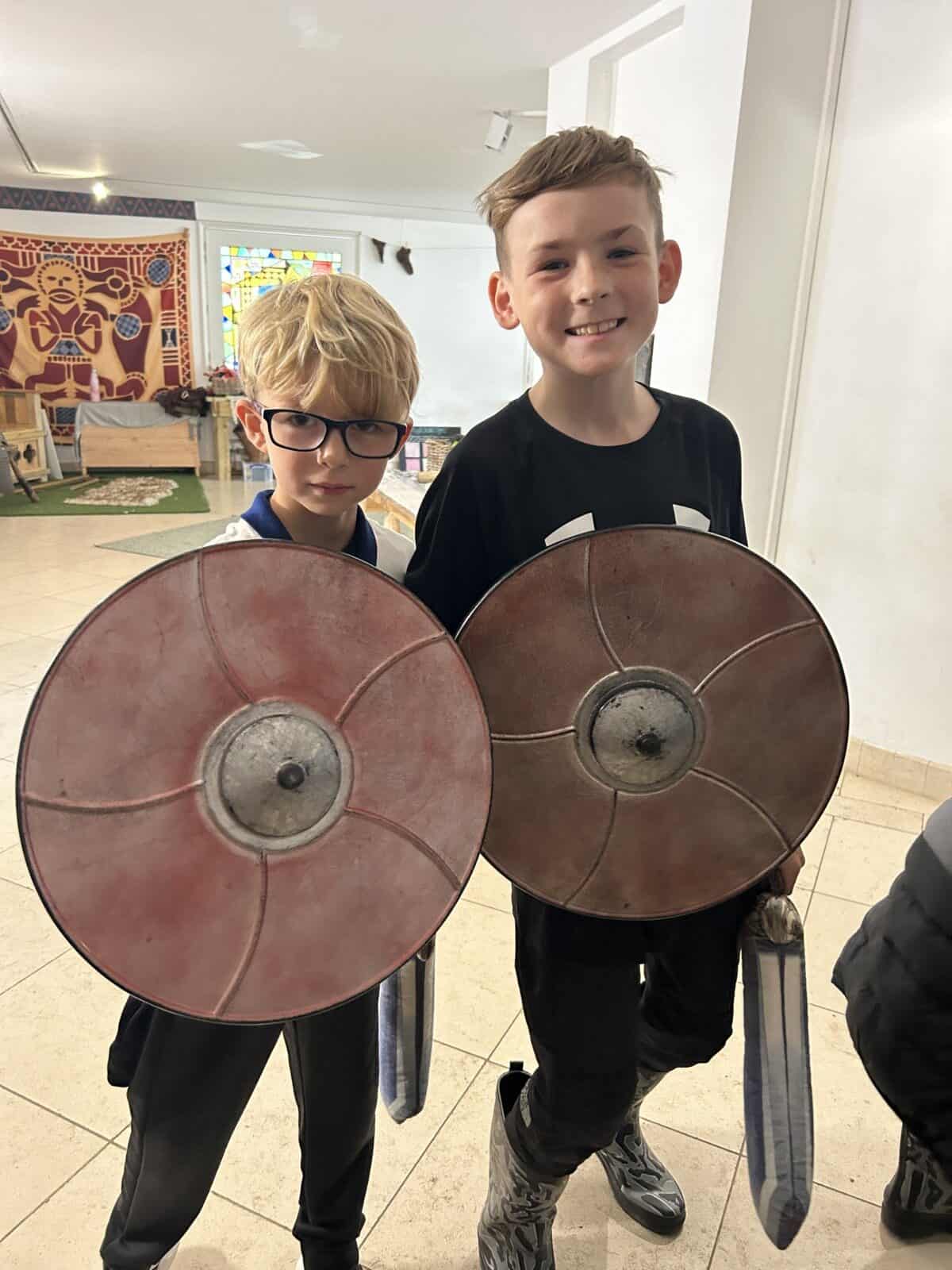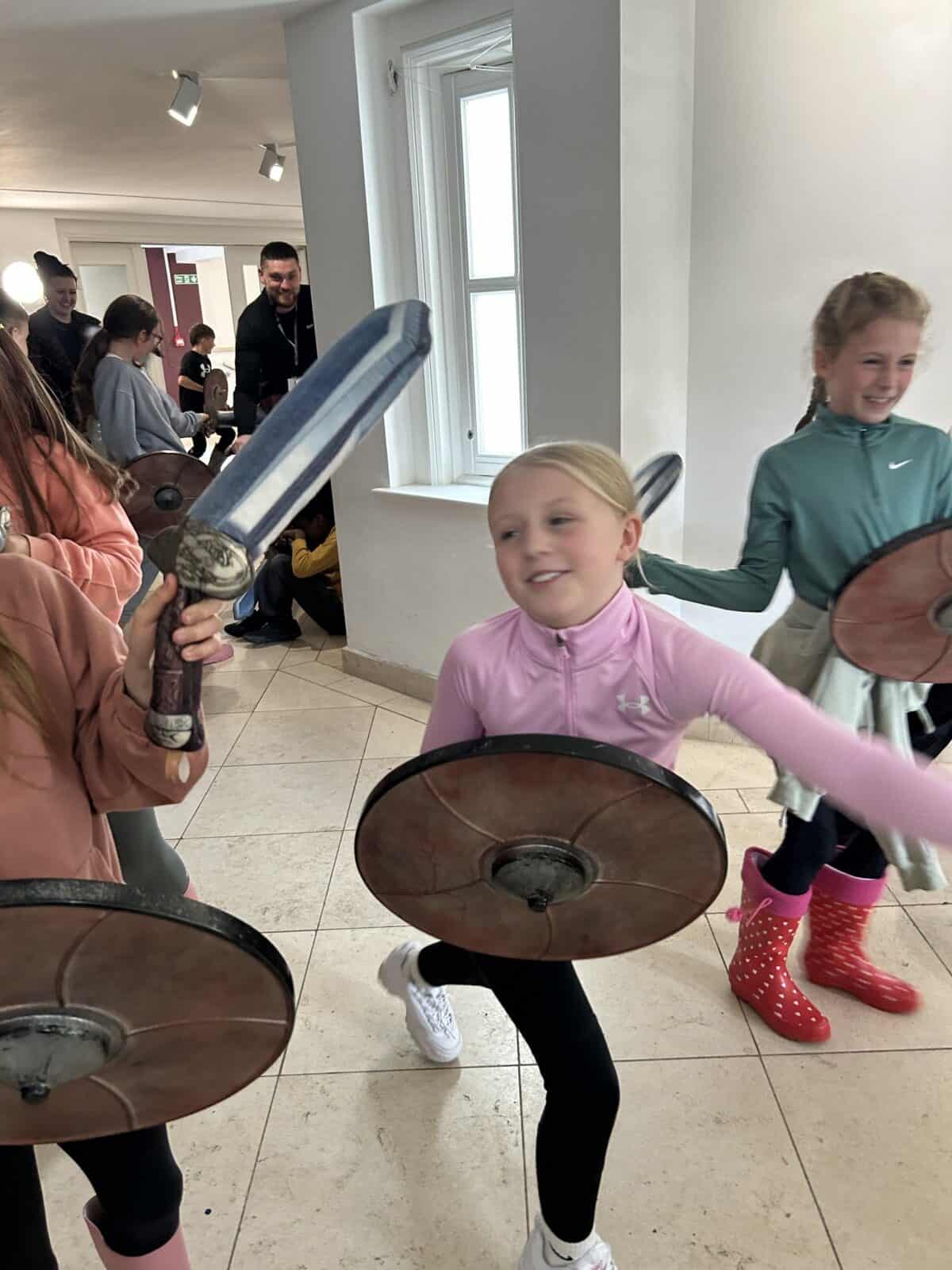 We finished our afternoon off with two workshops. The first was burial and the second battles. Both required the children to be heavily involved by acting, chanting and dressing up.