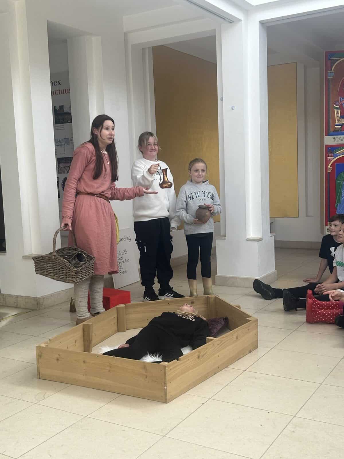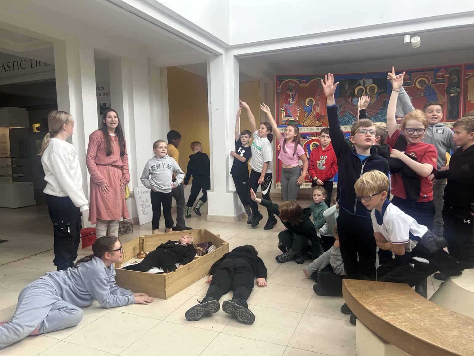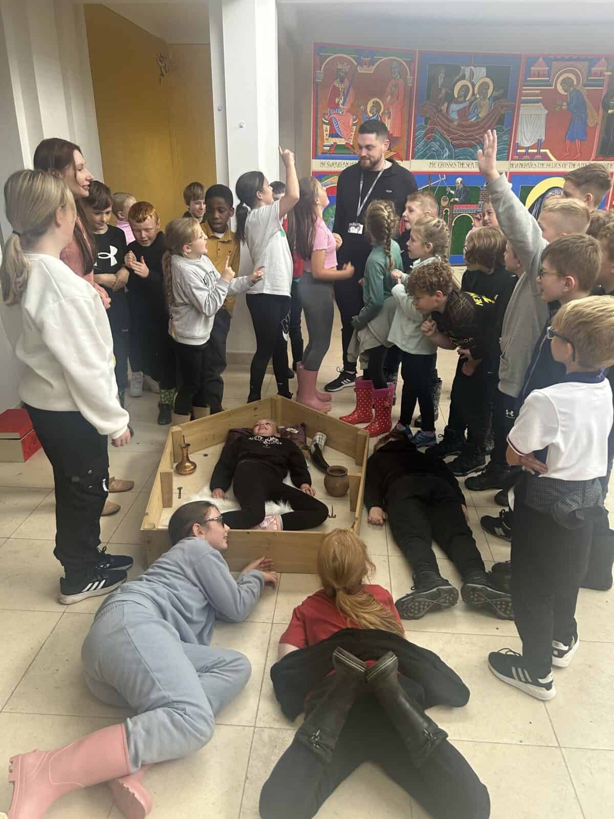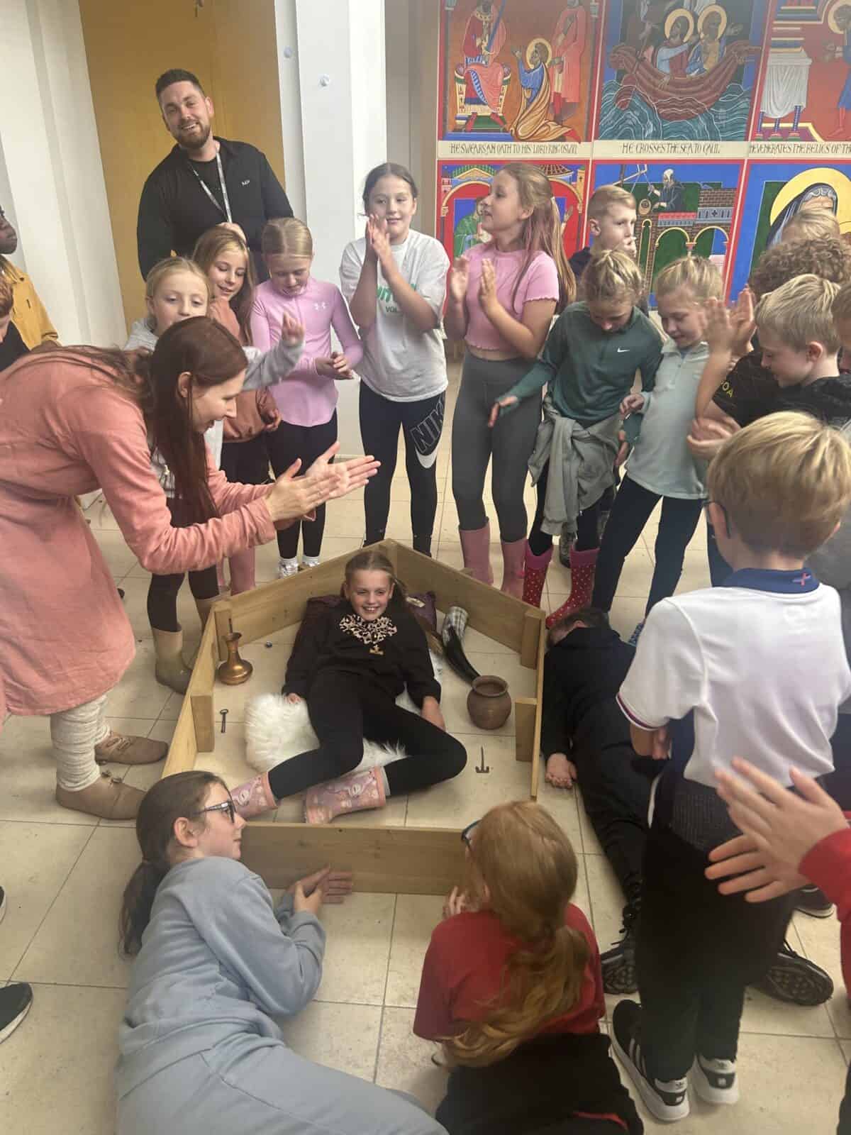 We finished our afternoon off with two workshops. The first was burial and the second battles. Both required the children to be heavily involved by acting, chanting and dressing up.