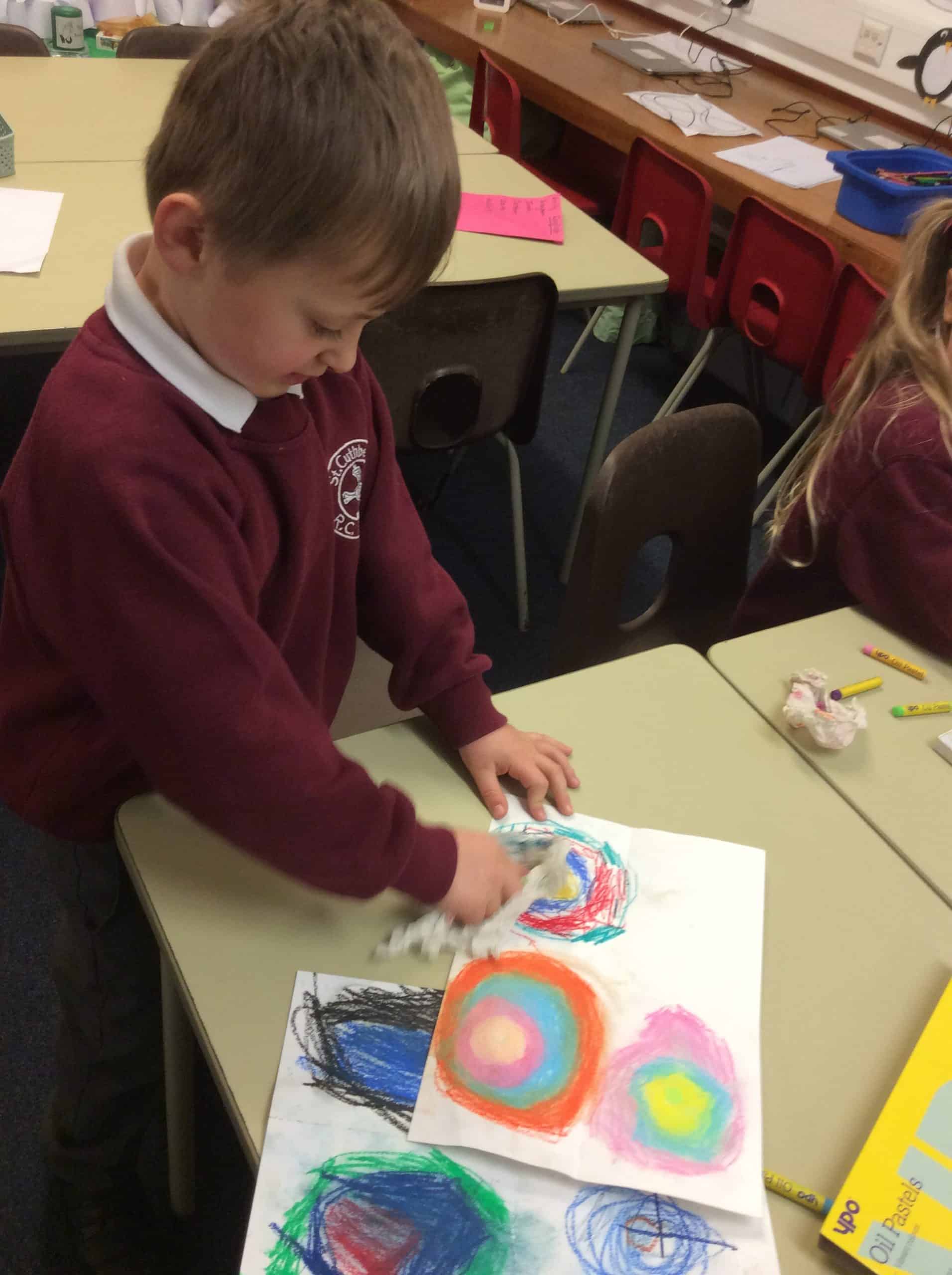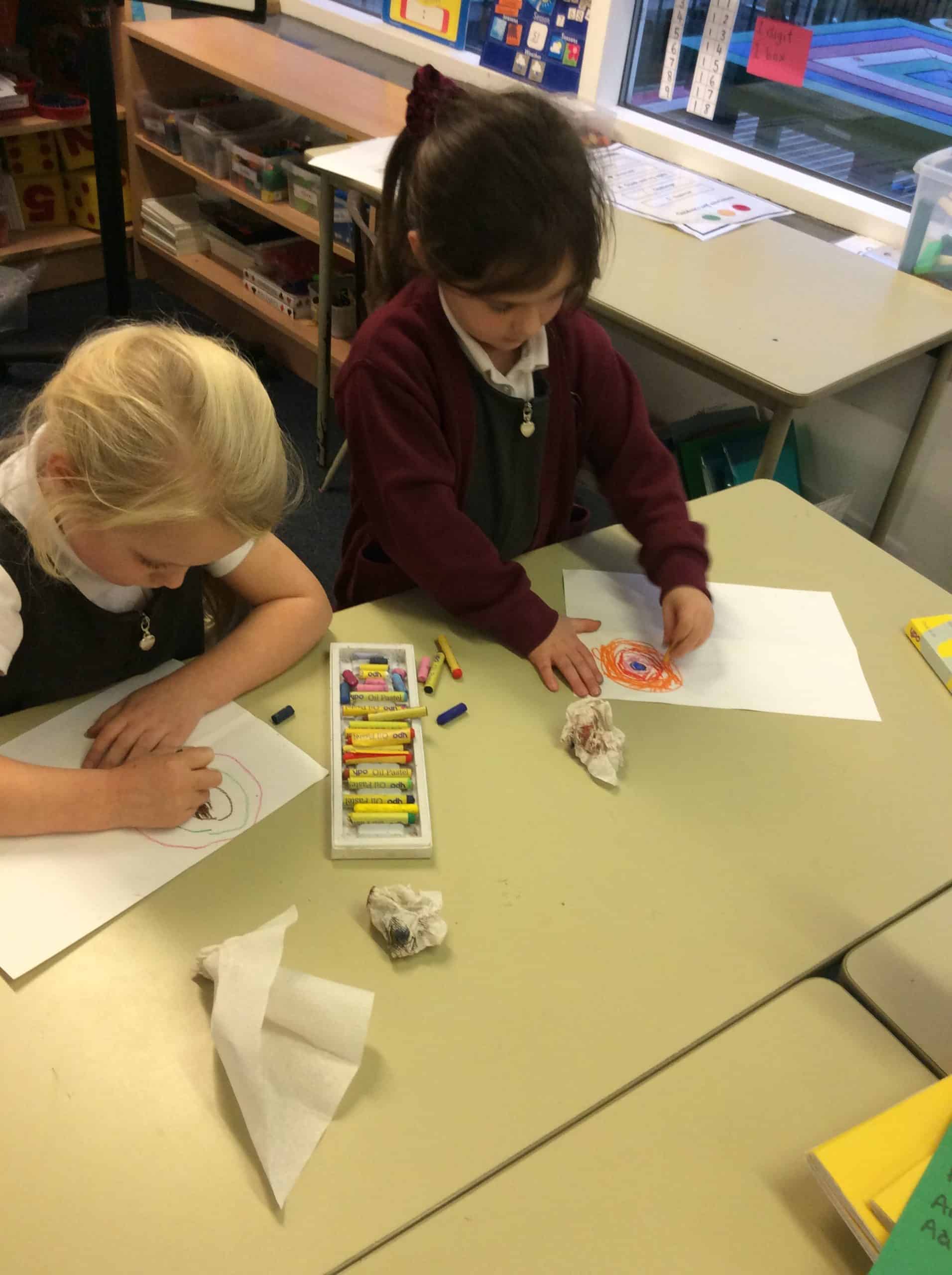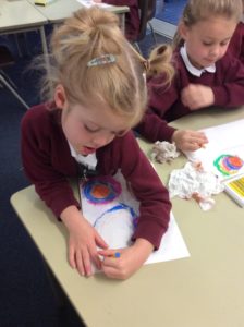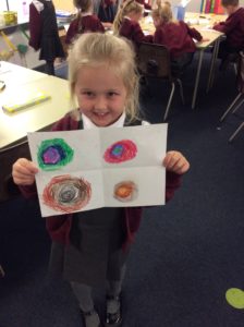 The children looked at the artist Kandinsky and they made their own Kandinsky circles.