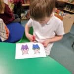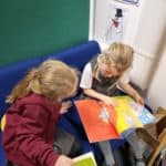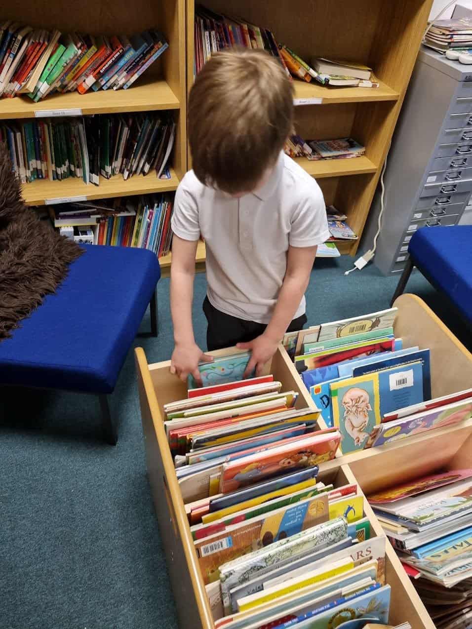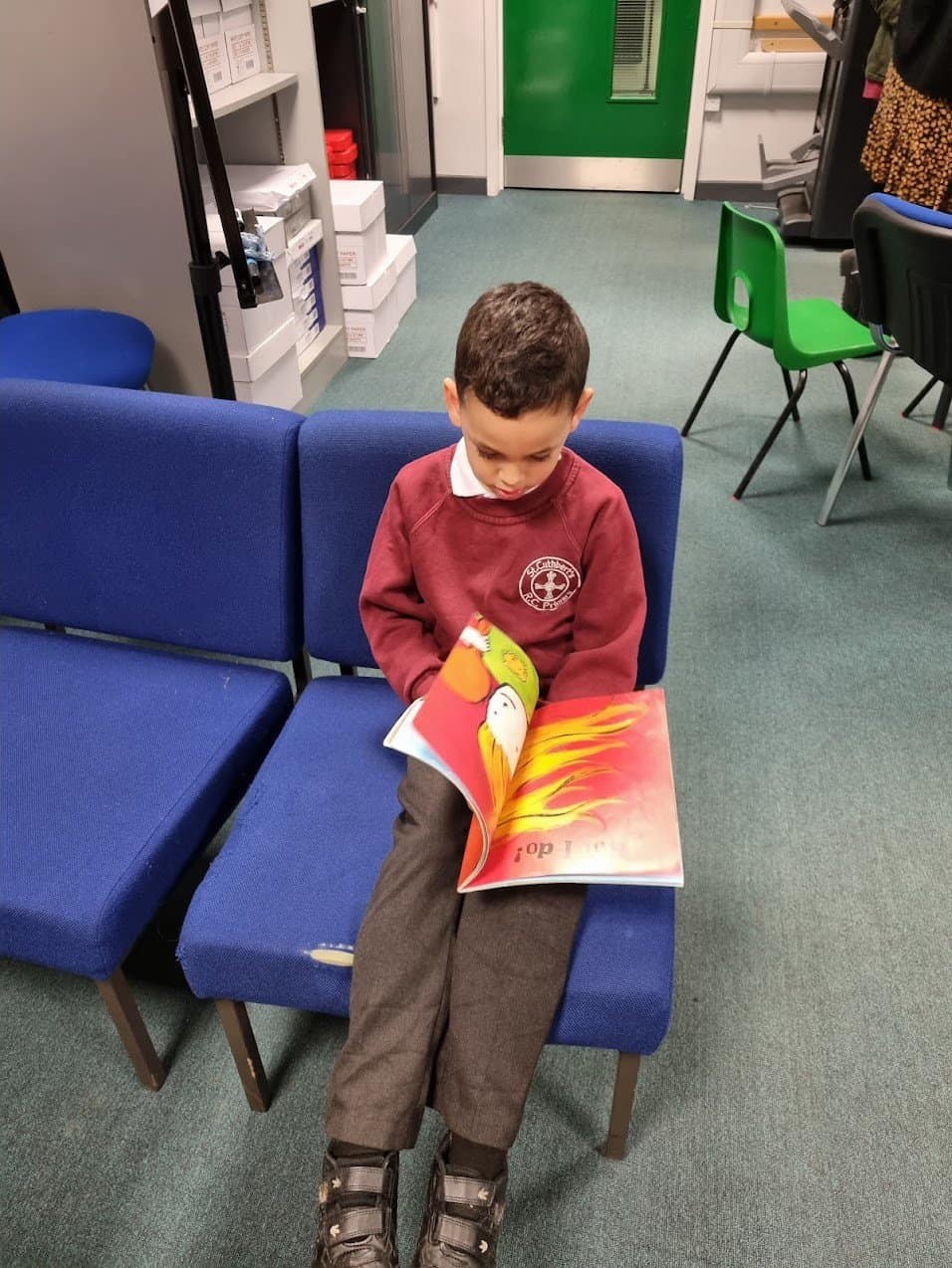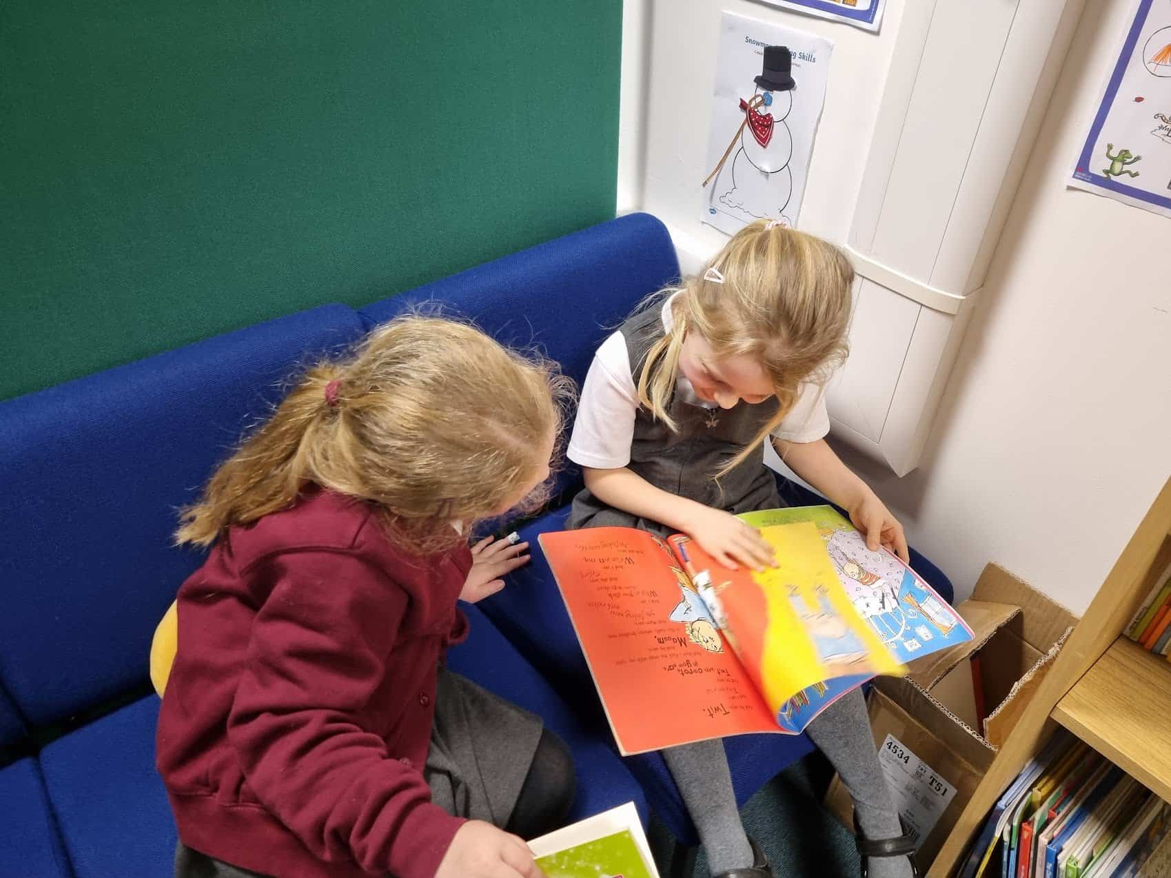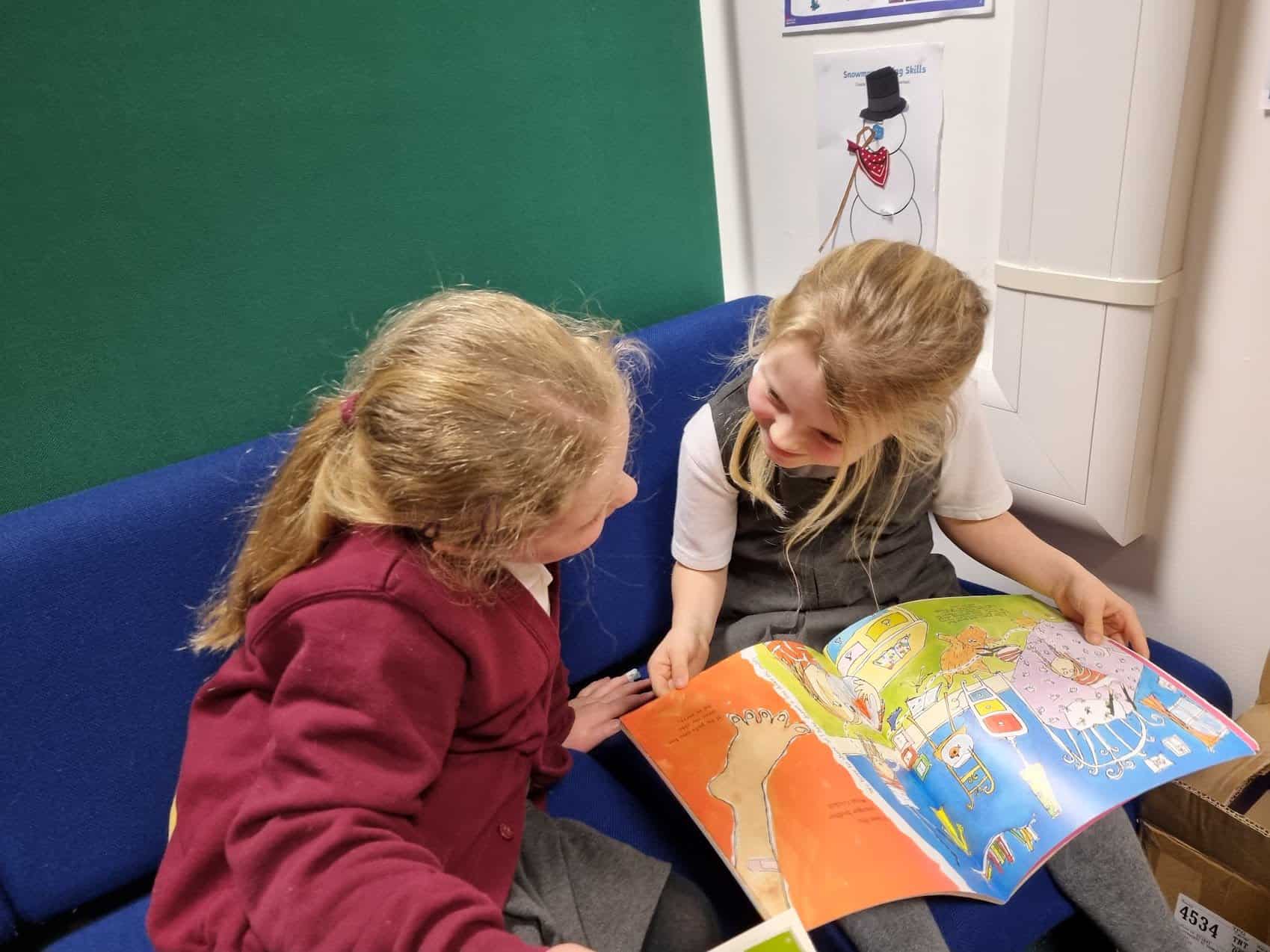 We had a lovely time in this week’s little library club. Mrs Wilkinson read us the story of ‘The True Story of the Three Little Pigs.’ We really enjoyed it and we couldn’t believe that the wolf wasn’t in fact big and bad but simply had a sneezy cold! Mrs Donnelly then  helped us with our stick puppets and we told each other the true story.  W also enjoyed sharing some books from the library.