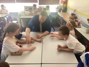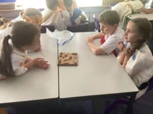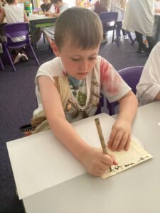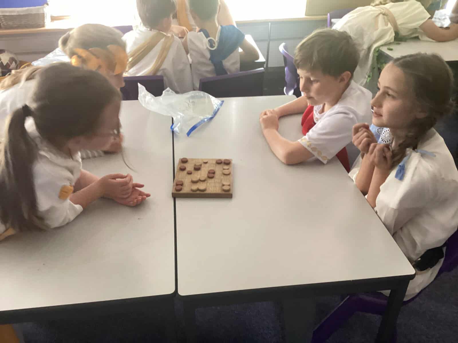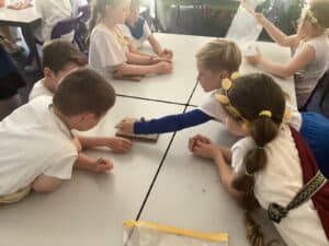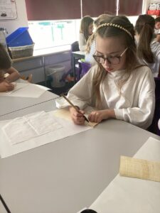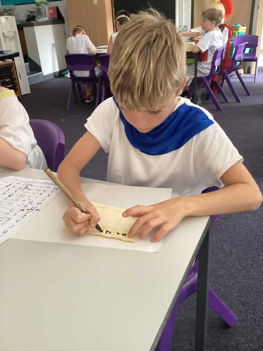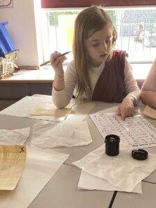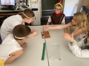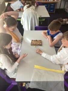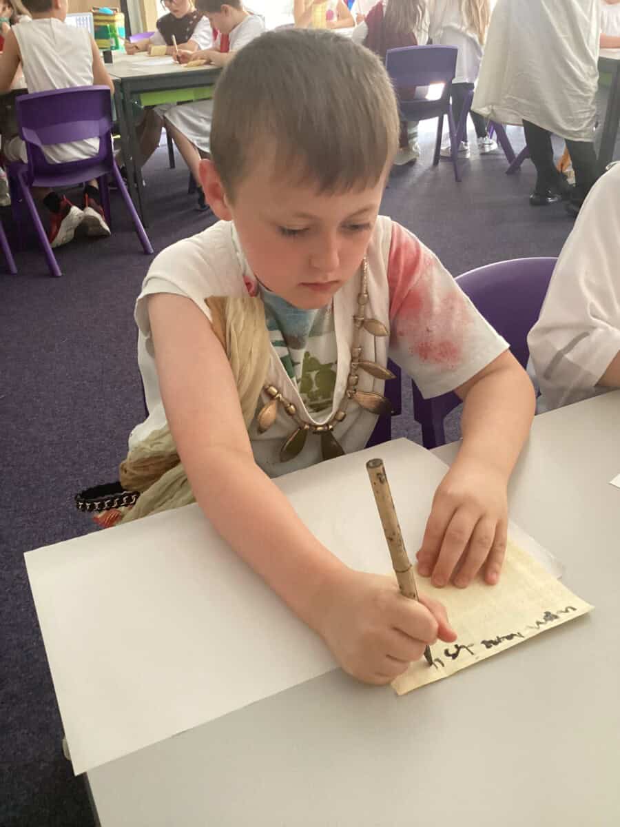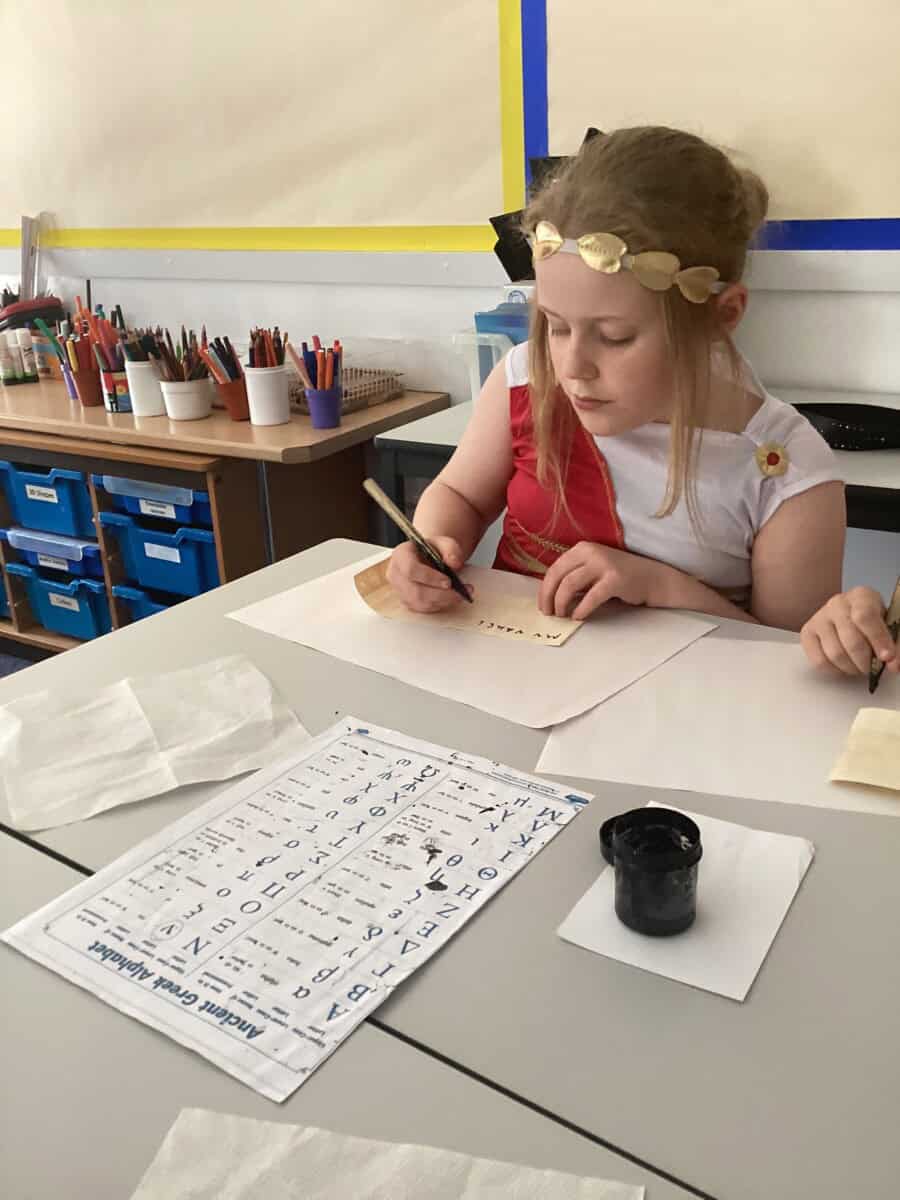 We enjoyed playing Greek Board Games which were the same as what the Greeks would have had around 2000 years ago! We also found out what it was like to be a Greek Scribe  we were set the challenge to write in Ancient Greek on real papyrus paper, using reed pens and ink, just like the Ancient Greeks did all those years ago! We took part in a game where we took on the role of members of the city council in Athens. Using real-life scenarios of what actually happened during the Peloponnesian War, we had to make decisions on what they should do to respond to certain situations. Unfortunately some of our decisions were not good ones!!