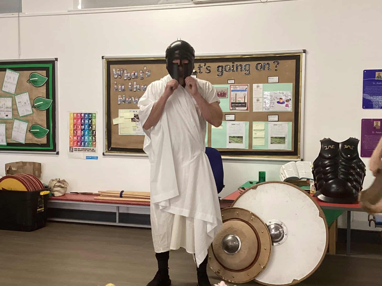 Today a special visitor from Ancient Greece arrived. Adam the Ancient Greek set us lots of different activities. We found out about the life of a hoplite soldier and about the relationship between the Athenians and the Spartans.