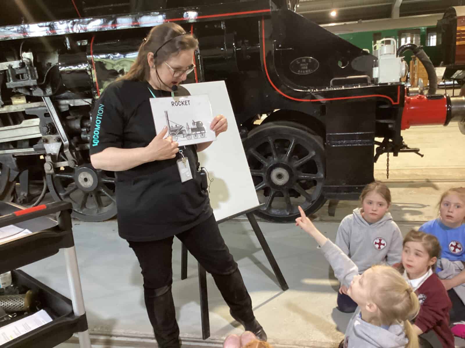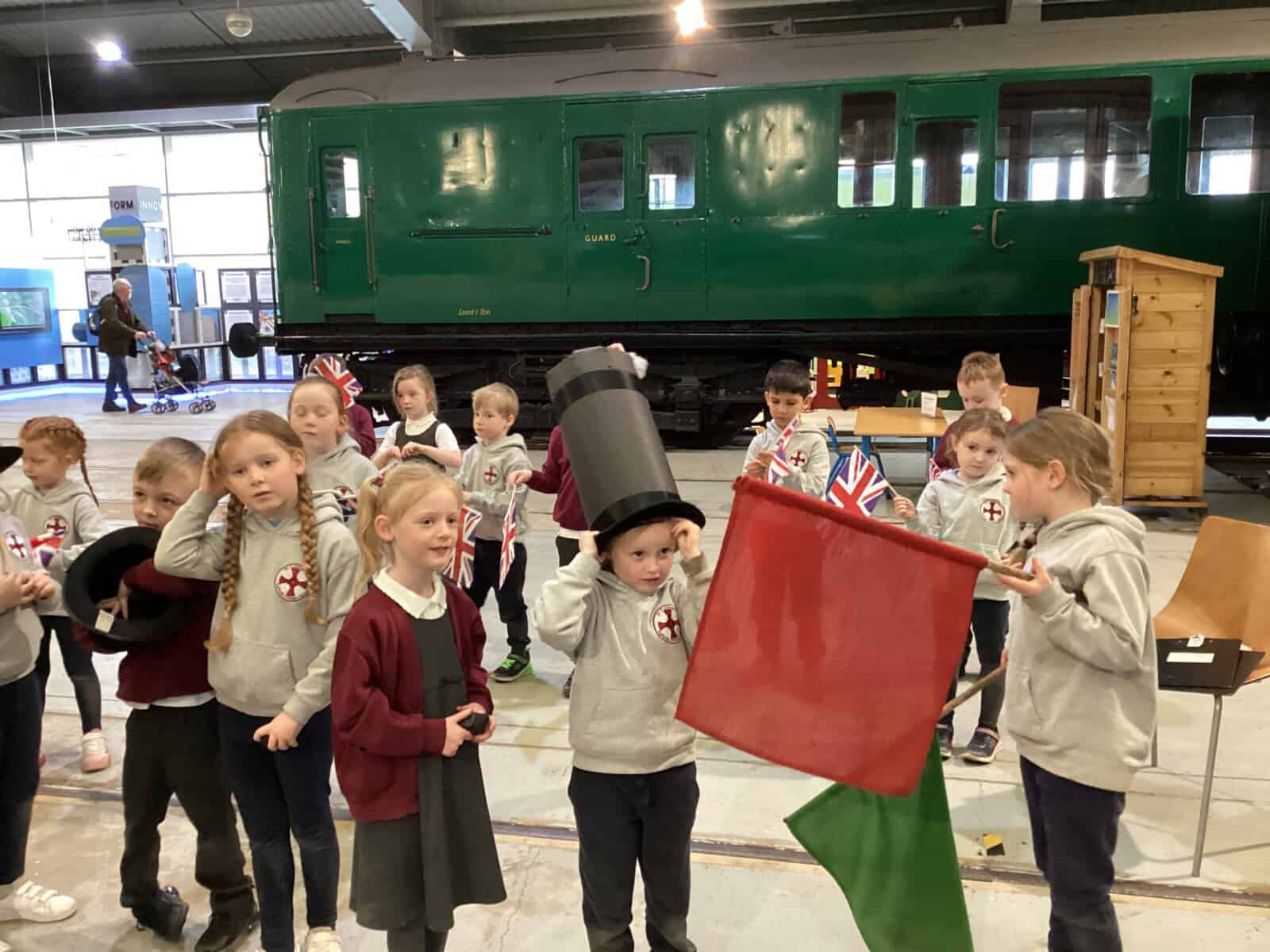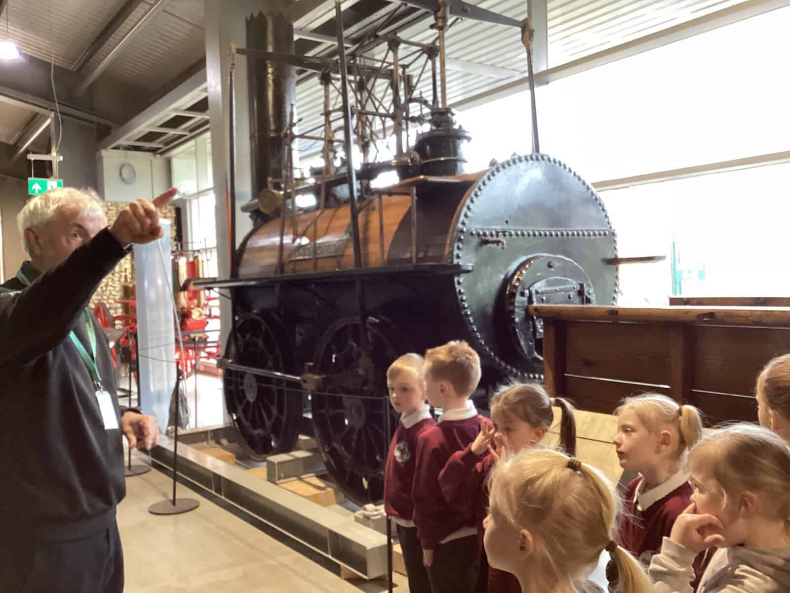 We had such a fabulous day at the Locomotion museum. We learnt all about George Stephenson’s life and his inventions. We saw his Locomotion and acted out the first steam train journey from Shildon to Stockton. We also looked inside a train engine.