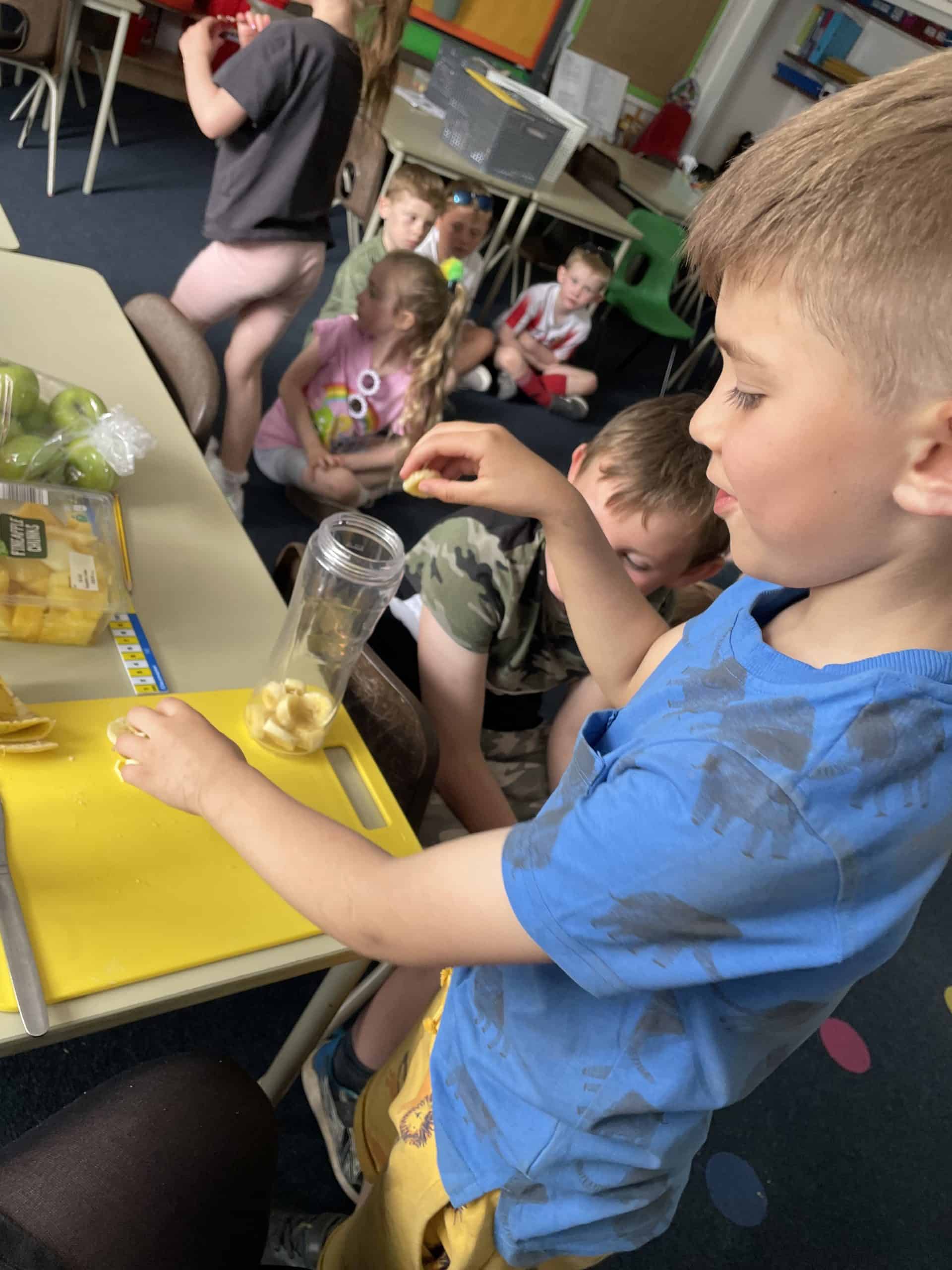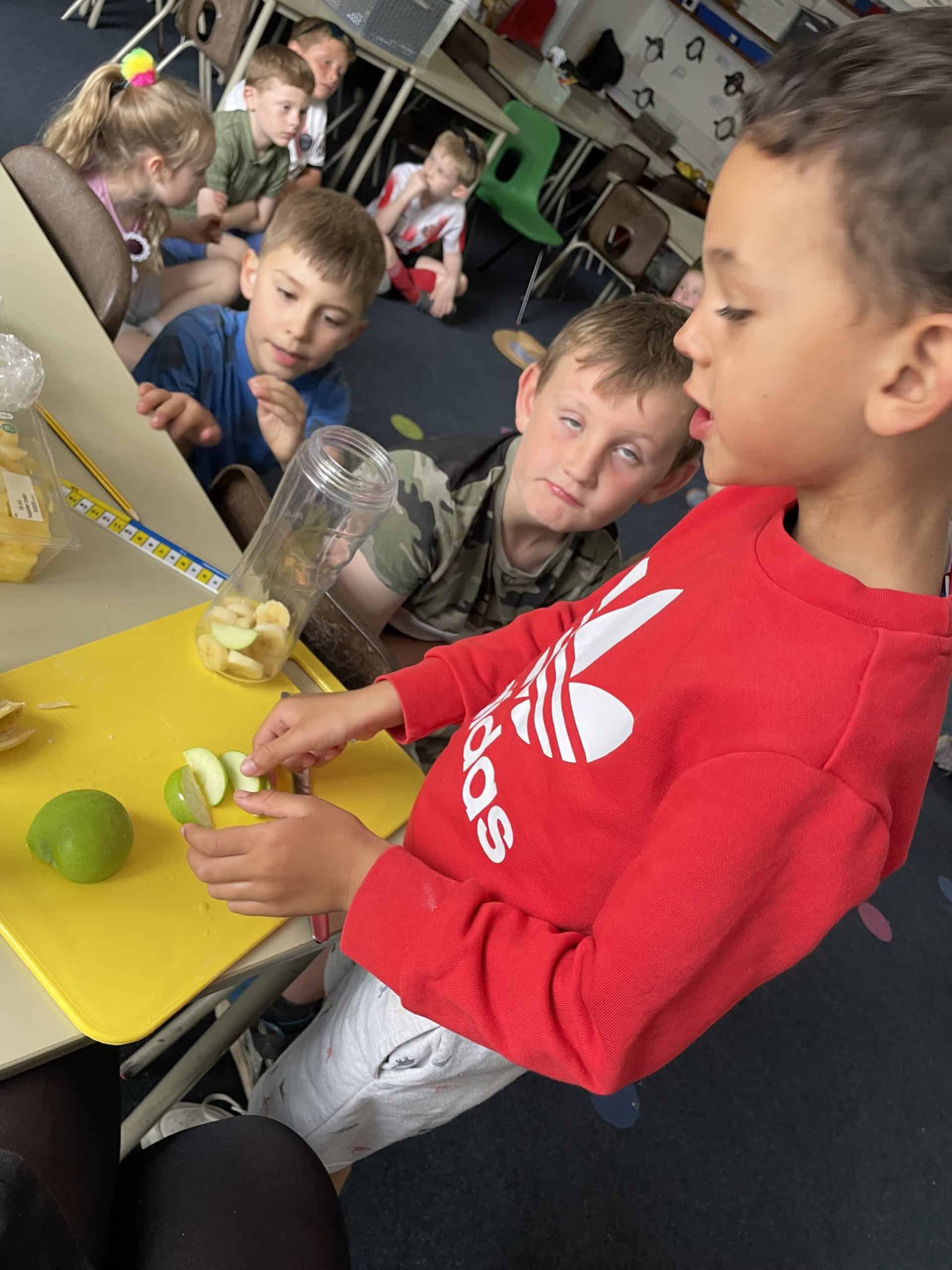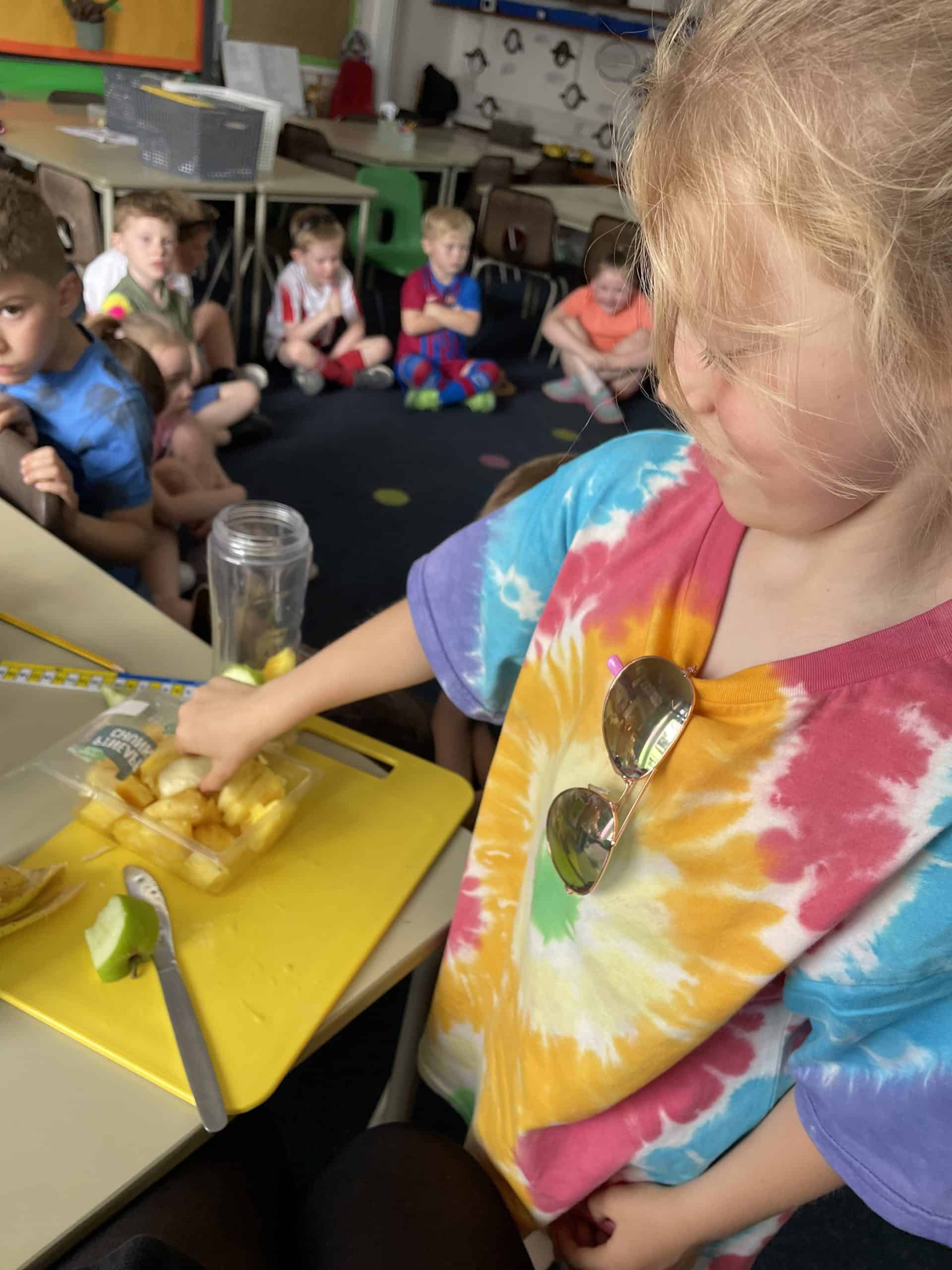 Year 1 sent a letter to Handa, asking her for some fruit. She sent us bananas, oranges and apples and we made a smoothie with these. We loved tasting the smoothie and eating some of the left over fruit.