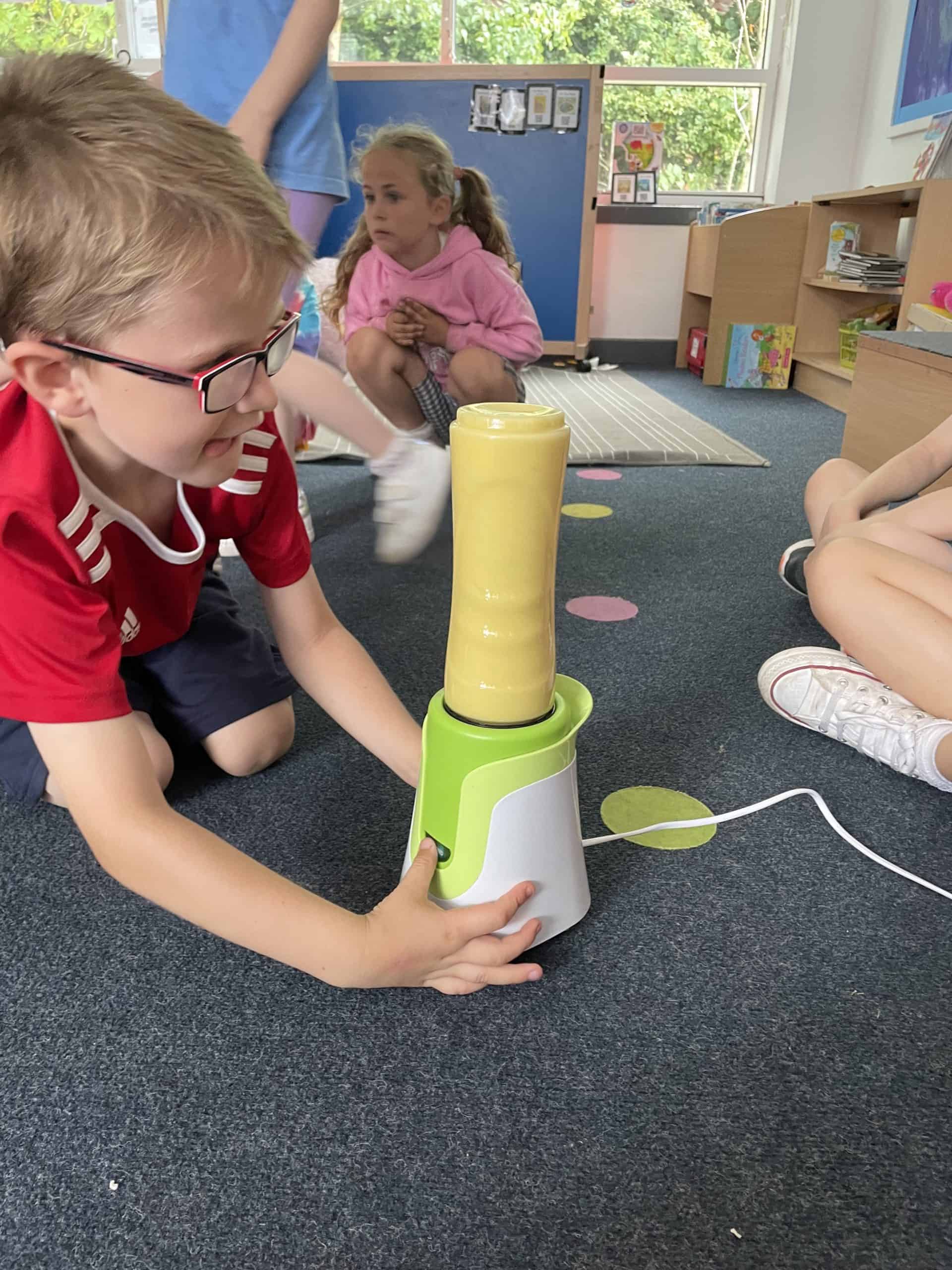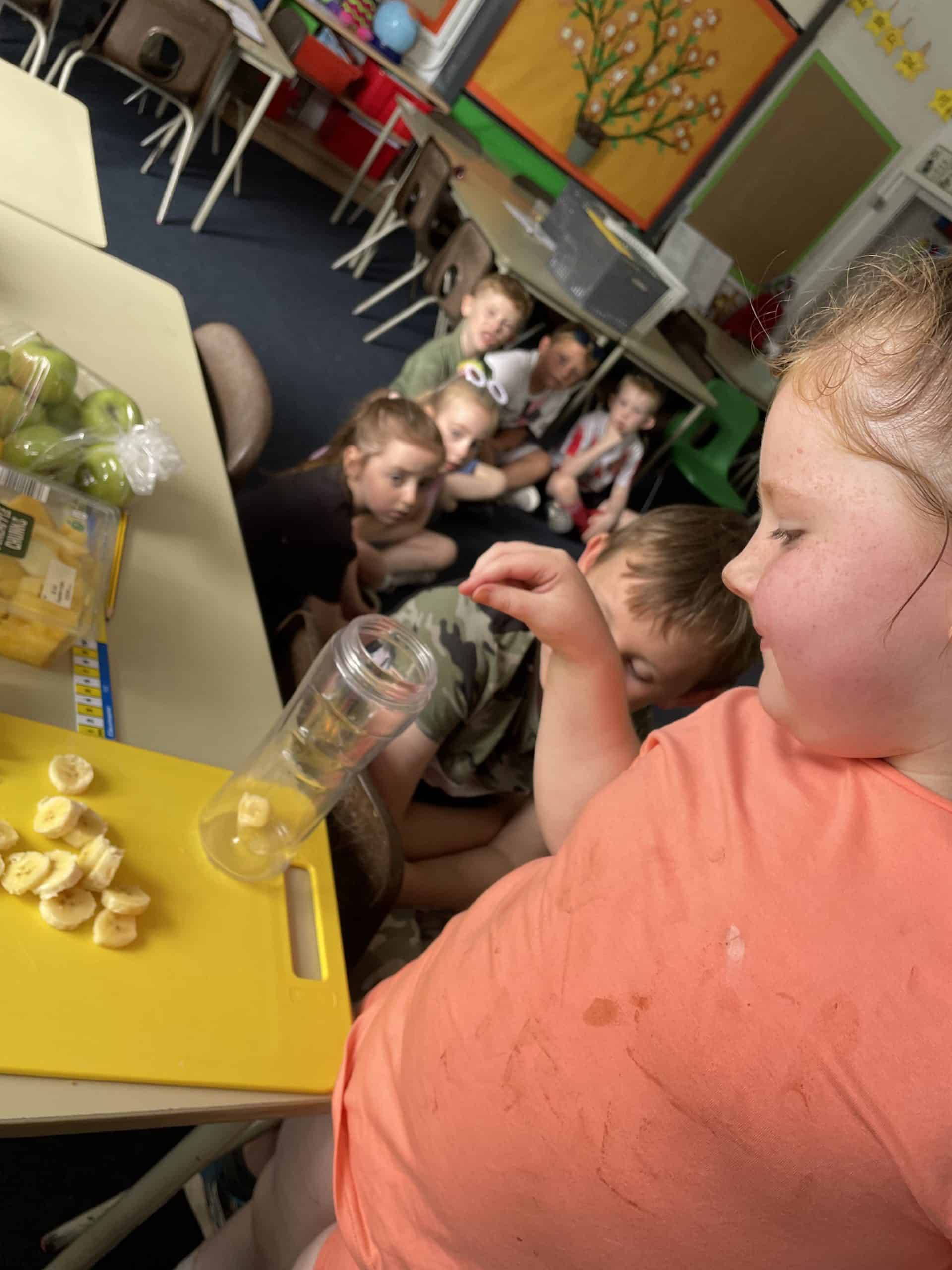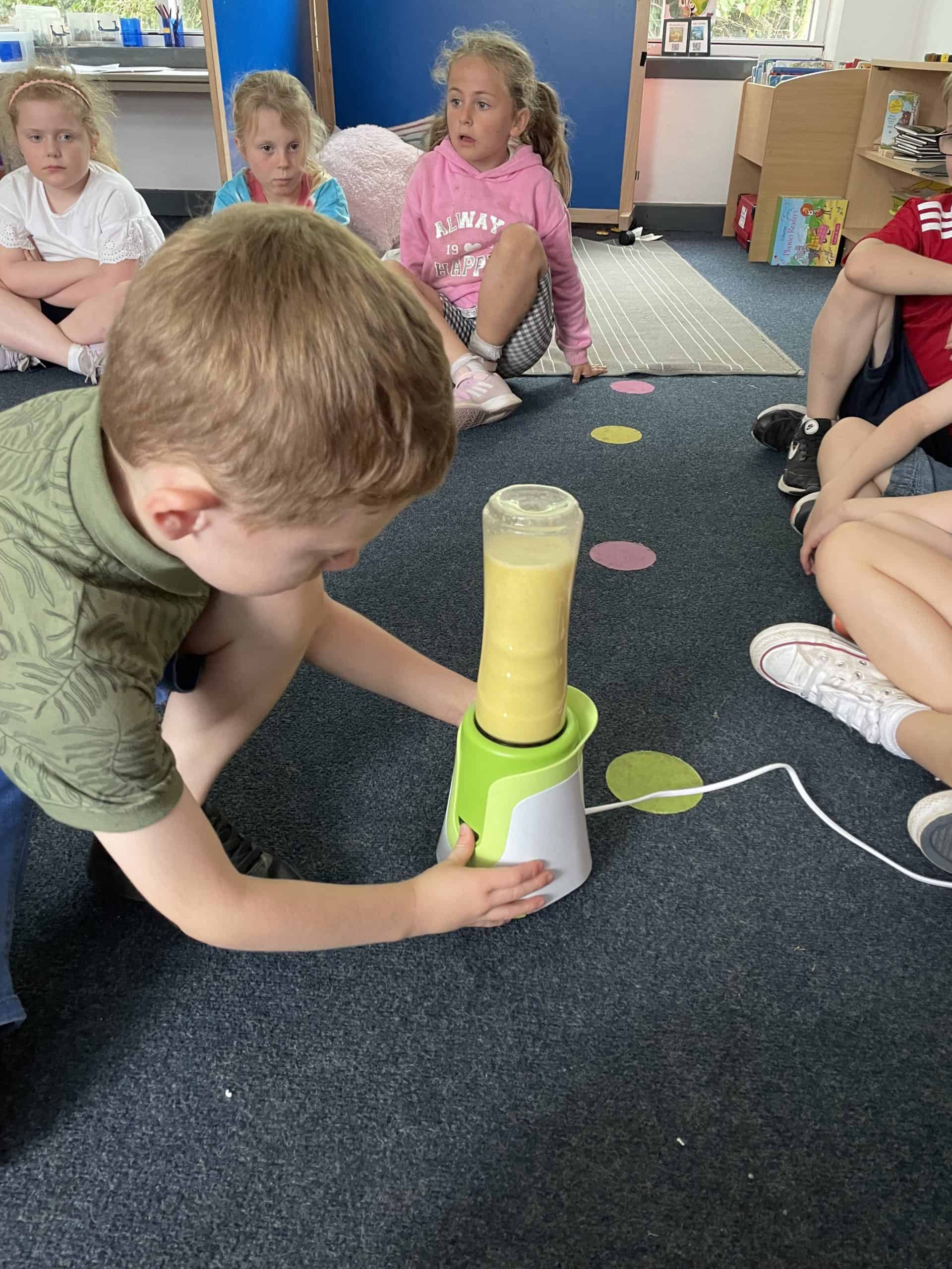 Year 1 sent a letter to Handa, asking her for some fruit. She sent us bananas, oranges and apples and we made a smoothie with these. We loved tasting the smoothie and eating some of the left over fruit.