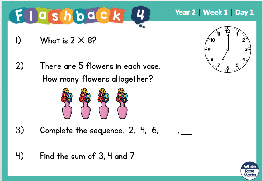 Each day I will be sending you a ‘Flashback’ Here there a  selection of questions relating to things already covered in class. Don’t forget to read the time on the clock in the corner!